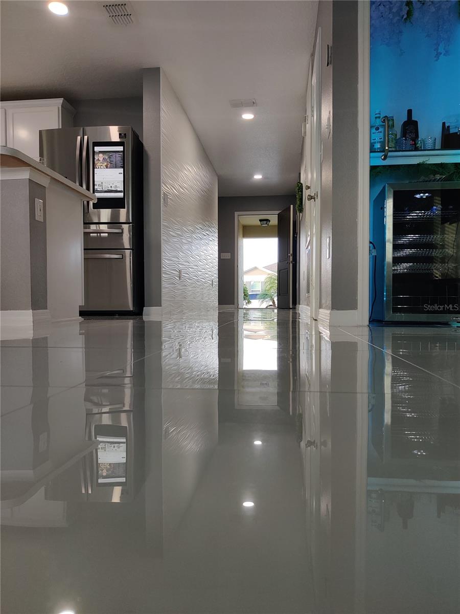 Seller will contribute $5000 towards buyers closing cost. Eagle Hammock Community – Osceola County Beautiful 4-bedroom, 2-bathroom home built in 2020, located in the desirable Eagle Hammock community. This home features an open floor plan with 24x24 tile flooring throughout, except for the movie theater room, which is carpeted and soundproofed for the ultimate viewing experience. The large kitchen offers ample space and flows seamlessly into the dining area and open living room, perfect for entertaining. One wall in the living room showcases a waved tile accent, adding a touch of modern elegance. A 5x8 mirror in the living area enhances the space by reflecting light and design elements. Additionally, there is a glass door that leads to modern bar area featuring a beverage cooler, perfect for entertaining friends and family. One of the bathrooms features a unique 3D wood accent wall, creating a standout design detail. Eco-friendly upgrades include a whole-house water filtration system and an energy-efficient hybrid hot water heater. The home is also equipped with a sprinkler system, ensuring a well-maintained exterior year-round. ****Home square footage, taxes, lot sizes, and schools; are to be independently verified.***