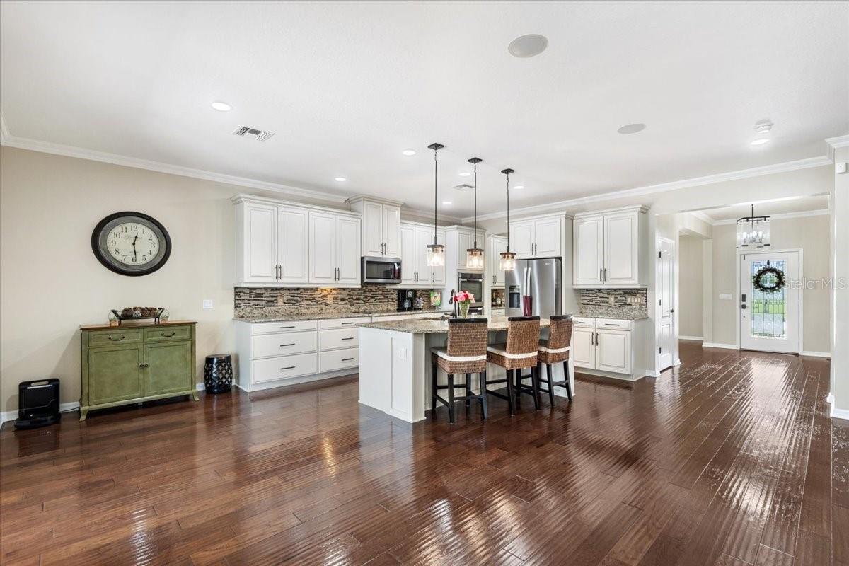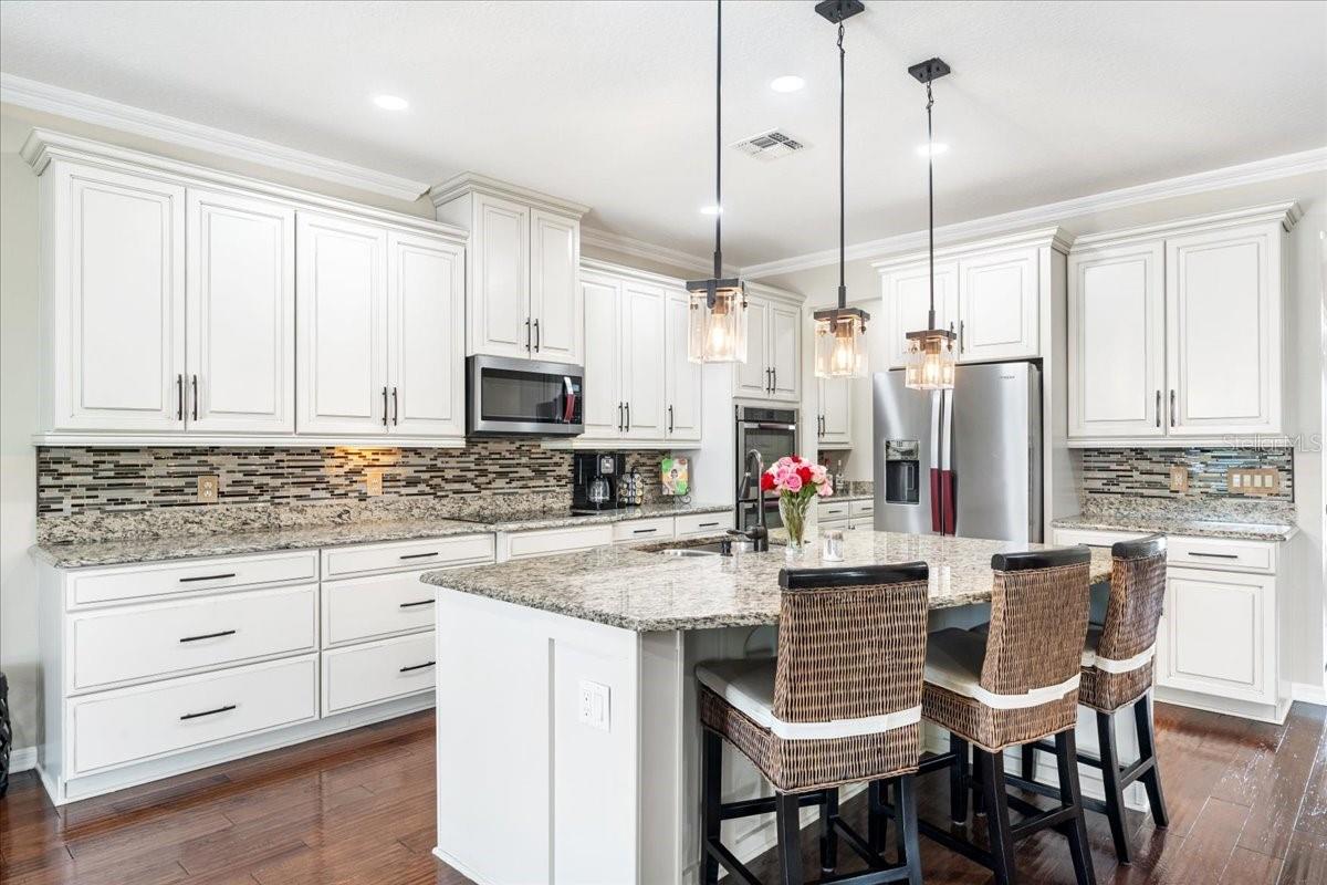 LAKEFRONT 5BD SEQUOIA WITH POOL & SUMMER KITCHEN – PRESERVE AT TAPESTRY!! Welcome to one of the most impressive homes in the highly desired PRESERVE AT TAPESTRY community in Kissimmee! This stunning 2015 BEAZER HOMES SEQUOIA MODEL offers 5 BEDROOMS, 4 FULL BATHS, NEARLY 3,500 SQ. FT. OF LIVING SPACE, and a 3-CAR GARAGE—fully customized and loaded with upgrades. Perfectly positioned on a PREMIUM LAKEFRONT LOT WITH NO REAR NEIGHBORS AND ONLY ONE SIDE NEIGHBOR, this property is a rare find where privacy, luxury, and lifestyle converge. Step inside to discover a home designed for both ELEGANT ENTERTAINING AND EVERYDAY COMFORT. The heart of the home is a CHEF’S KITCHEN featuring expansive prep areas, premium appliances, a BUTLER’S PANTRY, and a walk-in pantry—ideal for preparing meals for large gatherings or cozy dinners. The OPEN-CONCEPT LAYOUT seamlessly connects the kitchen, dining, and living areas, offering breathtaking views of the pool and serene lake. The first floor includes a GUEST/IN-LAW SUITE WITH A FULL BATH, providing convenience and privacy for visitors or multi-generational living. Upstairs, you’ll find a SECOND EN-SUITE BEDROOM, two additional bedrooms sharing a JACK & JILL BATH, and a luxurious PRIVATE OWNER’S RETREAT. The OWNER’S SUITE boasts DUAL WALK-IN CLOSETS and a SPA-INSPIRED BATHROOM with SPLIT VANITIES, A SOAKING TUB, AND A SEPARATE WALK-IN SHOWER. UPGRADES INCLUDE: WOOD FLOORING THROUGHOUT, CUSTOM BUILT-IN SHELVING IN EVERY CLOSET, UPGRADED BATHROOMS, NEW ROOF (2024), TWO NEW A/C UNITS (2022), SEALED PAVER DRIVEWAY, TANKLESS WATER HEATER, PLANTATION SHUTTERS ON EVERY WINDOW, WHOLE-HOME WATER SOFTENER, SOLAR PANELS WITH AVERAGE ELECTRIC BILLS AROUND $125/MONTH, EPOXY-COATED POOL DECK, 3-CAR GARAGE WITH CUSTOM CABINETS, A COOKING AREA, EPOXY FLOORING, AND ITS OWN A/C. The OUTDOOR LIVING SPACE IS A SHOWSTOPPER—a RESORT-STYLE POOL OVERLOOKING THE LAKE, plus a FULL SUMMER KITCHEN WITH GRILL, BURNER, SINK, COOLER, STORAGE, AND ENTERTAINMENT SYSTEM—perfect for unforgettable BBQs and pool parties. The backyard also features a storage shed and a PLANTING GARDEN FOR FRUITS, VEGETABLES, AND SPICES. PRESERVE AT TAPESTRY is a highly sought-after gated community with a VERY LOW HOA FEE that includes 1G INTERNET, A CLUBHOUSE, RESORT-STYLE POOL, PLAYGROUND, AND DIRECT ACCESS TO THE SHINGLE CREEK REGIONAL TRAIL. This scenic trail offers miles of biking, jogging, and nature exploration right at your doorstep. Shopping, dining, and entertainment are just minutes away at THE LOOP AND CROSSLANDS, while quick access to OSCEOLA PARKWAY, JOHN YOUNG PARKWAY, FLORIDA’S TURNPIKE, AND SR-417 ensures easy commutes to WALT DISNEY WORLD, UNIVERSAL, DOWNTOWN ORLANDO, AND ORLANDO INTERNATIONAL AIRPORT. With EVERY MAJOR UPGRADE COMPLETED AND UNMATCHED CURB APPEAL, THIS HOME IS TRULY MOVE-IN READY. Here, you don’t just buy a house—you embrace a LIFESTYLE OF LUXURY, CONVENIENCE, AND CENTRAL FLORIDA LIVING AT ITS BEST.