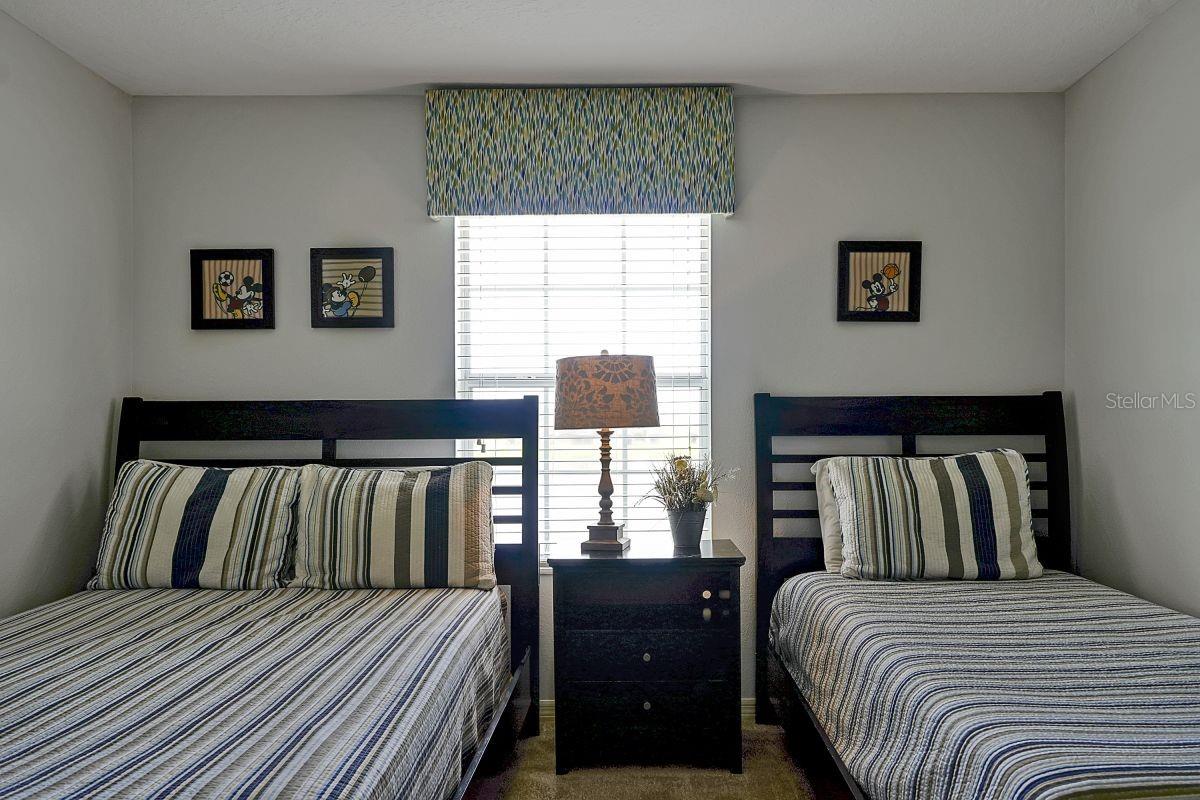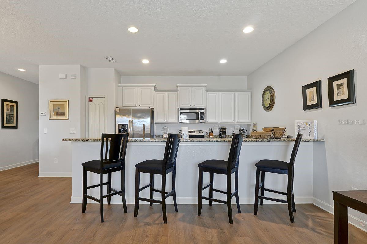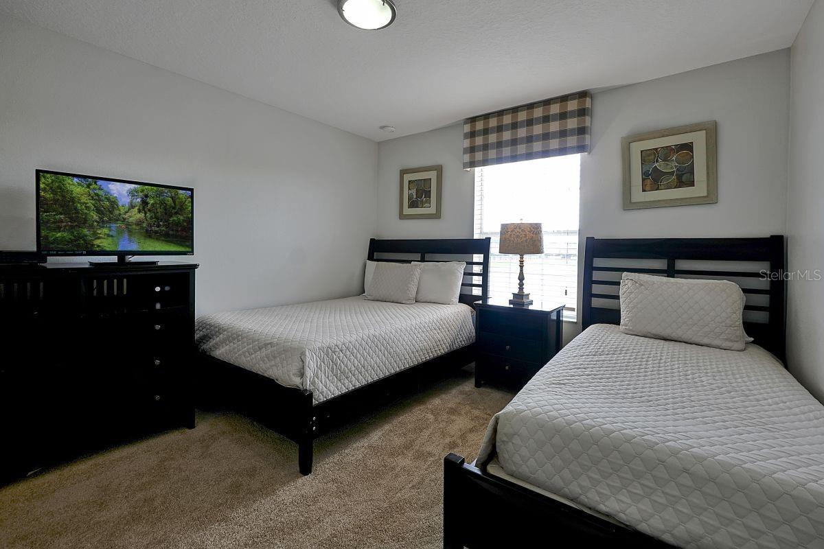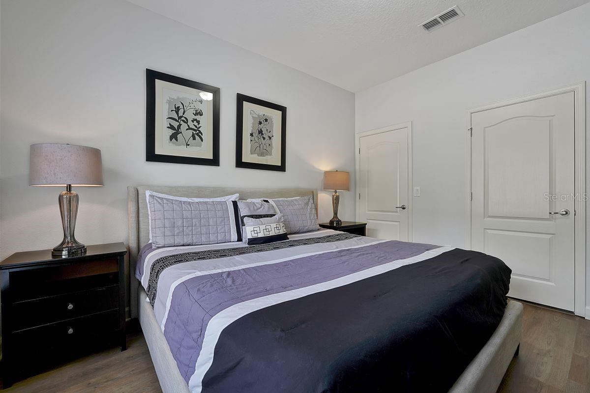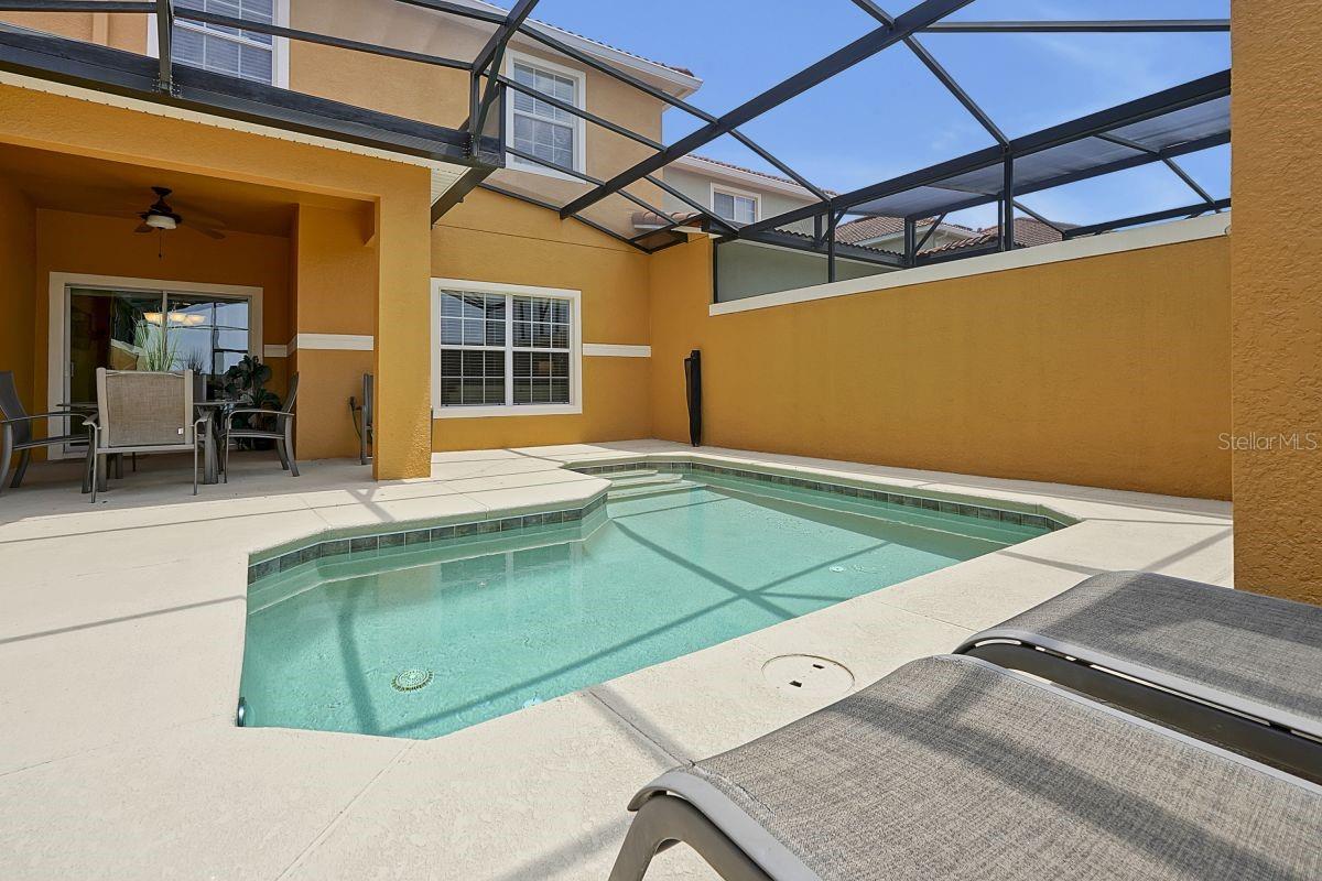 Rare waterfront townhome in Paradise Palms Resort! This fully furnished 4BR/3BA home offers stunning water views from your private screened splash pool & lanai—one of the few waterfront units available in the community. Step inside to an open-concept layout featuring a modern kitchen with stainless steel appliances, granite countertops, and a spacious living and dining area—perfect for entertaining or relaxing after a day at the parks. This home has been freshly painted and has new upgraded laminate flooring. Thoughtfully laid out with 1 king suite upstairs, 1 downstairs bedroom with a king bed, and 2 additional upstairs bedrooms, each with a full and twin bed. Additional features include flat screen TVs in every bedroom, high-speed WiFi, and full-size washer/dryer. Located just minutes from Walt Disney World, shopping, dining, and major highways, this home is zoned for short-term rentals and offers strong rental income potential. Don’t miss this opportunity to own one of the most sought-after waterfront units in Paradise Palms! Resort amenities: gated entry, lagoon-style pool with tiki bar, hot tubs, fitness center, theater, arcade, splash pad, tennis, basketball & more.
