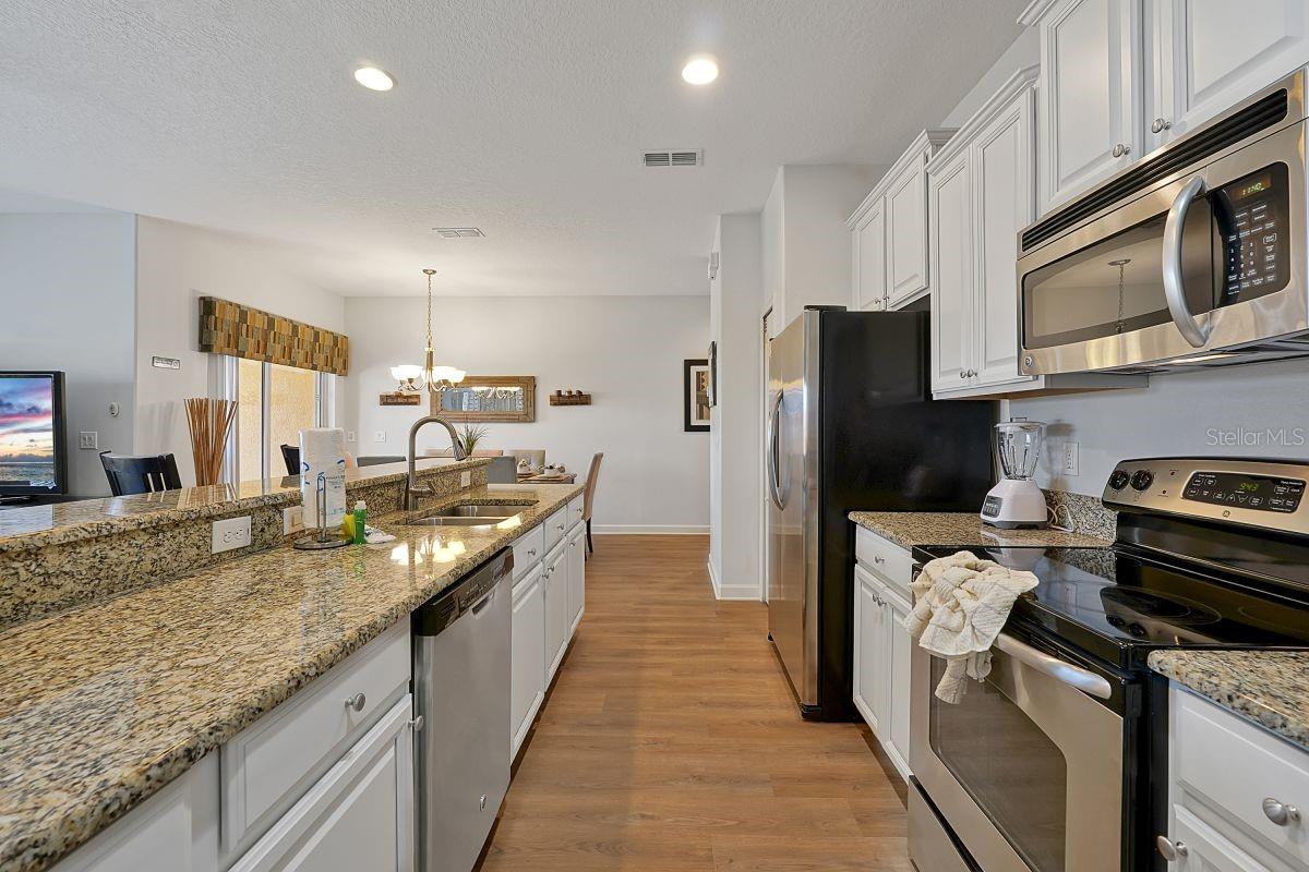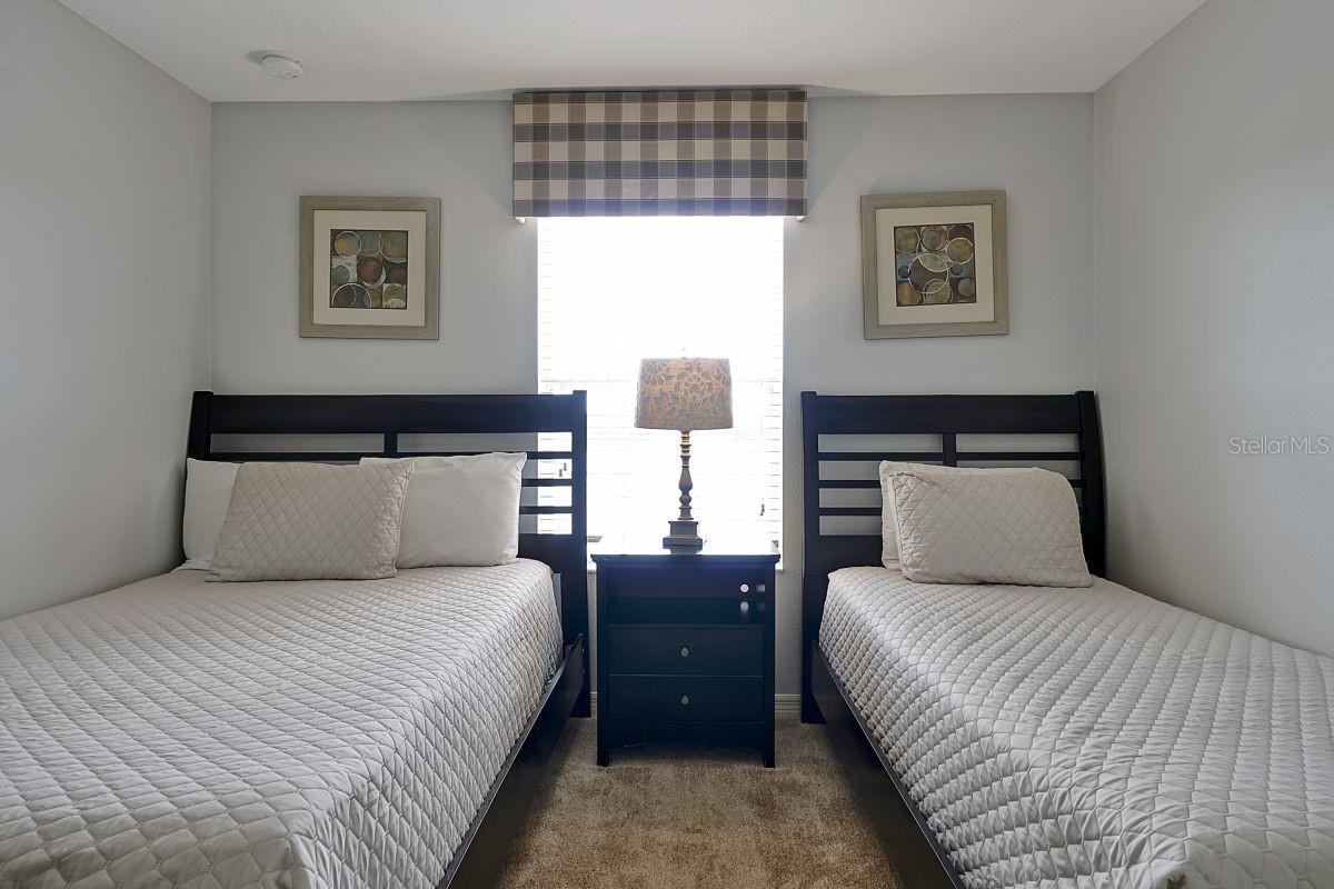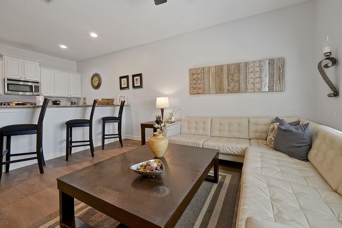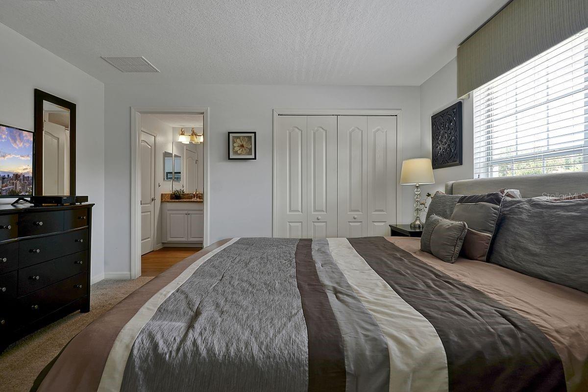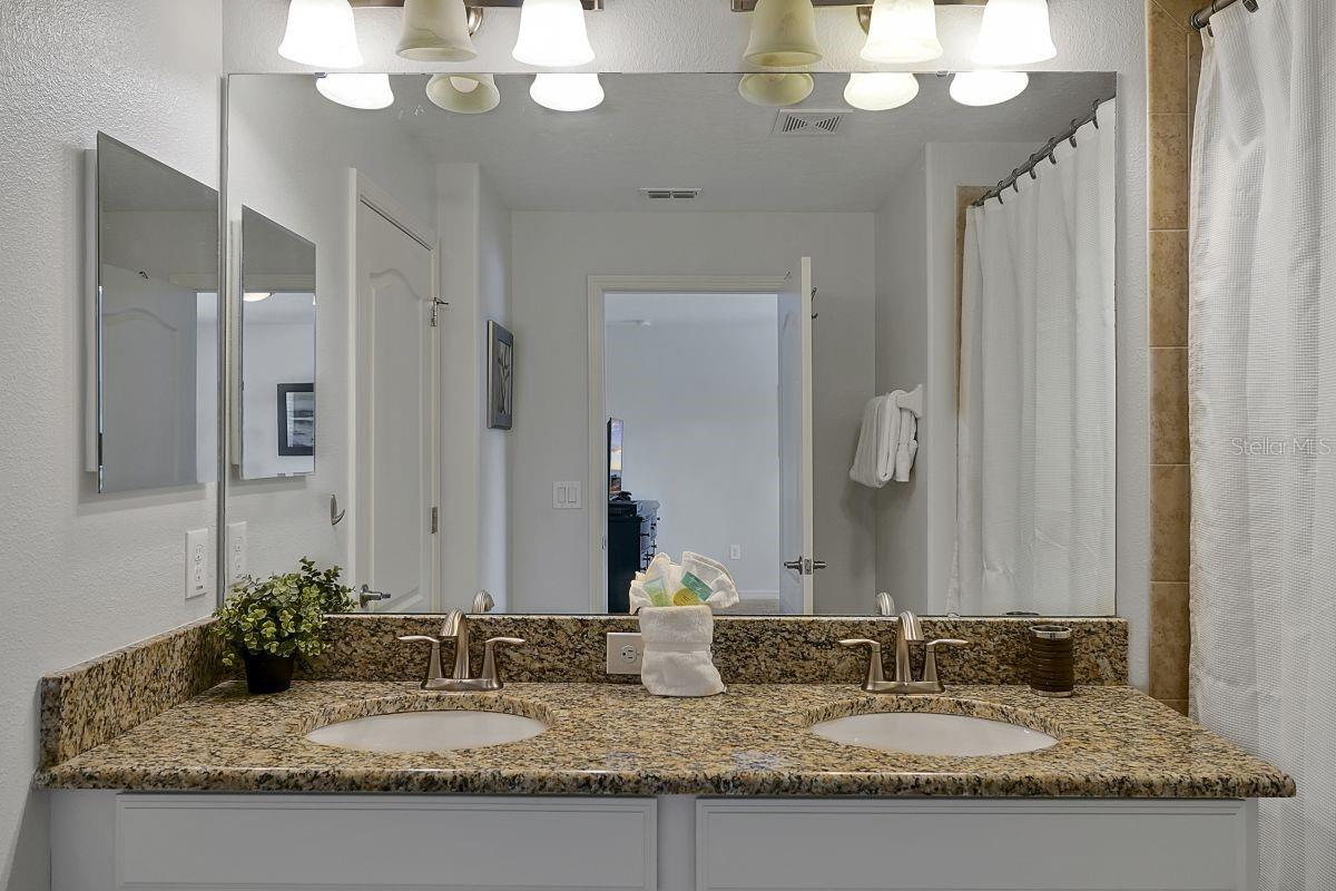 Rare waterfront townhome in Paradise Palms Resort! This fully furnished 4BR/3BA home offers stunning water views from your private screened splash pool & lanai—one of the few waterfront units available in the community. Step inside to an open-concept layout featuring a modern kitchen with stainless steel appliances, granite countertops, and a spacious living and dining area—perfect for entertaining or relaxing after a day at the parks. This home has been freshly painted and has new upgraded laminate flooring. Thoughtfully laid out with 1 king suite upstairs, 1 downstairs bedroom with a king bed, and 2 additional upstairs bedrooms, each with a full and twin bed. Additional features include flat screen TVs in every bedroom, high-speed WiFi, and full-size washer/dryer. Located just minutes from Walt Disney World, shopping, dining, and major highways, this home is zoned for short-term rentals and offers strong rental income potential. Don’t miss this opportunity to own one of the most sought-after waterfront units in Paradise Palms! Resort amenities: gated entry, lagoon-style pool with tiki bar, hot tubs, fitness center, theater, arcade, splash pad, tennis, basketball & more.