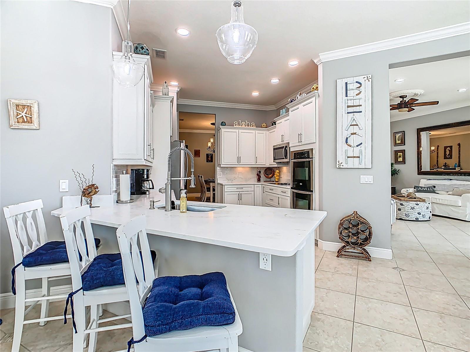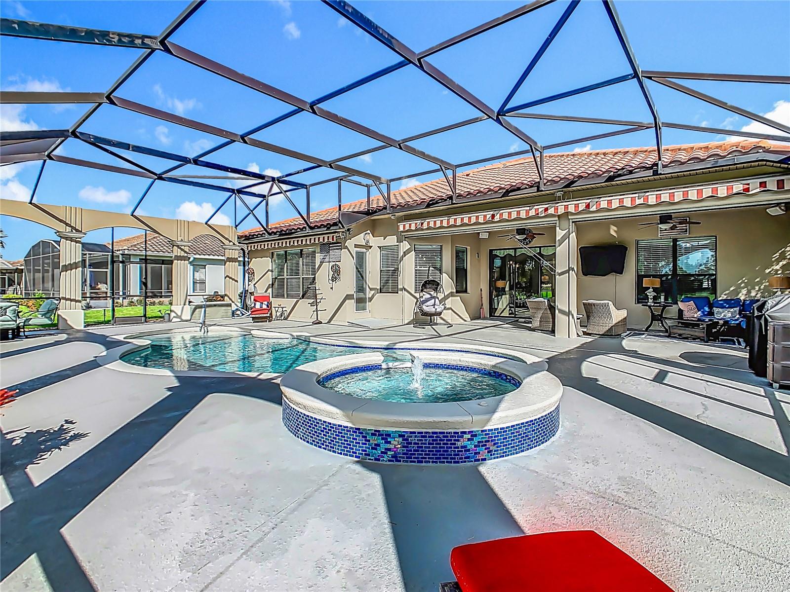 Your DREAM HOME just got CLOSER! This LUXURY STUNNING MEDITTERANEAN POOL HOME ON THE GOLF COURSE!!!! has just received a ***PRICE ADJUSTMENT*** making your dream more attainable than ever. Why wait? Step into the life you’ve imagined and make it yours today. ACT NOW!!! and start living the lifestyle you deserve! IT IS A GOLFER’S DREAM HOME WITH EXQUISITE UPGRADES THROUGHOUT that combines striking architectural style with serene GOLF COURSE VIEWS!!!! DESIGN TO IMPRESS, OFFERING THE COVETED “WOW” FACTOR THAT leaves an impression. *SEE THE VIRTUAL TOUR* This dream home is situated in the most desired street in Solivita, TORINO LANE, and on 1st Green of Cypress Golf Course. CLOSE to the vibrant VILLAGE CENTER offering easy access to all major events, the farmer's market, restaurants, and a state-of-the-art amenity center featuring a gym, pool, sauna, spa, tennis & pickle ball courts, a diamond softball field, playground, two dog parks, a butterfly garden, vegetable garden, ballroom, golf shop, and convenience store with a pharmacy. This MASTERPIECE has every upgrade you have ever wanted, meticulously crafted to perfection. Once inside, you will experience luxury and sophistication. This upscale open-concept COCONUT GROVE custom home has 2,343 sq. ft. ft. of interior space with a total area of 3,342. Your NEW home has TWO bedrooms, TWO bathrooms, a powder room, and a versatile FLEX ROOM with a MURPHY BED that could be a THIRD bedroom, office, study, media room or CRAFT ROOM. TWO CAR GARAGE WITH EPOXY CAR FLOORING, **GOLF CART BAY**, and overhead garage storage racks, Dual Pane Windows, WATER SOFTENER, and CROWN MOLDINGS THROUGOUT. Step into Luxury and experience the epitome of elegance from the moment you enter this breathtaking property, boasting: DIAGONAL TILE flooring throughout, creating a sense of sophistication, adding a touch of refinement. There is no property compared to this breathtaking stunning POOL HOME with GOLF VIEWS, featuring UPGRADED LANSCAPING with curbing for a lush manicured look to added sophistication, outdoor lighting to highlight the home's best features, also, this gem has an screened front porch and gutters, YOUR PRIVATE OUTDOOR OASIS RETREAT JAW-DROPPING GOLF VIEWS COMES WITH AN EXPANSIVE SCREENED LANAI, and A **HEATED SALTWATER POOL** with new pump and **INTEGRATED JACUZZI** with ambient lighting for evening enjoyment, perfect for entertaining or unwinding, this spacious OUTDOOR HAVEN features a retractable screen and a retractable awning, both enhanced with built-in lighting to set the mood and extend your living space with ease. The Heart of this GEM IS THE GOURMET KITCHEN with HIGH GRADE WATERSTONE QUARTZ COUNTERTOPS, DOUBLE OVEN, TOP OF THE LINE STAINLESS STEEL APPLIANCES, SUBWAY TILE BACKSPLASH, 42’ SOLID WOOD SOFT CLOSE DRAWERS, LOWER PULLOUT, UNDERMOUNT SINK, UPGRADED KITCHEN FAUCET, NEW GARBAGE DISPOSAL, EXTENDED BREAKFAST BAR COUNTER with Pendant lighting. undercabinet lighting, RECESSED LIGHTING. BREAKFAST NOOK AND FLORIDA ROOM. THE Spacious OWNER’S SUITE (17’ X 15’) with TRAY ceiling HAVE TWO CUSTOM DESIGN CALIFORNIA WALK-IN CLOSET, and EN-SUITE BATHROOM WITH double sink, Upgrade SPLIT vanities, QUARTZ COUNTERS, SOAKING TUB, and a walk-in shower with sitting bench. EXTENDED TWO CAR GARAGE with Golf Cart Bay, epoxy floors, AND OVERHEAD STORAGE RACKS. Inside Laundry Room with folding station and storage cabinets. Schedule your private or virtual showing today! This opportunity won’t wait!!!