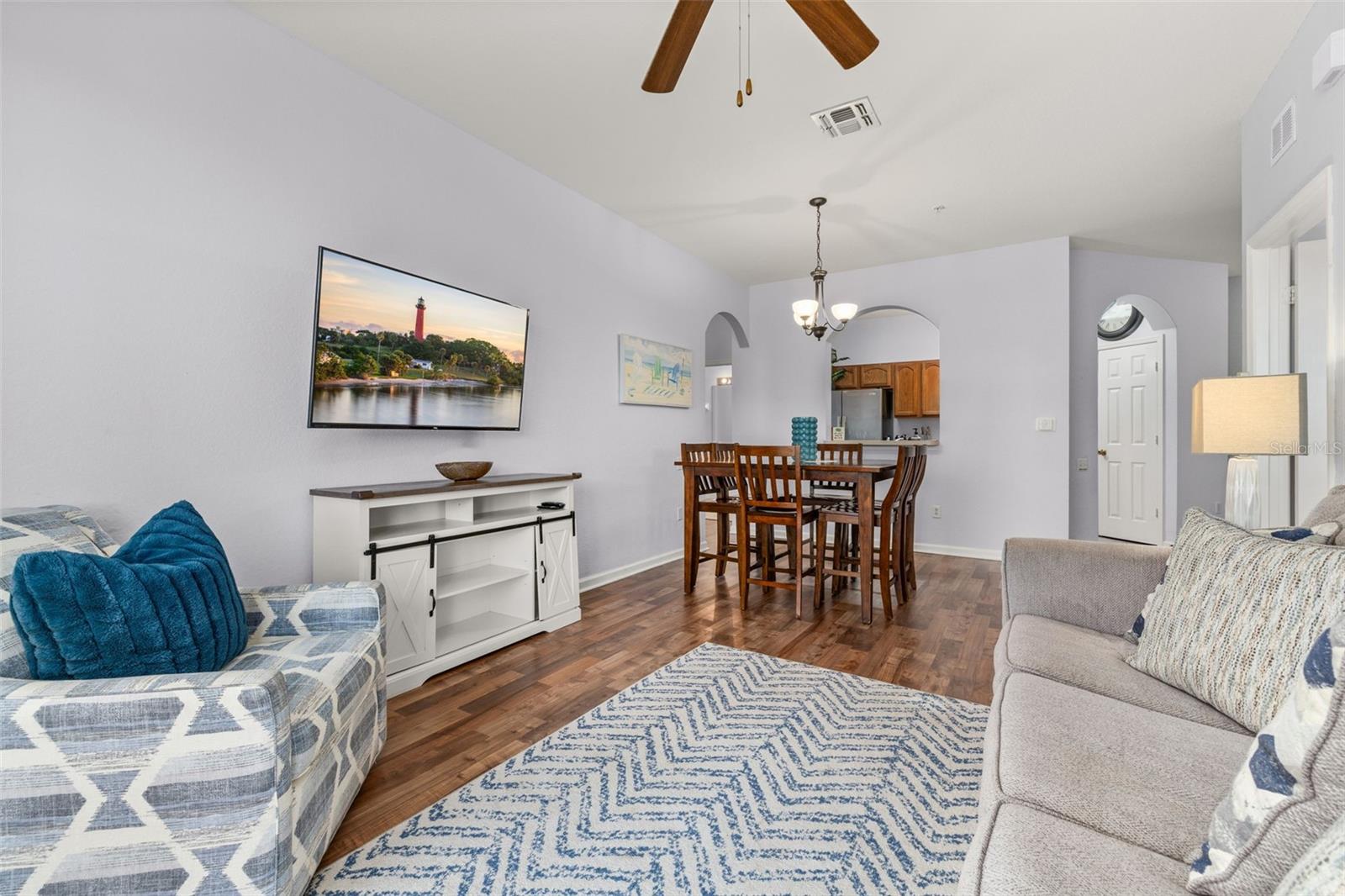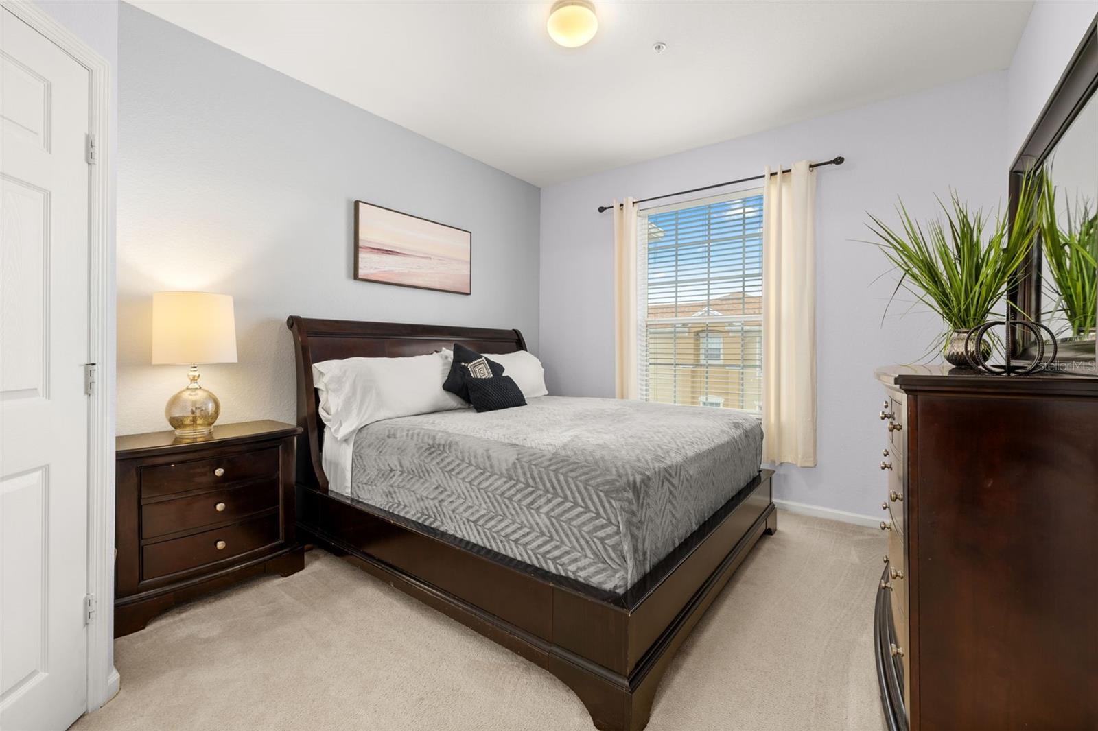 Welcome to your stunning 2-bedroom, 2-bathroom condo in the highly sought-after Windsor Hills Resort, a premier destination just minutes from Walt Disney World and other major Central Florida attractions. This home offers a turnkey investment opportunity in a proven, high-demand location. The condo features a bright, open-concept layout with beautiful wood laminate flooring in the main living areas. The updated kitchen is equipped with modern stainless steel appliances, including a refrigerator with a water dispenser and a built-in microwave. The unit comes fully furnished and professionally decorated, with a comfortable living space that leads to a private, screened balcony. The two bedrooms are a true highlight, featuring a professionally decorated Disney-themed room that is a favorite with guests. Both bedrooms have plush carpeting and dedicated TVs for guest comfort. Windsor Hills is renowned for its world-class amenities, all included in the HOA fees. Residents and guests enjoy a double Olympic-sized lagoon-style pool with the new Sir Windsor's AquaVenture Water Park, a 48-seat movie theater, a professionally equipped fitness center, a game room, lighted tennis and basketball courts, and a sand volleyball court. The robust HOA ensures a carefree experience, covering 24/7 manned security, community-wide maintenance, internet, cable, trash, water, and sewer. With everything included, this property provides an exceptional opportunity for generating rental income.