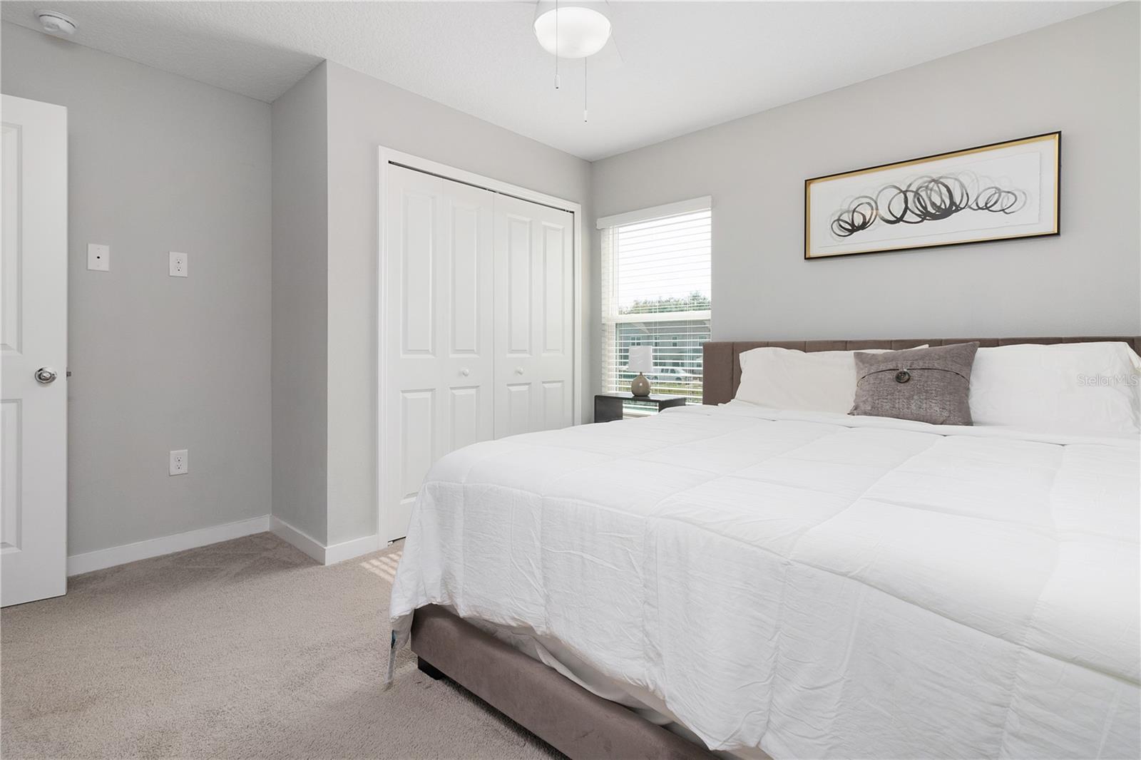 Welcome to Le Rêve, a boutique gated community in the heart of Kissimmee. This 4-bedroom, 3.5-bath townhome is designed for both comfort and convenience, making it an excellent choice as a vacation rental, second home, or personal retreat near the parks. The first floor features an open living and dining space that flows easily into a modern kitchen with quartz counters, stainless steel appliances, and sleek cabinetry. Large sliding doors bring in natural light and open to your private screened patio, complete with a refreshing pool and summer kitchen—perfect for unwinding after busy days or hosting friends and family. All four bedrooms are located upstairs, creating a private retreat away from the main living areas. Two bedrooms enjoy their own ensuite bathrooms, while the other two share a full bath. A laundry closet with washer and dryer adds everyday ease to the thoughtful layout. Le Rêve offers resort-style amenities including a clubhouse, fitness center, and community pool, all within a secure gated setting. Just across the street, a Super Walmart makes daily errands simple, while shopping, dining, and entertainment options are only minutes away. Disney World and Disney Springs are less than a 15-minute drive, placing Orlando’s top attractions right at your doorstep. If you’re looking for a turnkey property in a prime location, this home checks every box.
