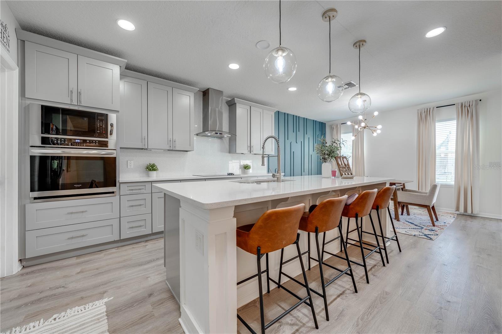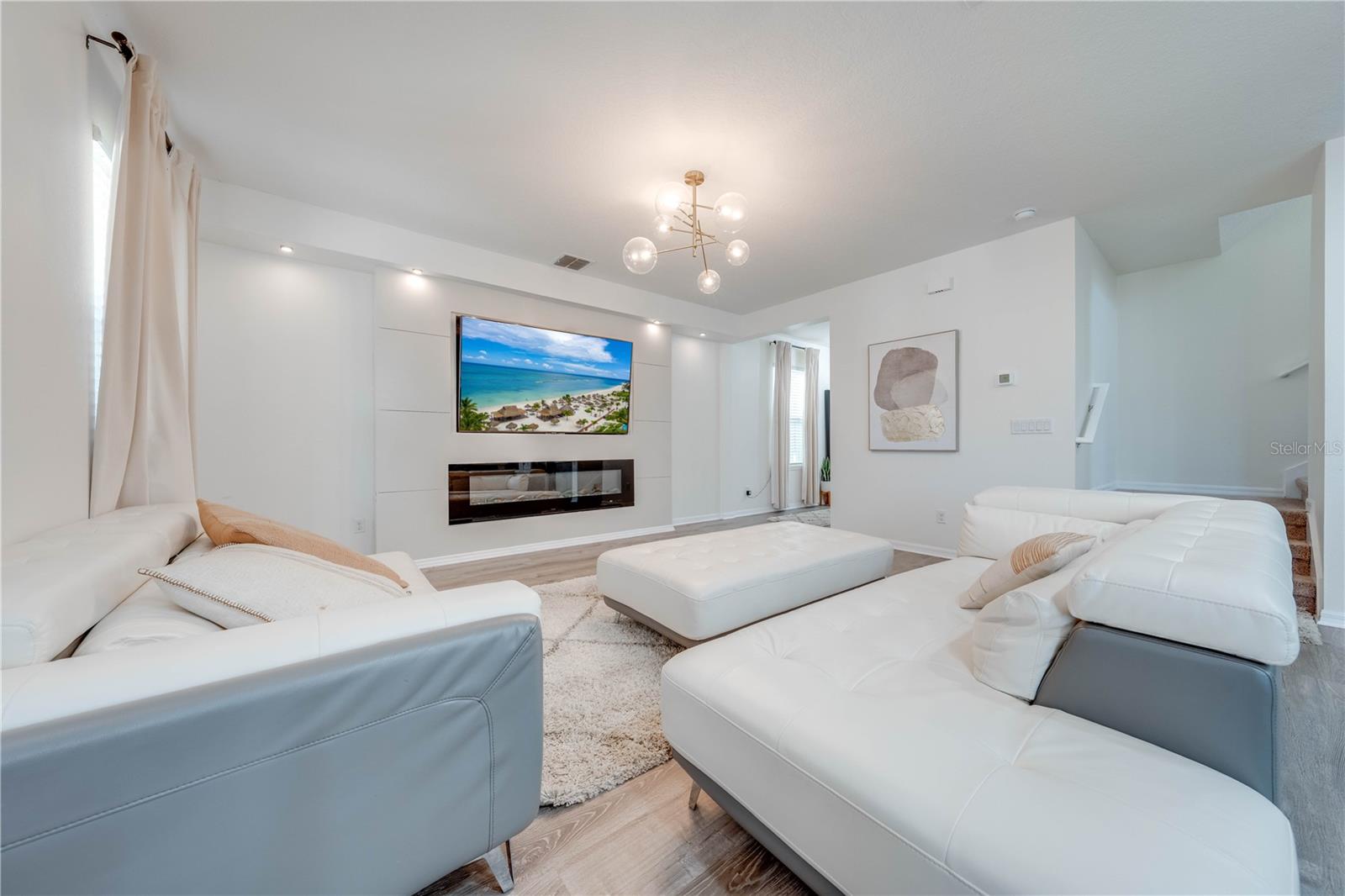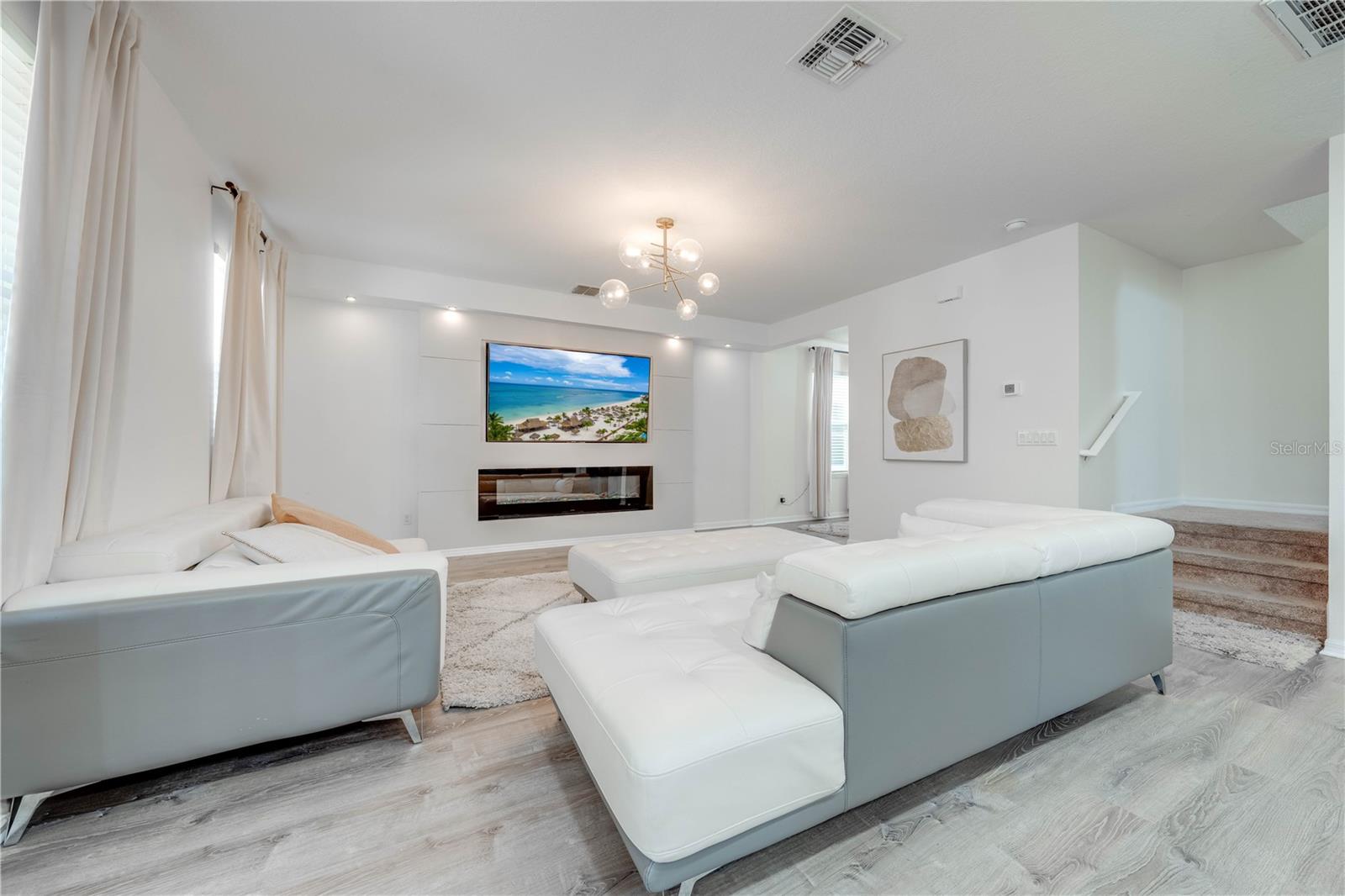 Welcome to 2778 Monticello Way, Kissimmee, FL 34741! This beautifully upgraded home is full of modern touches and stylish details. The open floor plan features a cozy living room with an electric fireplace and a sleek accent wall. The kitchen has been upgraded with quartz countertops, a large island with seating, modern pendant lights, and custom 42" cabinets with plenty of storage. You'll also love the stainless steel appliances and range hood, adding a gourmet feel. Upgraded flooring throughout gives the home a fresh, modern look, and the built-in racks in the master closets for an extra organization. Enjoy outdoor living on the covered lanai with a patio, and take advantage of the 2-car garage for extra convenience. With a brand-new 2023 A/C and community amenities like a playground and cabana, you're just 5 minutes from The Loop mall, 15 minutes from Disney, and near shopping at Posner Park and ChampionsGate Village. This upgraded gem won’t last long—don’t miss out on this stunning home