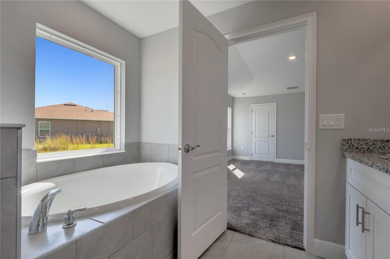 Portico Homes’ “Cypress” model in Poinciana Villages, Osceola County. Open-concept concrete block home with ceramic tile floors, plush carpet in bedrooms, 42” cabinets, granite countertops, and vaulted master with dual walk-in closets. Bathrooms feature large tubs and tiled showers. High-end finishes throughout. Leased through April 1, 2026, providing steady rental income.