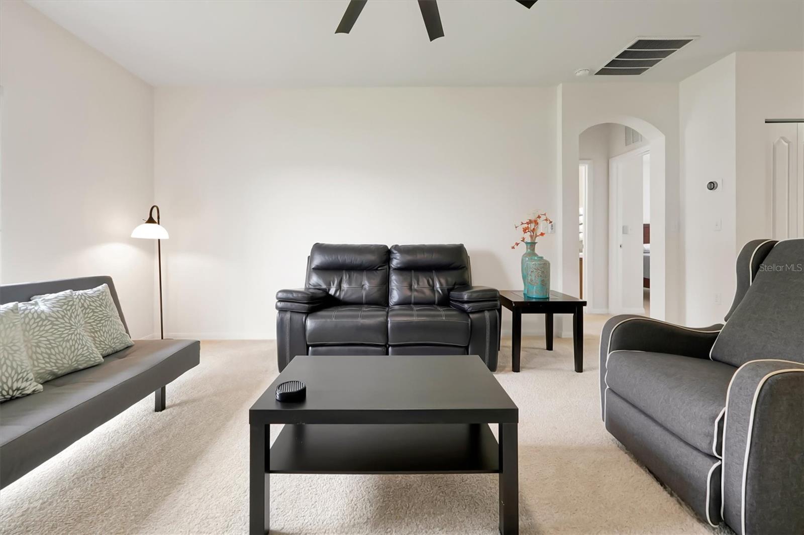 Welcome to House Queen Alexandria, a spacious single-family home with serene water views, ideally located near Lake Nona in the highly sought-after Springlake Village community. From an architectural perspective, this home embraces the Contemporary Florida Ranch style with Mediterranean accents, a design popular in Kissimmee’s master-planned communities. Key elements include a low-pitched gable roof with asphalt shingles, stucco exterior walls in a neutral earth tone for durability and energy efficiency, and a symmetrical façade with a two-car garage. Arched entryway details over the windows and front door lend a Mediterranean touch, while the home’s simple rectangular footprint and clean lines emphasize functionality and ease of living. Step inside and you’re welcomed by a wide foyer leading to a versatile flex space—ideal as a dining room, home office, or sitting area. The kitchen showcases warm wood cabinetry and flows into a casual dining nook, making it the heart of the home. High ceilings enhance the open feel, while the living room provides abundant natural light and space to gather. The bedrooms are generously sized with ceiling fans for comfort, and the primary suite is a true retreat, offering tranquil lake views, dual sinks, a walk-in closet, and a private water closet. Outdoors, a patio overlooking the lake provides the perfect backdrop for morning coffee or evening relaxation. Springlake Village combines luxury with value—featuring low monthly HOA fees and meticulously maintained common areas. This gated community offers a wealth of resort-style amenities, including two pools, two tennis courts, a fitness center, clubhouse with arcade, playgrounds, shuffleboard, soccer field, volleyball court, cornhole, and a dog park. Perfect for those who value farm-to-table meals and a healthy lifestyle, this peaceful retreat is close to Lake Nona, Medical City, Austin Tindall Sports Complex, Orlando International Airport, and all of Orlando’s world-class attractions, including Disney. Easy access to 417 and 528 ensures a seamless connection to shopping, dining, and schools. This beauty will not last—schedule your private tour today and discover everything House Queen Alexandria and Springlake Village have to offer.