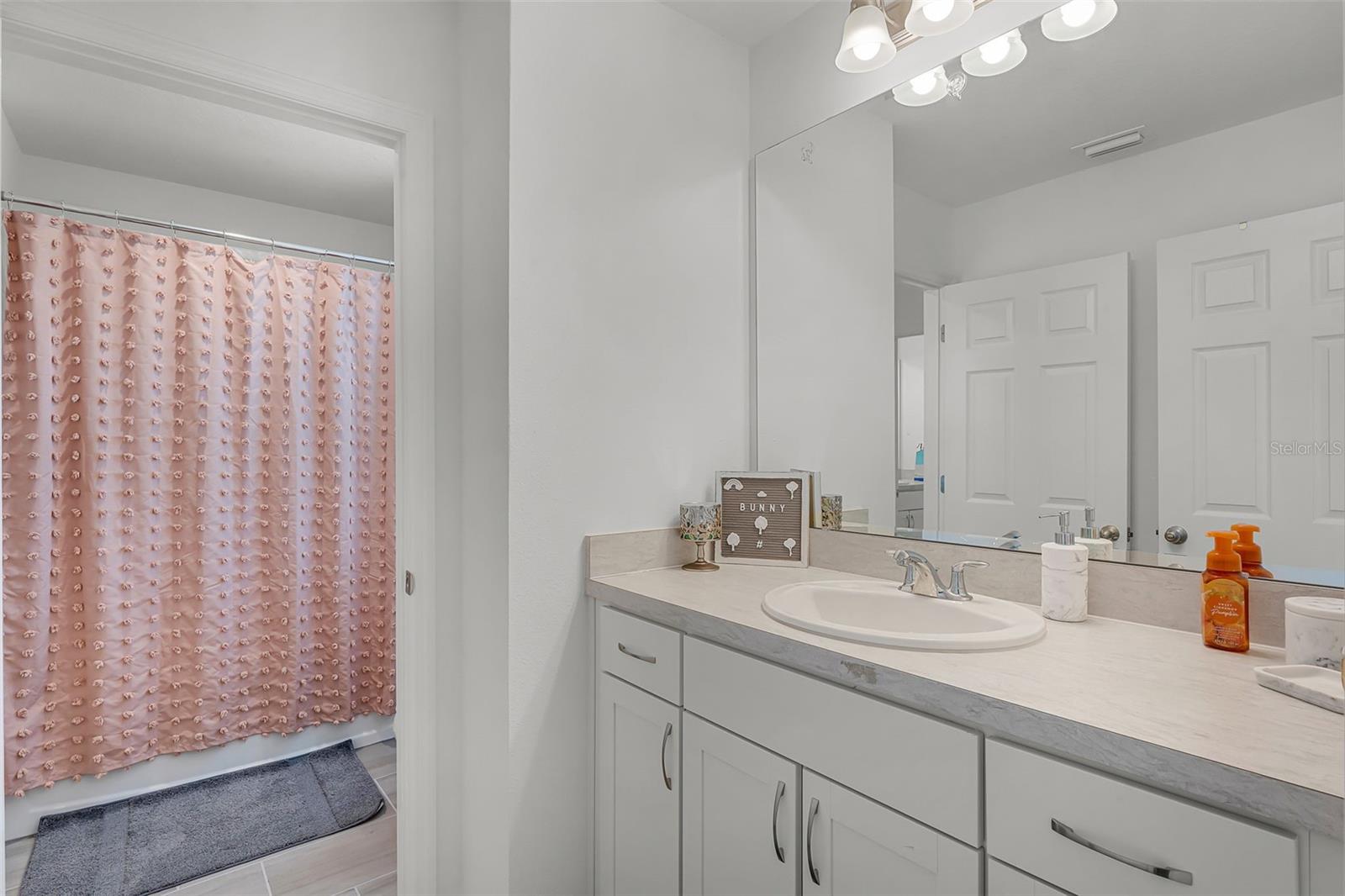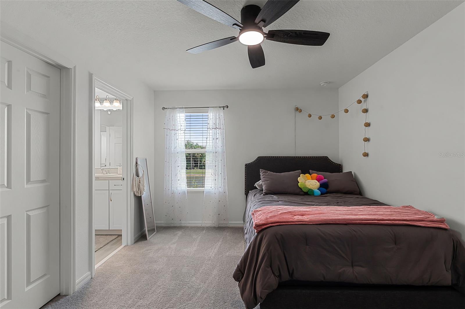 Beautiful Hamilton floor plan, end-unit townhome with serene pond view in Cypress Hammock. With 3 bedrooms, 2.5 baths, and a 2-car garage, this barely lived-in second home offers an open layout with upgraded lighting, a new stair railing, and a screened-in patio for relaxing outdoor living. The kitchen features stainless-steel appliances, quartz countertops, and 42" cabinets with crown molding. Upstairs, the spacious primary suite includes an upgraded granite vanity, dual sinks, and a walk-in shower with dual shower heads. While the secondary bedrooms share a Jack and Jill bath. The laundry room is conveniently located upstairs. Community amenities include a resort-style pool, splash pad, playground, sports field, BBQ area, and scenic walking trails—with no CDD fees. Ideally located less than 20 minutes from Disney, with easy access to shopping, dining, and major roads.