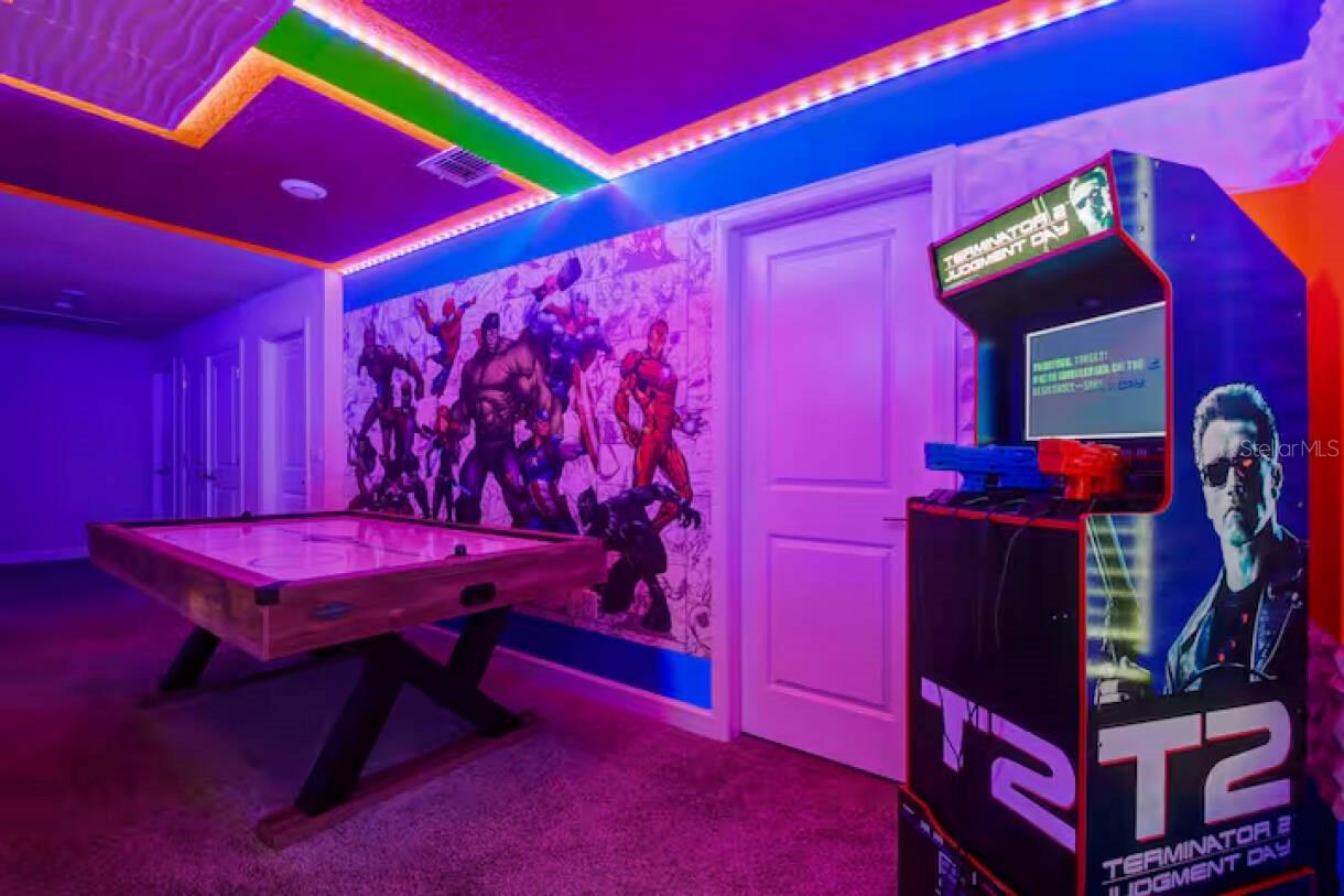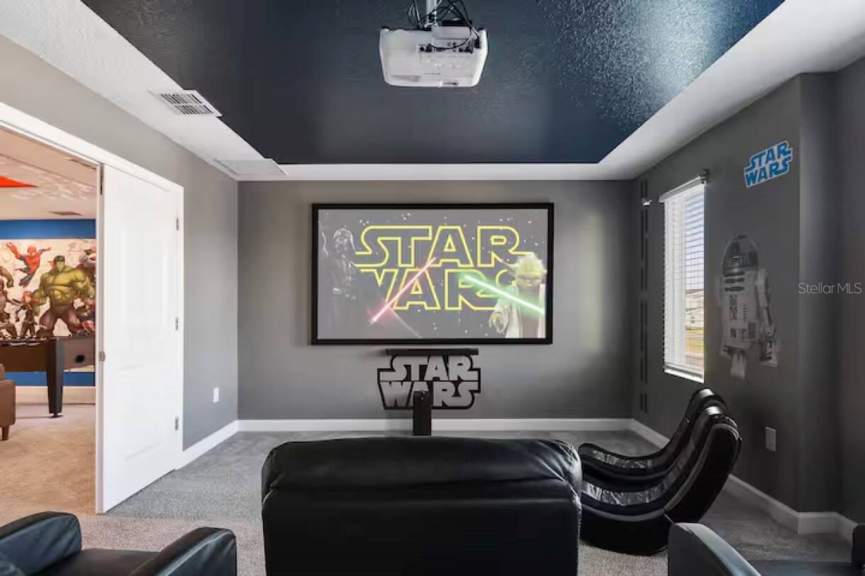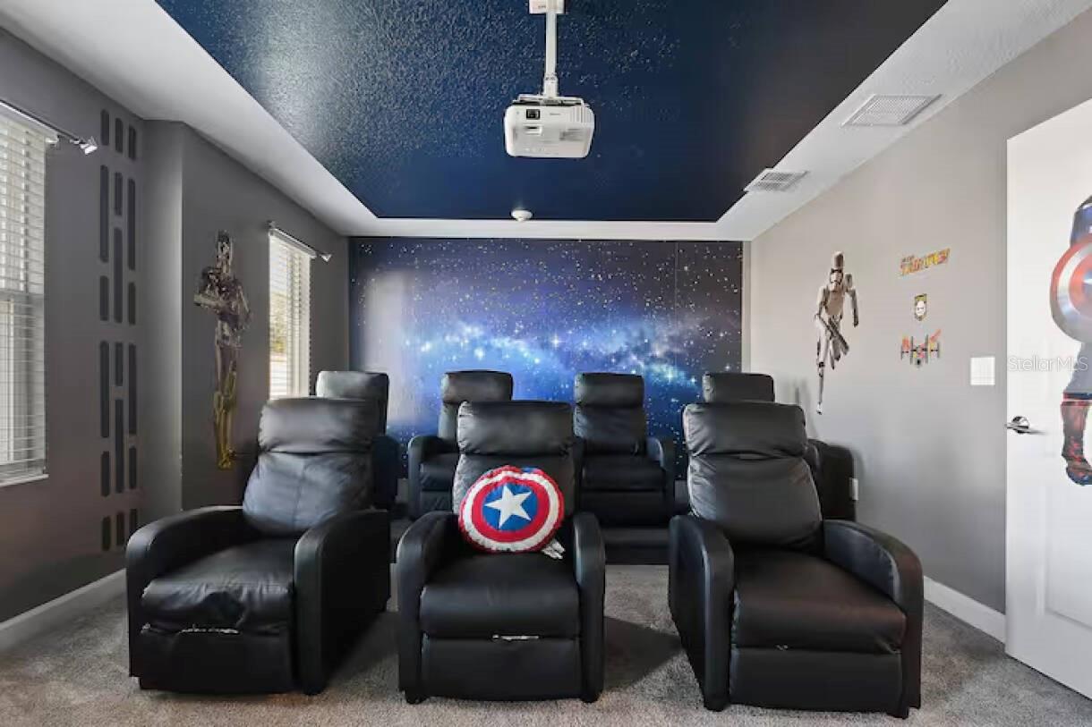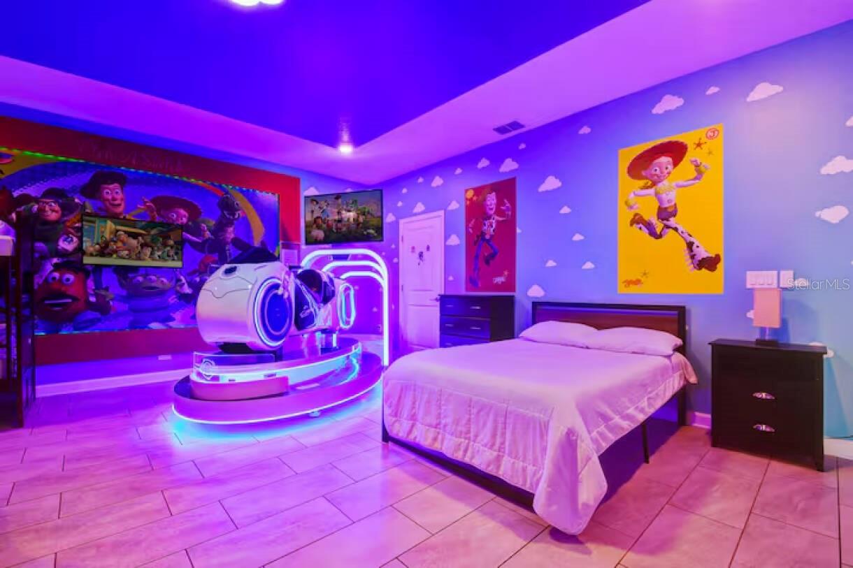 Enjoy stunning pond and conservation views with no rear neighbors in this spectacular Santiago model built in 2019, featuring a unique Virtual Reality machine for an unmatched entertainment experience. This 9-bedroom home is exceptionally well maintained and comes fully furnished, designed for both comfort and fun, offering: A private movie theater, Game room, Multiple beautifully themed bedrooms that guests of all ages will love. Located in the highly desirable Storey Lake Resort, just minutes from Disney and Orlando’s top attractions, this property combines luxury living with strong short-term rental income potential. Don’t miss the chance to own one of the most unique and well-kept homes in Storey Lake with rare views and premium upgrades!