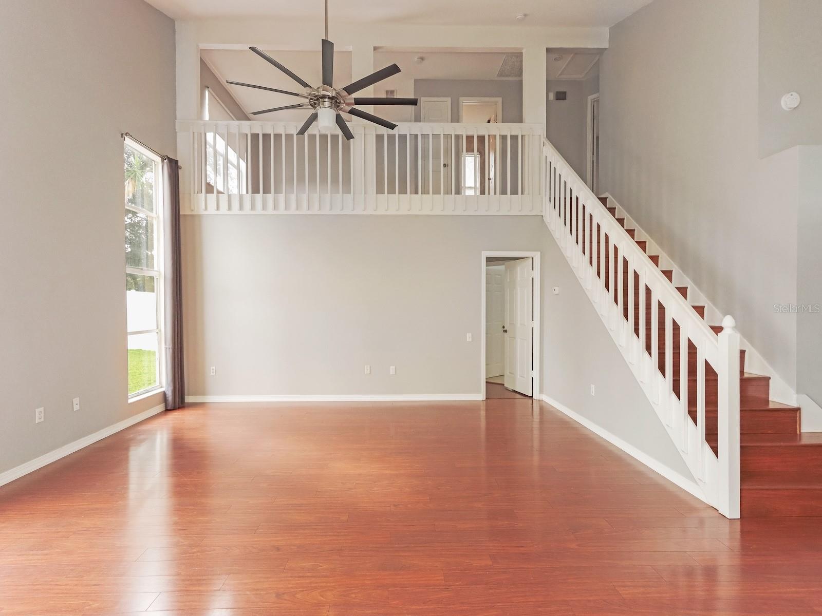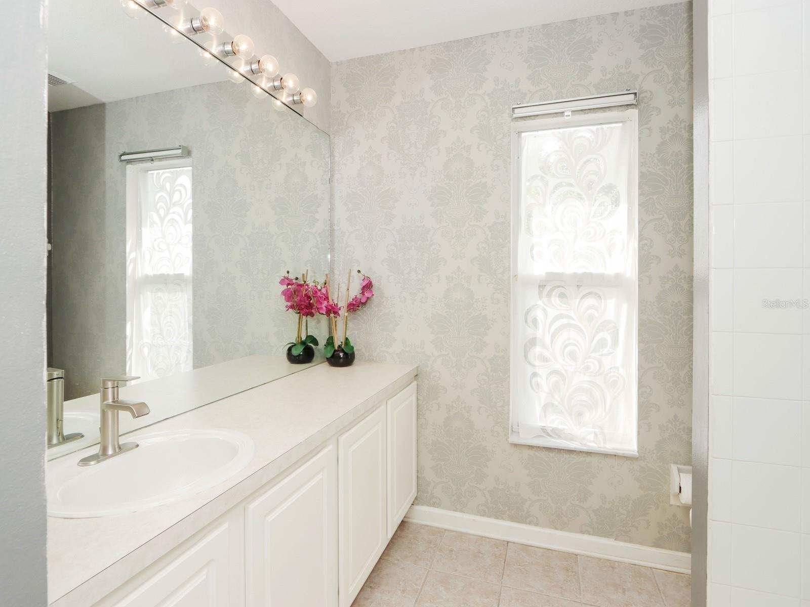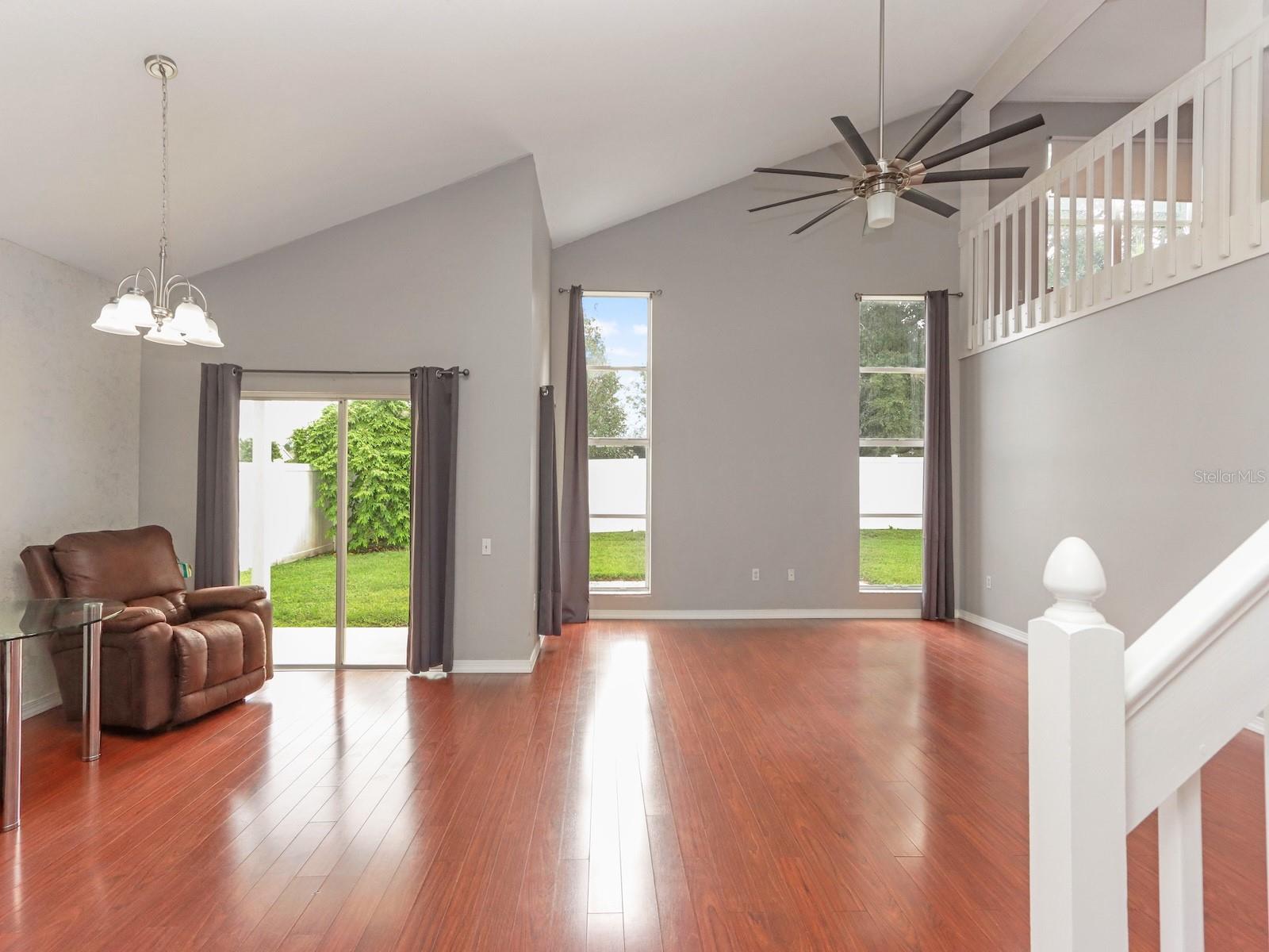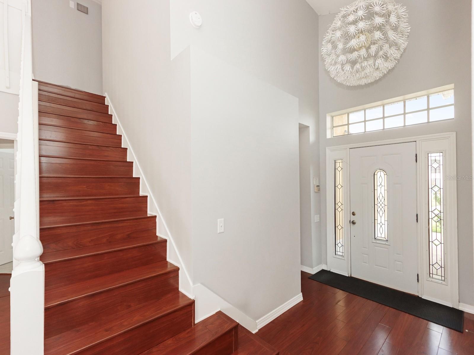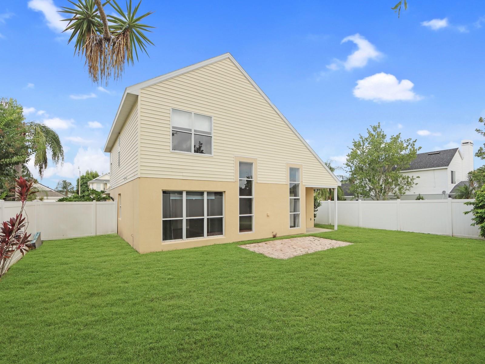 Welcome to this updated 3-bedroom, 2.5-bath Pulte home featuring an open loft/flex space and a desirable primary bedroom conveniently located on the first floor. Step inside to discover a bright and airy open floor plan with an abundant of natural light streaming through the many large living room windows. The home has an updated kitchen with new cabinets, stainless steel appliances and quartz countertops. The fully vinyl fenced backyard includes a covered lanai, perfect for relaxing or entertaining outdoors. The property is situated next to a scenic walking trail with no rear neighbor and only one direct neighbor to the right of the home, offering privacy and a peaceful setting. Located just steps from a playground overlooking two picturesque ponds, this beautifully landscaped community offers low HOA fees, walking trails, a community pool, and a playground. This community is highly sought after with the convenience of being within walking distance to The Loop shopping center and close to major highways like Osceola Parkway and 417. The community is very central to all major attractions and is located just minutes from Disney.