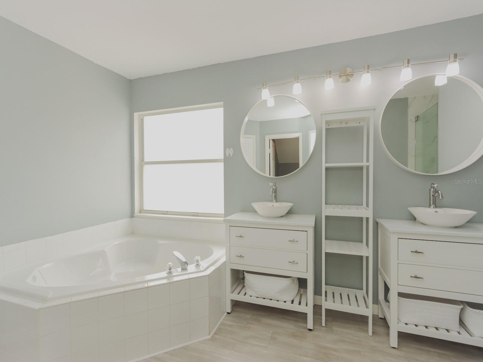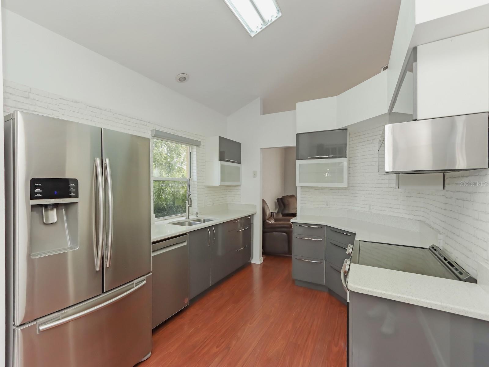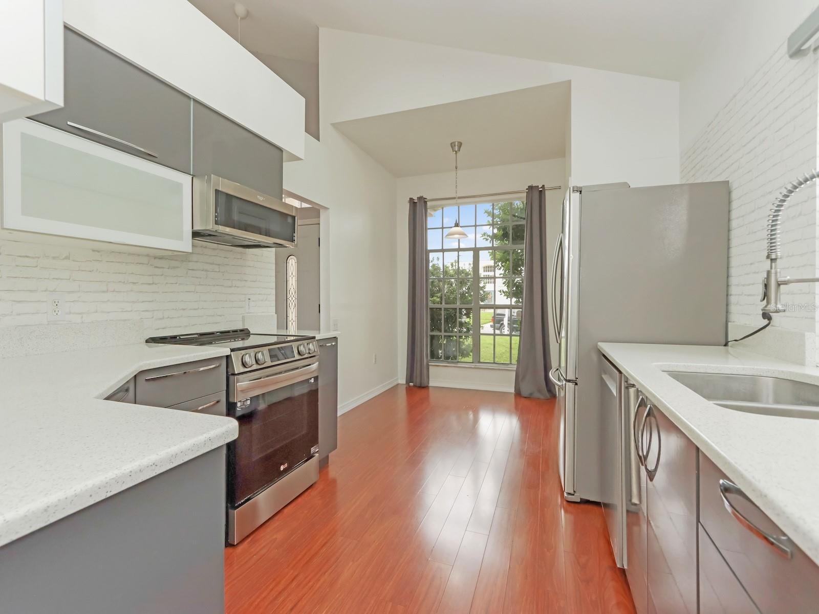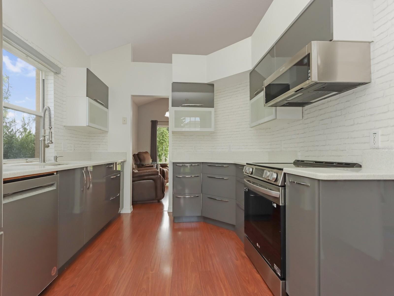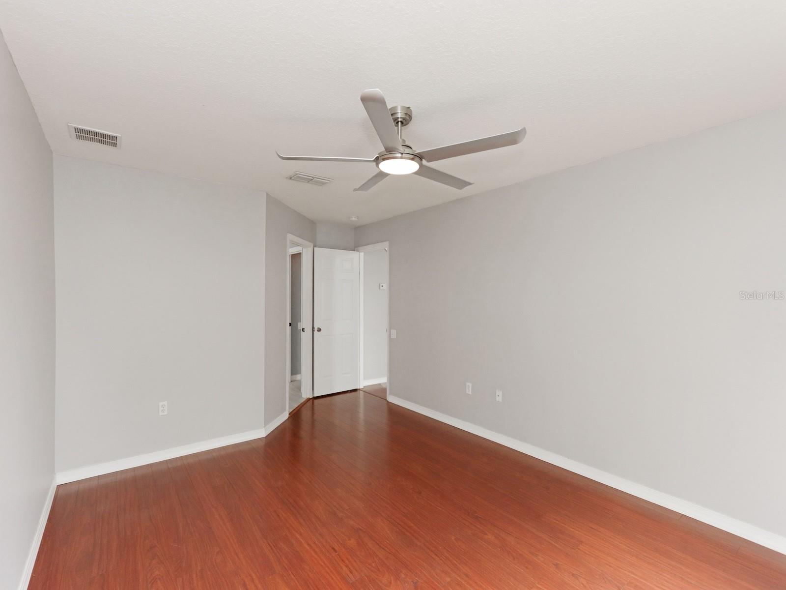Welcome to this updated 3-bedroom, 2.5-bath Pulte home featuring an open loft/flex space and a desirable primary bedroom conveniently located on the first floor. Step inside to discover a bright and airy open floor plan with an abundant of natural light streaming through the many large living room windows. The home has an updated kitchen with new cabinets, stainless steel appliances and quartz countertops. The fully vinyl fenced backyard includes a covered lanai, perfect for relaxing or entertaining outdoors. The property is situated next to a scenic walking trail with no rear neighbor and only one direct neighbor to the right of the home, offering privacy and a peaceful setting. Located just steps from a playground overlooking two picturesque ponds, this beautifully landscaped community offers low HOA fees, walking trails, a community pool, and a playground. This community is highly sought after with the convenience of being within walking distance to The Loop shopping center and close to major highways like Osceola Parkway and 417. The community is very central to all major attractions and is located just minutes from Disney.