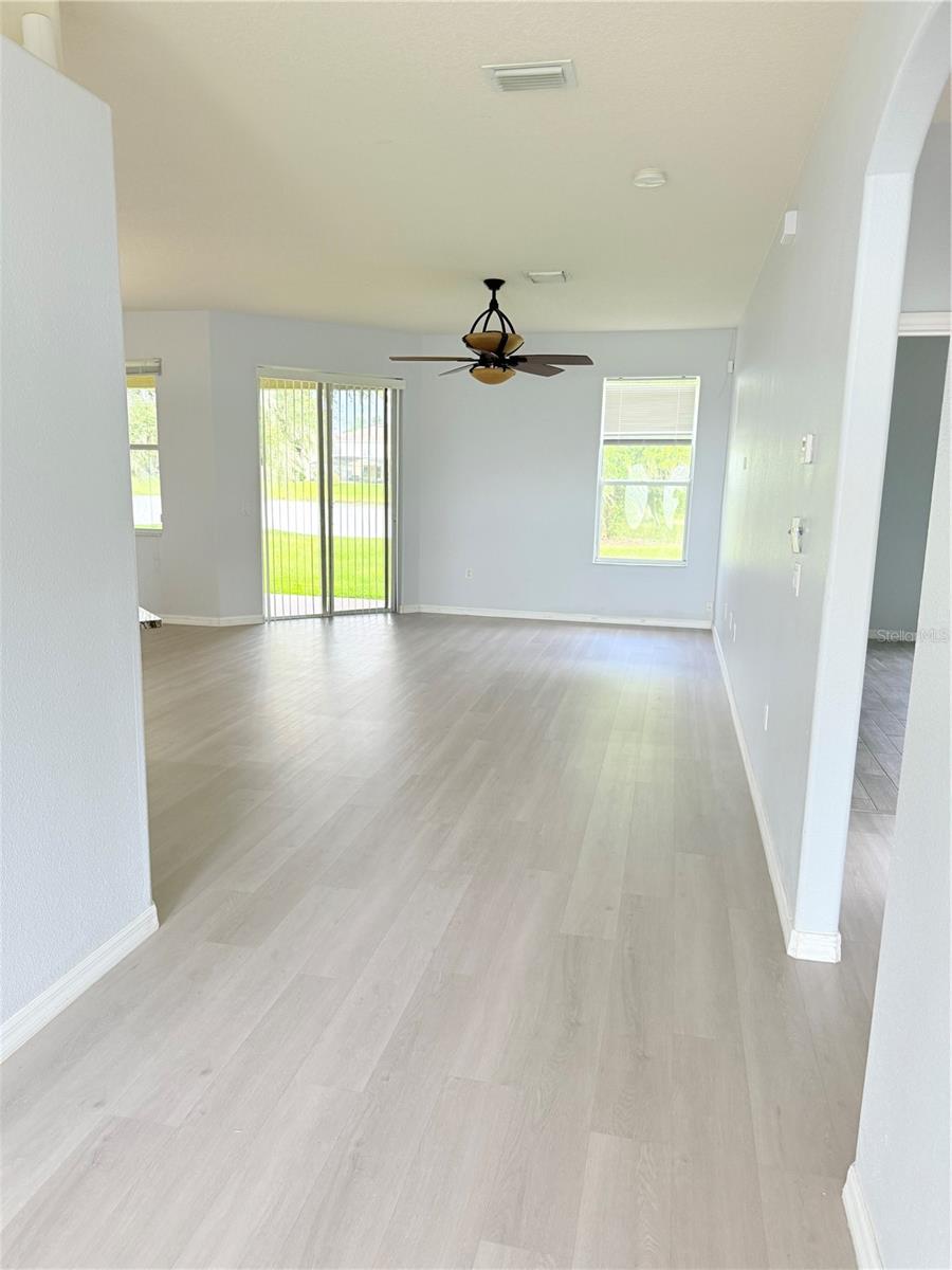 LOCATION AND MORE. This is a gorgeous and renovated one single family home with three bedrooms and two full baths. It has a spacious living/dining room combination. The eat in, which includes a beautiful breakfast open to living area. All appliances are stainless steel. It has beautiful granite counter tops. The floors are a combination of laminate and porcelain tiles. The master suite is spacious and has a walk-in closet with master bath, dual sinks, tub, and separate shower. There are two additional ample bedrooms. It has an extra room that can be used as an office or formal living room. The laundry room is inside. The property has a new roof (2025) as well as the outside heat pump condensing air conditioner (2024). Also, it is located in the Oaks Golf Club Community. This is a property that you really must see!!