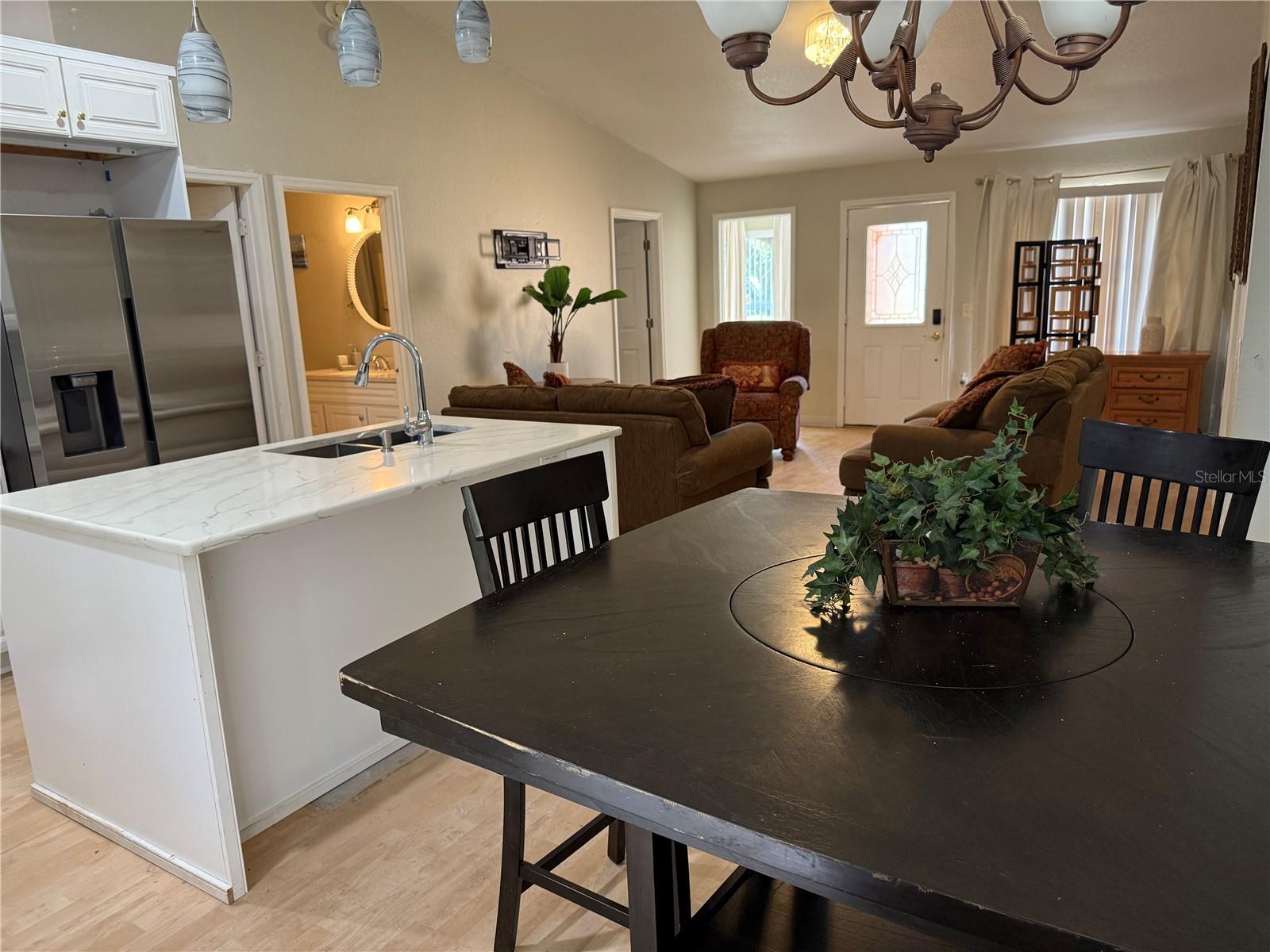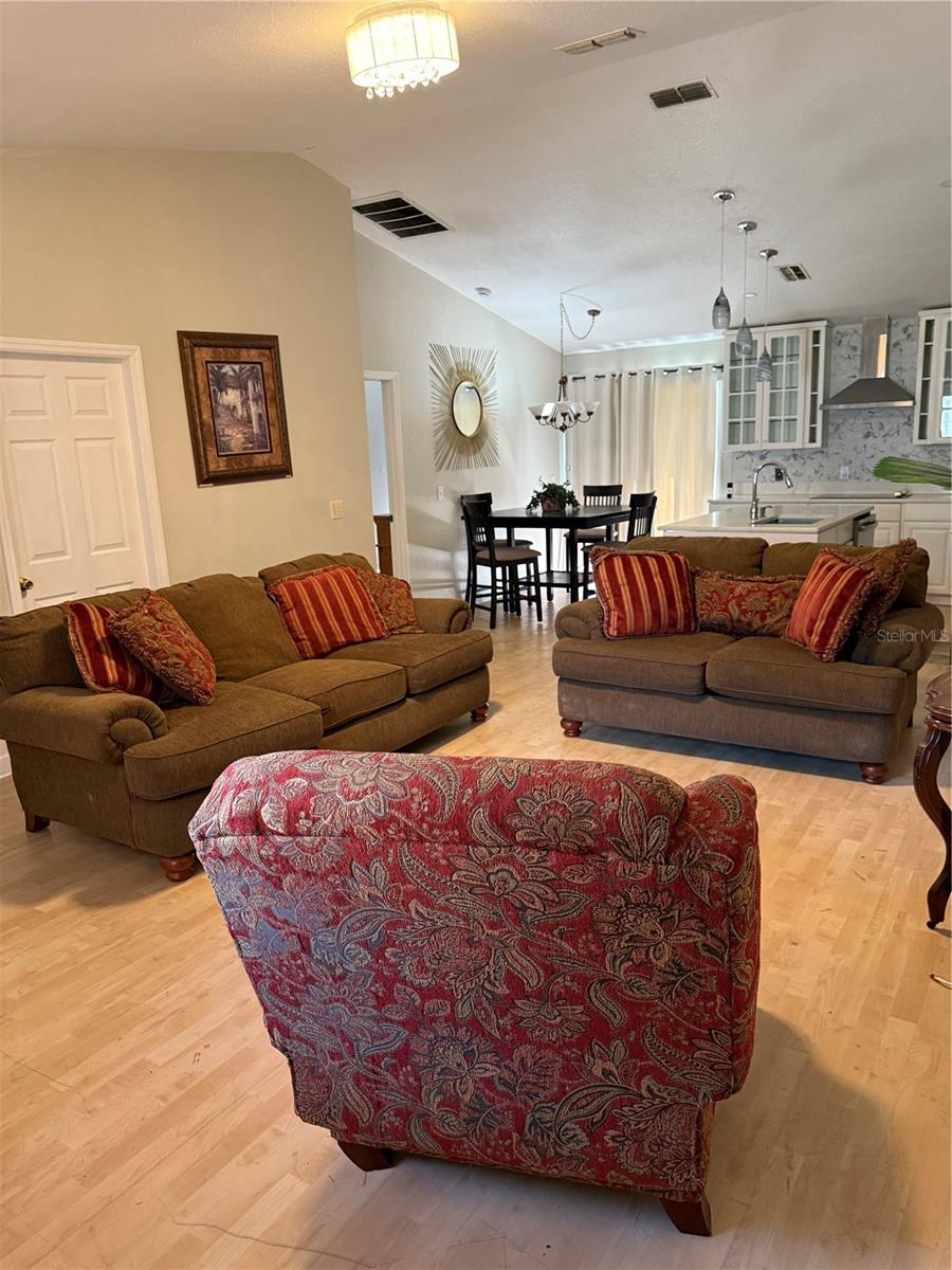 Welcome to your dream home! Its ideal for a primary, get away, retirement or rental home. This one story, 4 bedroom and 2 bathrooms, living room, dinette and kitchen is spacious and charming. According to the previous owner as reported in previous MLS report, a new roof was installed in 2024 and the AC is 3 years old. It has a low HOA of $90 dollars a month, It has an open floor plan with ceramic tile and vinyl flooring. The kitchen has been recently renovated with new kitchen 42 inch cabinets, it has a breakfast bar, refrigerator, stove top, dishwasher, refrigerator/freezer; The property is driving distance to a hospital, new shopping strip mall, international restaurants, Publix, Walmart, banks, Disney World, Universal Studios, numerous Amusement parks, helicopter rides, Orlando International Airport, the Atlantic Ocean and Gulf of America Beaches; 30 plus miles from entertainment sought out by tourist from around the world. VACATION EVERY DAY!