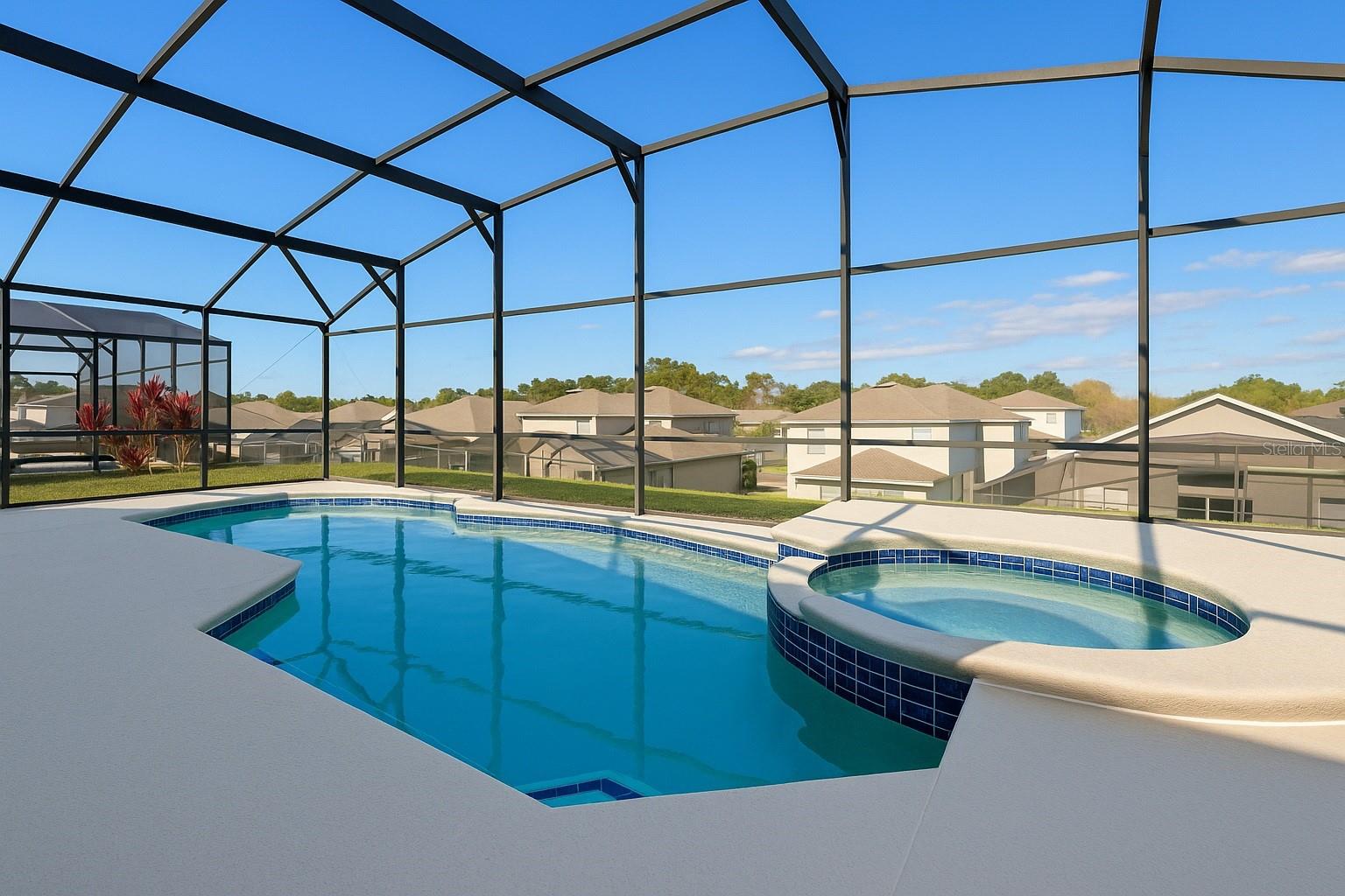 Investor Opportunity! Seller Offering Up to *** $5,000 *** Toward Closing Costs—Boost Your ROI and Secure a Profitable Property with Less Upfront Cash! *** All New Roof ***. Nestled in the heart of the highly sought-after Emerald Island Resort, this stunning Cape San Blas model offers a compelling blend of comfort, style, and resort-style amenities. Surrounded by lush conservation areas, this meticulously maintained community provides a serene and picturesque setting while being just minutes away from world-class attractions, dining, and entertainment. This exceptional villa is offered fully furnished and is in impeccable condition, making it completely move-in ready. Designed with both relaxation and functionality in mind, the spacious layout boasts five beautifully appointed bedrooms and three elegant bathrooms featuring cultured marble vanities (this model includes the optional fifth bathroom for added convenience). With over 1,950 square feet of air-conditioned living space, this home is perfect for families, vacationers, or investors looking for a prime income-generating property. A brand-new architectural shingle roof was expertly installed in February 2025, enhancing the home’s durability, weather resistance, and curb appeal for years to come. Step outside onto the expansive pool deck and embrace Florida’s year-round sunshine. The private, heated swimming pool invites you to take a refreshing dip, while the full-width safety fence ensures peace of mind for families. Unwind in the luxurious in-ground hot tub or lounge on the sun-drenched patio, ideal for entertaining or quiet relaxation. Beyond the villa, Emerald Island Resort offers an impressive array of top-tier amenities, making it more than just a community—it’s a lifestyle destination. The grand clubhouse features a sparkling pool, rejuvenating hot tub, sauna, state-of-the-art fitness center, cyber café, and a vibrant video arcade. Outdoor enthusiasts will appreciate the Tiki bar on the communal pool deck, multiple playgrounds for the younger ones, a sand volleyball court, a professionally maintained tennis center, and a scenic nature trail perfect for morning strolls or evening walks. With 24-hour gated security, beautifully landscaped grounds, and a prime location near Orlando’s premier attractions, this exquisite home presents an incredible opportunity. Whether you’re seeking a primary residence, a second home, or a lucrative vacation rental, this Cape San Blas model is a rare find that perfectly balances luxury, convenience, and investment potential. Don't miss your chance to own a piece of paradise—schedule your private tour today and experience the exceptional lifestyle that awaits you at Emerald Island Resort!