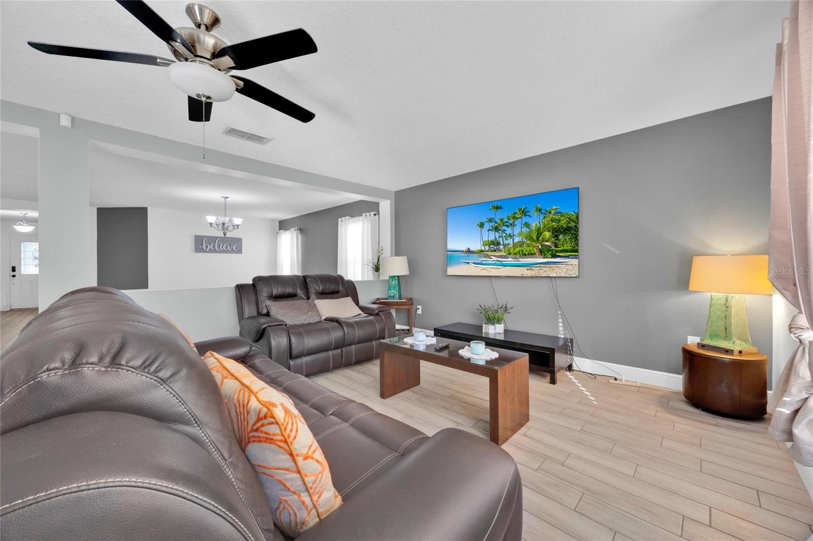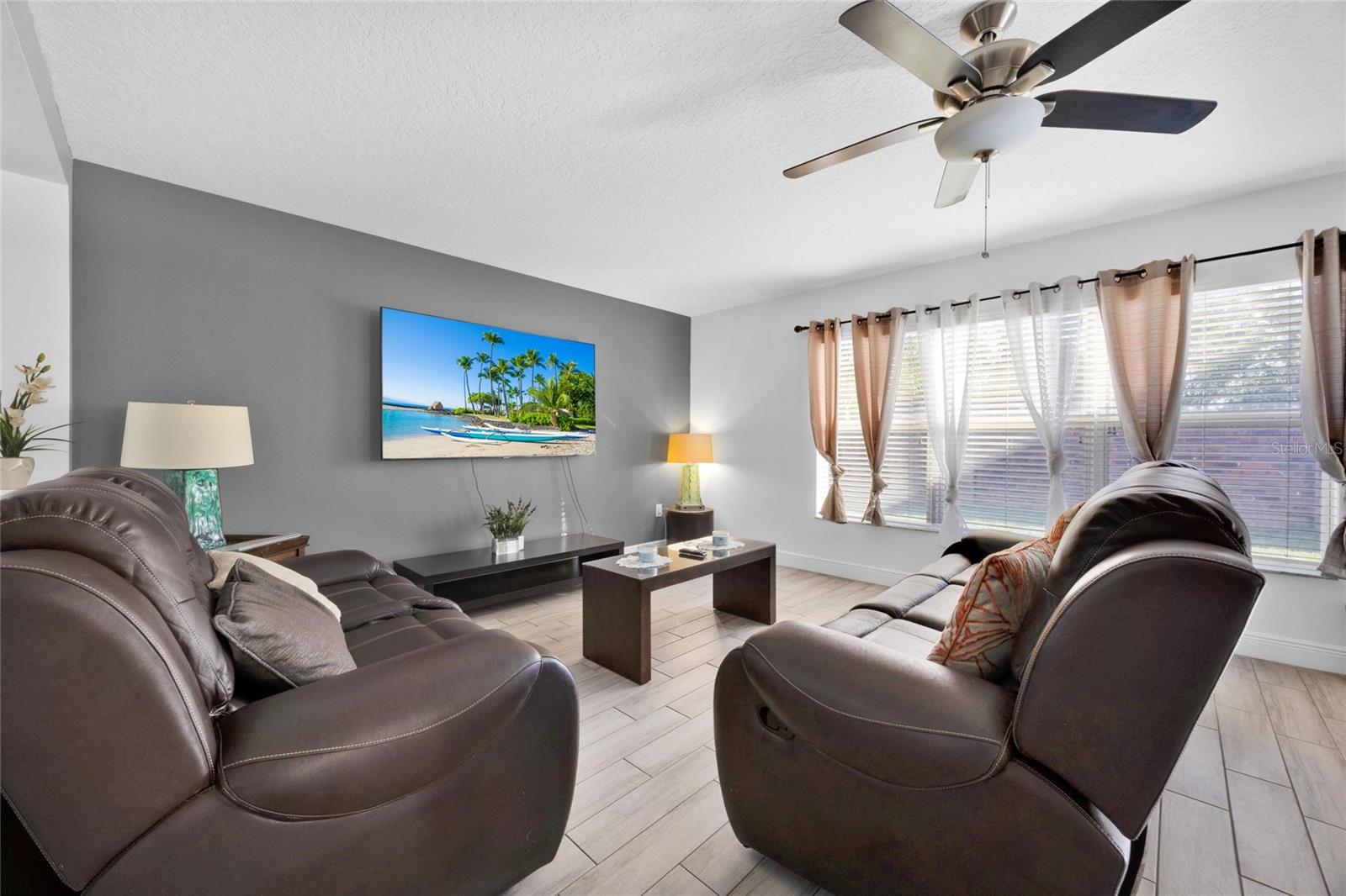 Beautiful single-story home in Hammock Trails featuring a NEW ROOF & WATER SOFTENER System Included in This spacious 3-bedroom, 2-bath home offers a 2-car garage, block construction, and tile flooring throughout. Enjoy a welcoming covered front entry and a screened-in rear porch perfect for relaxing. Inside, the open floor plan includes a large great room, and dedicated dining area. The kitchen features wood cabinetry, solid-surface countertops, a generous pantry, and a breakfast bar island. Convenient inside laundry room. Situated on a standard lot with mature landscaping. Community amenities include two parks/playgrounds, a refreshing community pool with cabana, and a soccer field. Conveniently located near schools, shopping, dining, major highways, and minutes from world-famous theme parks. Enjoy peaceful residential living with easy access to everything in Kissimmee and near to the theme parks, Supermarkets, banks, restaurants, and more. Move-in ready — this home is a must-see!