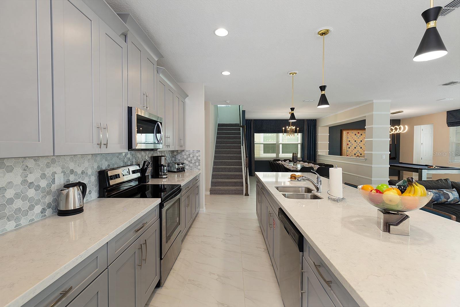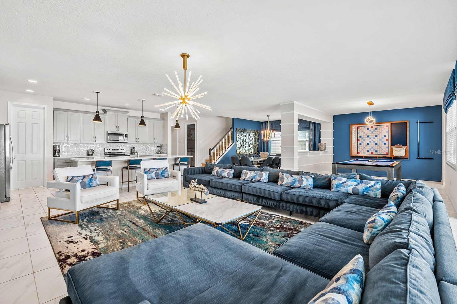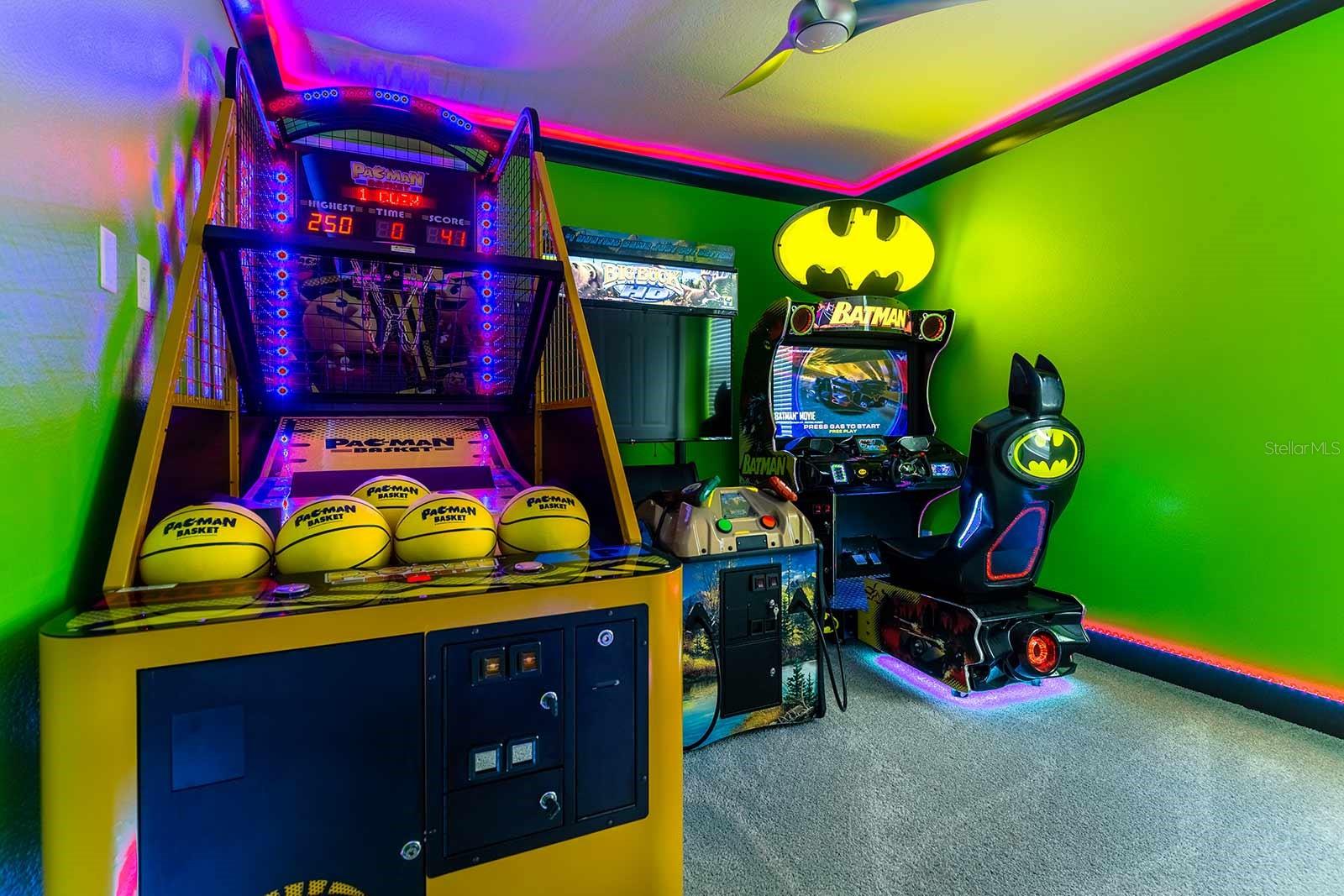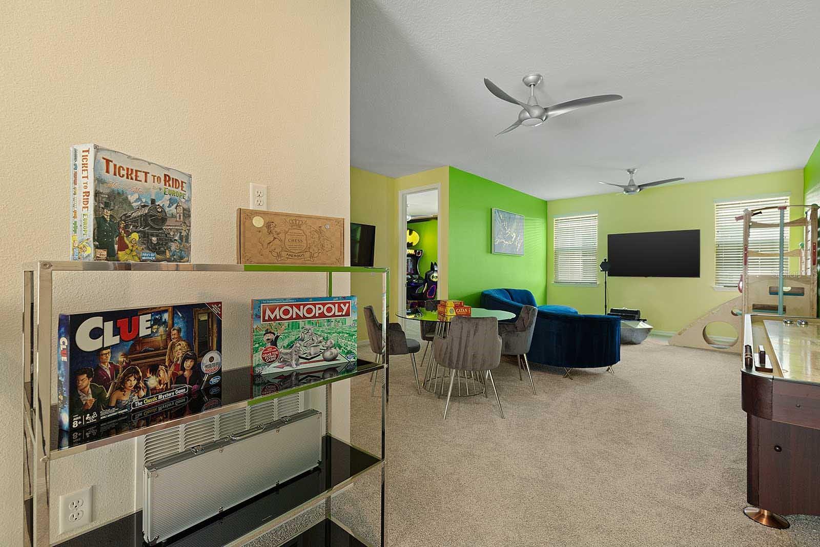 1636 Nassau Point Trail presents an extraordinary opportunity to acquire a fully furnished, 9-bed / 6.5-bath villa—the ultimate, high-performing asset for vacation home investors or a palatial retreat for large families in the guard-gated Solara Resort. This property is meticulously designed for maximum appeal and non-stop entertainment, featuring incredible interior spaces including immersive themed bedrooms like the Dinosaur-themed room with jungle art and the epic Superhero-themed room, both featuring bunk beds. The entertainment continues with a main-floor private, cinematic theater room featuring 10 ultra-comfy leather recliners, LED lighting, and high-end projector/sound systems, while the expansive upstairs loft effortlessly combines a thrilling game area complete with a karaoke system and a mini jungle gym, a dedicated arcade room featuring favorites like Pacman Basketball, Big Buck HD, and Batman, and additional living room games including a pool table and wall Scrabble. Gourmet meals are easily prepared in the kitchen, which features sleek white islands doubling as a breakfast bar with 5 stools, and served in the elegant indoor dining area with 14 chairs or at the 12-seat patio table overlooking the pool. Outside, a private, screened-in pool and spillover spa create a tranquil, tropical haven, complete with five comfy loungers, Giant Connect Four, and pool basketball, perfect for guests seeking relaxation and privacy after a day out. Located in a prime spot, this villa is just minutes from Disney World, Universal Studios, SeaWorld, and all of Central Florida's major attractions, dining hotspots, and shopping centers, guaranteeing its desirability and consistent rental income potential. Your guests will also benefit from exclusive access to the spectacular amenities of the Solara Resort, which include the exhilarating FlowRider Surf Simulator, a magnificent heated Grand Pool complete with private cabanas, the convenience of the Solstice Bar & Grill/full-service restaurant, and a fun-filled water complex with splash parks and waterslides. The community also features a dedicated Tween/Teen Hangout Center complete with a multi-sport simulator, a cutting-edge Fitness Center, and various sports facilities like basketball, soccer, and sand volleyball courts and walking trails. This property at Solara Resort is more than a home; it’s a complete luxury lifestyle package and a smart, low-maintenance, turnkey investment in the heart of Orlando's vacation market, available with the option to convey all existing future bookings to the new owner for immediate income, and the seamless ability to retain the highly-rated Villatel property management service (the current Superhost) in place. Averaging over $115,000 every year since 2021 in rental income.
