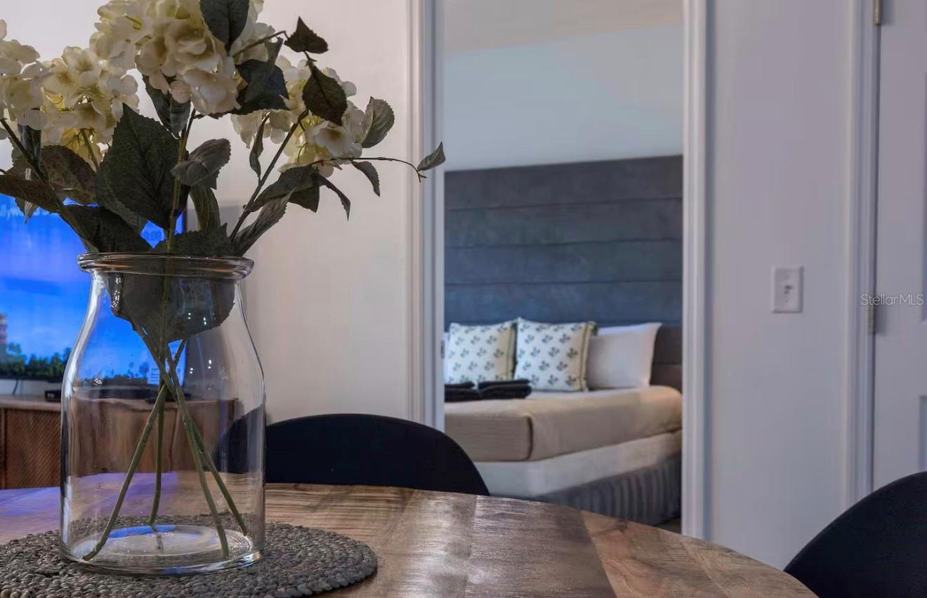 This beautifully maintained, move-in ready two-story townhouse . The home features 3 bedrooms and 2 full bathrooms in approximately 1,300 square feet of living space and was built in 2018. Inside, you’ll find an open-concept layout that lets light fill the living and dining areas, creating a warm and welcoming atmosphere. The modern kitchen includes granite countertops, stainless steel appliances, and a breakfast bar that overlooks the dining and living space — perfect for everyday living or hosting guests. The primary suite is on the first floor, offering convenience and privacy with its own en-suite bathroom, dual vanity sinks, and a walk-in closet. Upstairs, there are two additional bedrooms that share a full bathroom — ideal for family members, guests, or rental occupants. The townhouse is being sold fully furnished, making it turnkey ready for immediate living or short-term rental use (Airbnb/Vrbo), which has historically enjoyed a high occupancy rate. West Lucaya Village is a gated community with a range of amenities that enhance Florida living, including: Clubhouse Fitness center Resort-style pool Security and maintenance services through the HOA The community is conveniently located near major highways, shopping centers, restaurants, and popular theme parks like Walt Disney World, Universal Orlando, and SeaWorld, making it attractive for both homeowners and vacation-rental investors. This location combines quiet residential comfort with easy access to the best of Central Florida entertainment and convenience.