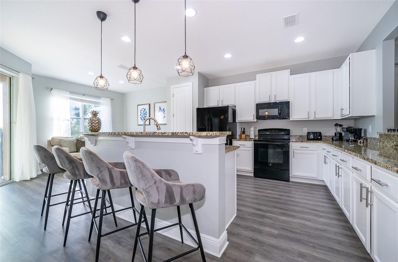 Priced to Sell! Don’t miss this incredible opportunity to own a Fully Furnished and Remodeled Pool Home in a sought-after Encore Resort by Reunion West, near Orlando’s top attractions! Whether you’re looking for a Vacation Home/Investment Opportunity, or Worry-Free Resort Style living, this home is perfect. Monthly Dues include 24/7 Security, Pest Control, Fiber Internet/Cable, Lawn Care, Pool Care (Optional), and more. Reunion West owners also have access to many Reunion East Amenities which include Multiple Pools, Horse Stables, Gym and Wellness Center, Game Rooms, etc. Step inside this spacious property and you'll immediately be greeted by over 2900 sq. ft. of living space with new LVP Flooring. Out back you have a Covered Patio and a Large Paved deck around the Pool, perfect for enjoying Florida sunshine. Private Pool can be heated with a New Natural Gas Pool Heater (Jandy 2024). A Half-Bath is conveniently located near the pool. Large Backyard has plenty of space for outdoor activities, Gazebo, etc. On the main floor you will find a Living Room with Built-in Electric Fireplace, Huge Kitchen with lots of counter space, Dinette, Dining Room, and a Laundry Room (all appliances stay!) A Bedroom and a Full Bathroom are also located on the first floor. Primary Bedroom is on the Second Floor and has an En-Suite Bathroom with Double Sinks, Walk-in Shower, Garden Bath, and Large Walk-in Closet. On the Second Floor you also have Two more Bedrooms with Private Bathrooms, and Two Rooms that share a Full bathroom. So why wait? Come see for yourself and experience the ultimate in luxury living at Encore Resort! Reunion West / ENCORE is one of Orlando's Premiere Vacation home communities featuring an Aqua Park, Fitness Center, Tennis, Basketball, Volleyball, Soccer Field, Event Spaces, Bike Rentals, Dining, and SO MUCH MORE! NOTE: Pool Heater – 2024, Water Heater – 2023, LVP Flooring – 2023, Fresh Interior Paint.