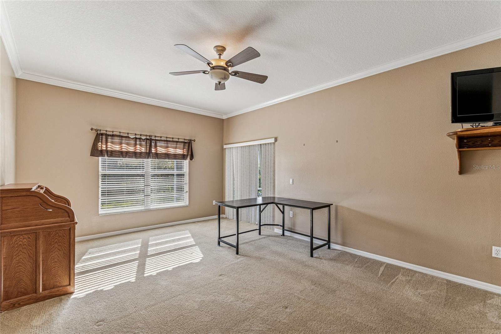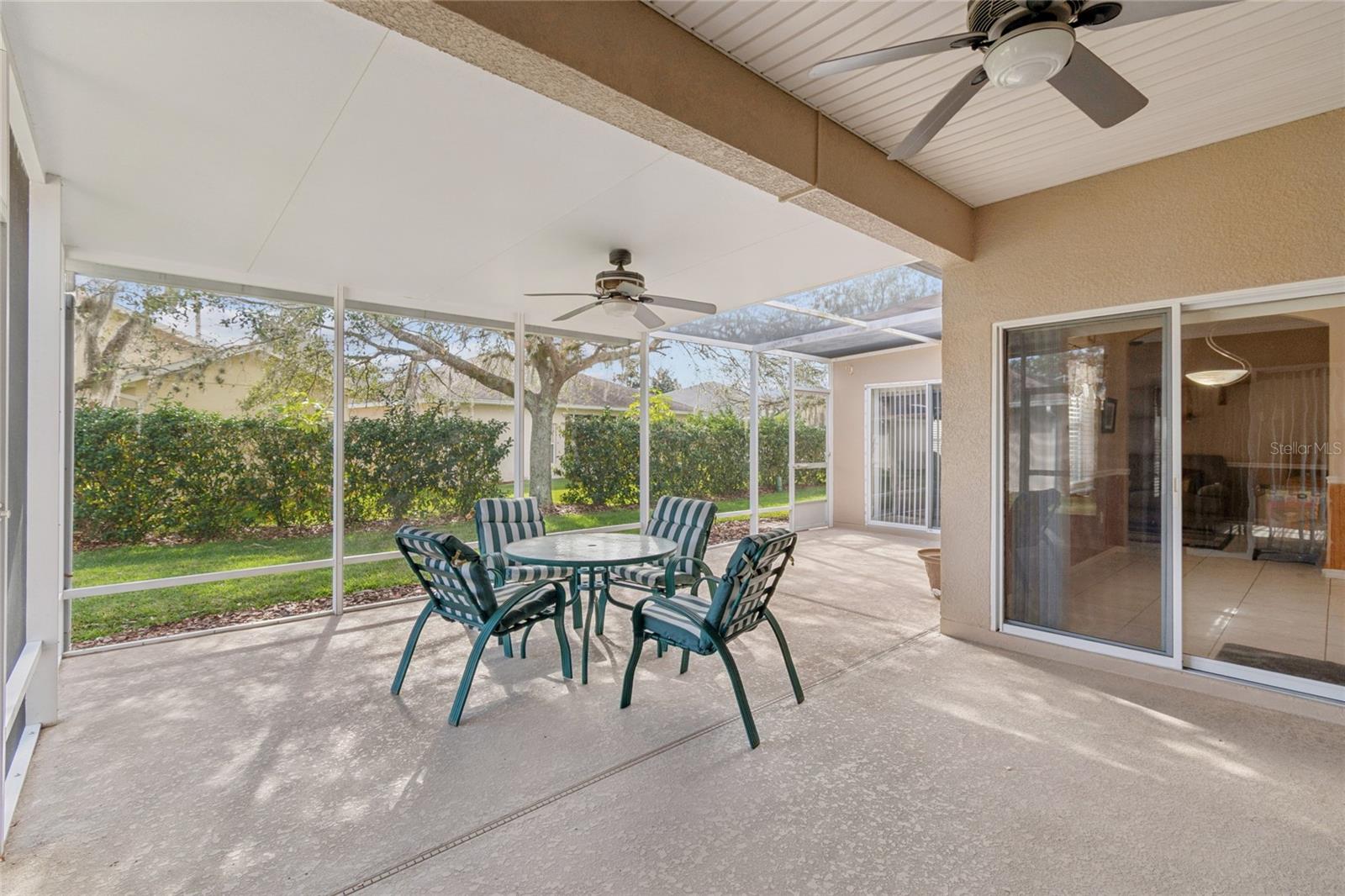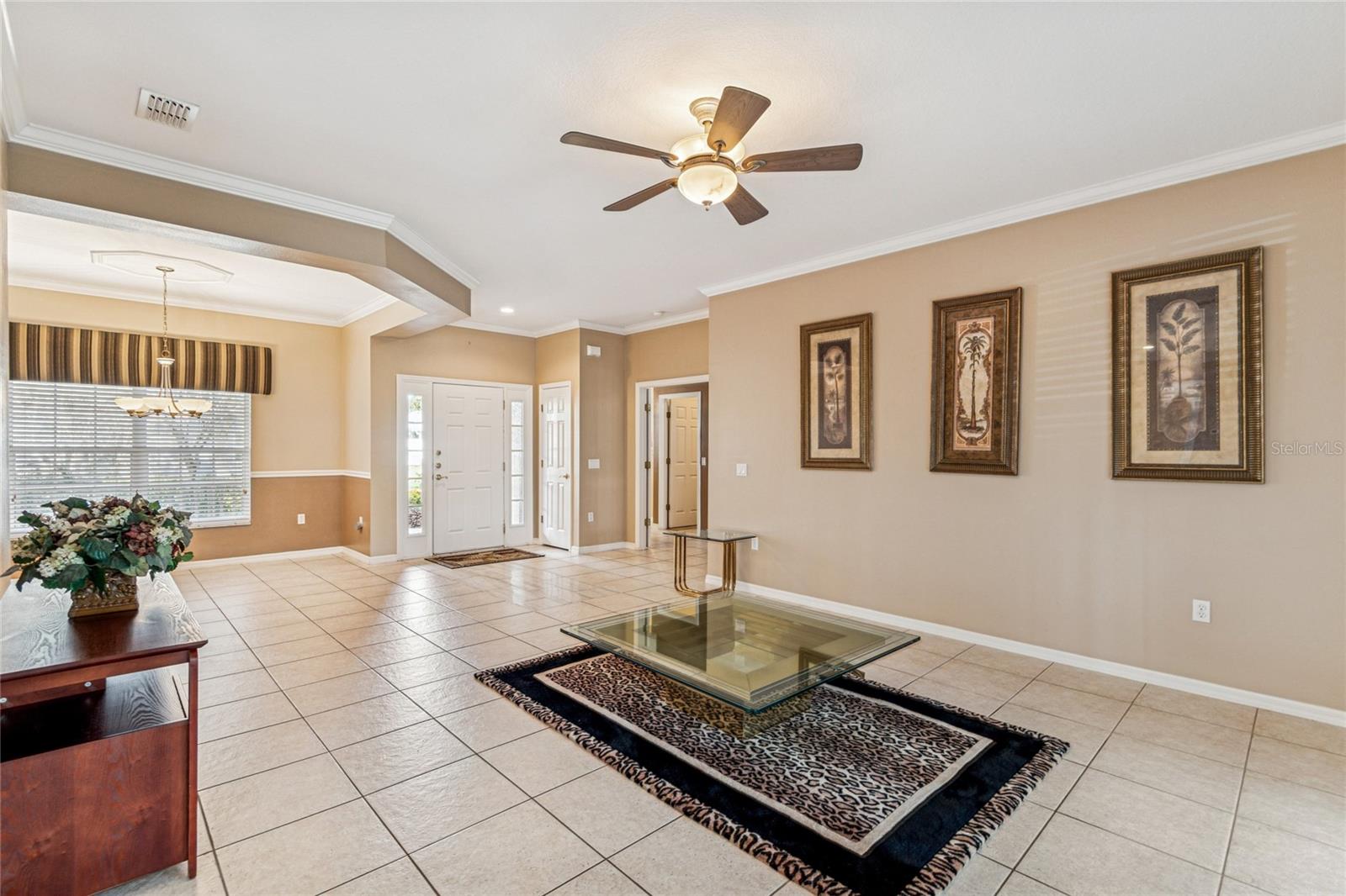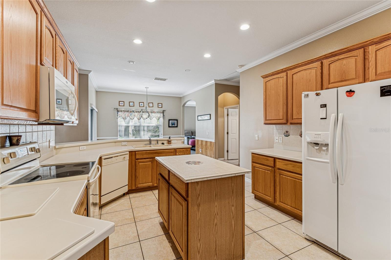 Located in a quiet neighborhood this popular Carnegie model offers comfort, style, and thoughtful design. Crown molding throughout adds a refined touch, while the split-bedroom floor plan provides privacy with two bedrooms on opposite sides of the home. The spacious primary suite features two walk-in closets and a well-appointed en-suite bath. The kitchen is both functional and inviting with maple cabinets with pull-out shelves, Corian countertops, tile backsplash, and a cozy eat-in area accented with wainscoting. Chair rail detailing enhances the dining room and family room, adding classic character. Enjoy Florida living on the extended lanai with covered ceilings, perfect for relaxing or entertaining. Additional highlights include two full bathrooms, a new roof (2016), and new HVAC system (2020) for peace of mind. A wonderful opportunity to own a well-maintained home in a desirable, amenity-rich location. Ltd. Home Warranty transfers with ownership.Solivita is a premier 55+ community, offering residents an exceptional, resort-style lifestyle with outstanding amenities. Enjoy a state-of-the-art fitness center, dance and aerobics studios, and an impressive variety of recreational options including 14 heated swimming pools, two heated spas, tennis courts, pickleball courts, shuffleboard, bocce ball, billiards, and an art gallery. The community also features three on-site restaurants and two championship 18-hole golf courses. With a full calendar of activities, clubs, and events, there is always something new to explore and enjoy. This home is conveniently located near a hospital and medical office complex, shopping and dining, and a new shopping center featuring Sprouts, Outback, and other popular retailers, offering the perfect balance of privacy, convenience, and an active lifestyle.