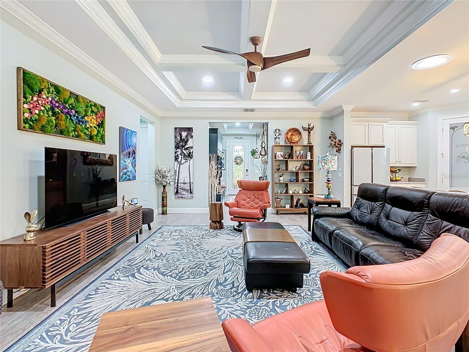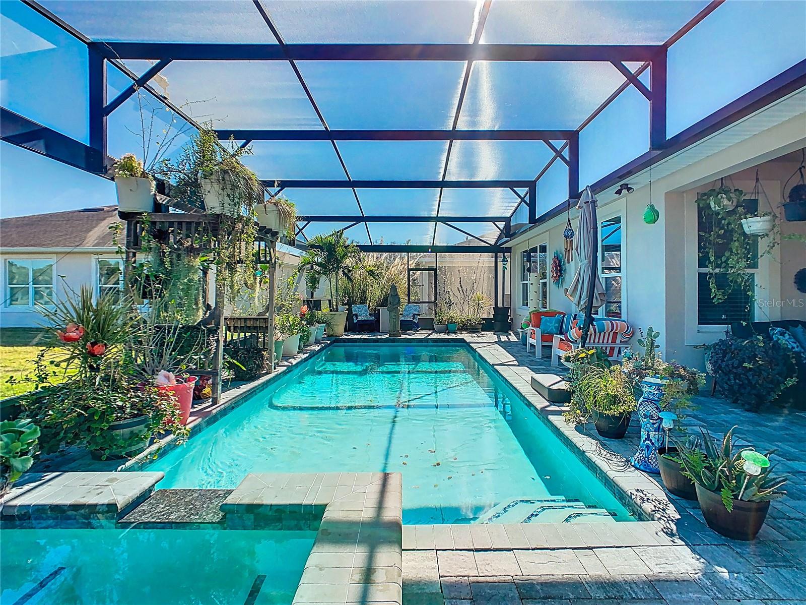 Exquisite WATERVIEW POOL HOME**SIENA** in Solivita. Step into pure LUXURY and experience the pinnacle of elegance from the moment you enter. This breathtaking, ONE-OF-A-KIND residence. is meticulously crafted to impress and intentionally designed to deliver that coveted “WOW” factor that will leave every guest speechless. Built in 2016, this MASTERPIECE DREAM HOME blends modern sophistication with true peace of mind. Its OPEN-CONCEPT DESIGN highlights UPSCALE finishes and thoughtful UPGRADES throughout. Step through the door and unveil 2,427 sq. ft. of luxurious interior living (3,382 sq. ft. total area) Featuring THREE spacious bedrooms, TWO full bathrooms, a powder room, and a FLEX ROOM perfectly suited for a home office, craft room, or private GYM. Striking EXTERIOR STONE ACCENTS deliver an instant feeling of exclusivity. Beautifully UPGRADED LANDSCAPING, complete with a vibrant FLOWER BED and elegant CURBING AROUND THE HOUSE, enhances the home’s appeal. An expanded TWO-CAR GARAGE plus a dedicated GOLF CART BAY. A grand hallway featuring a TRAY CEILING and striking leaded glass door establishes an atmosphere of elevated living. The CUSTOM ENTRY CABINET adds both beauty and convenience, serving as a perfect drop zone. Additional EXTERIOR LIGHTING enhances both curb appeal and nighttime visibility. The GOURMET KITCHEN highlights an OPEN LAYOUT with a BREAKFAST BAR, SOFT-CLOSE CABINETRY, UNDER-CABINET LIGHTING, stylish PENDANT LIGHTS, An Insta-Hot system newly installed, and a spacious WALK-IN PANTRY with newly designed and installed PANTRY CABINETS. Versatile BREAKFAST NOOK offers the perfect spot for a wine bar or workspace. Premium STAINLESS-STEEL appliances elevate the space, complemented by a NEW BOSCH DISHWASHER, GE CAFE Profile refrigerator, TOP OF THE LINE GE microwave, and 2024 INDUCTION COOKTOP. A beautifully added BACKSPLASH enhances both the kitchen and the island. The adjoining dining room comfortably accommodates a six- to eight-person table. The OWNER’S SUITE offers a spacious private retreat, featuring TWO WALK-IN CLOSETS, an adjoining FLEX ROOM ideal for an office, den, study, or craft space, and an elegant EN-SUITE BATHROOM with DUAL SINKS, a FRAMELESS GLASS WALK-IN SHOWER, and a built-in bench for added comfort. All bedrooms received updated paint, new flooring, and custom closet organizers in 2024, along with updated light fixtures throughout. Every bathroom has been enhanced with newly refreshed cabinetry, creating a modern, unified feel. The resort-style POOL and SPA, set within the EXTENDED, COVERED and SCREENED LANAI with inviting spaces for both relaxation and entertaining, complete with ceiling fans. CENTRAL VACUUM system. The LAUNDRY ROOM shines with BRAND NEW-2024 APPLIANCES and CUSTOM-BUILT CABINETRY. A TOP-TIER LENNOX AIR HANDLER was installed in February 2024, ensuring comfort and efficiency. The property also boasts 16 **PAID-OFF** SOLAR PANELS, two solar tube lights, a NEW 2024 WATER SOFTENER, and a FULL INTERIOR REPAINT completed in 2024. All light switches in the living room, hallway, and kitchen have been upgraded to dimmable switches for enhanced ambiance and control. Both primary bedroom closets were elevated with tile backsplash, upgraded lighting, and elegant chandeliers. The laundry room also features a new tile backsplash for a refined, cohesive look. Additional upgrades include a smart lock at the front entry, a Ring camera, and new gutters and downspouts installed in 2024.