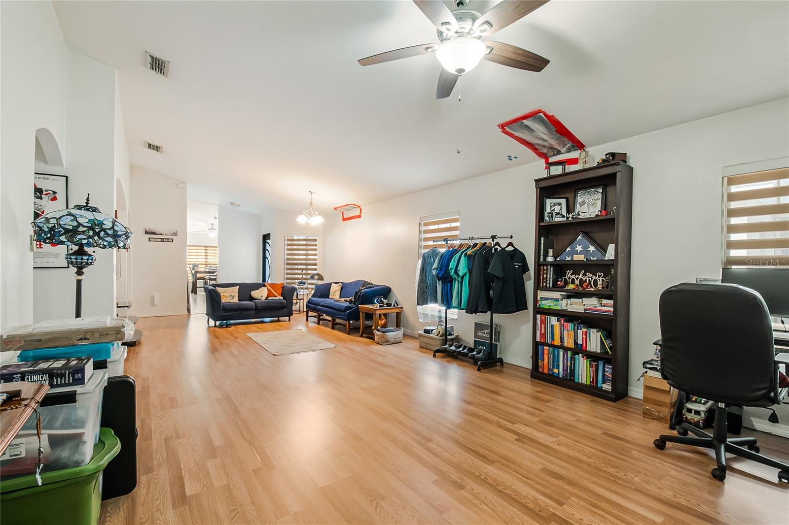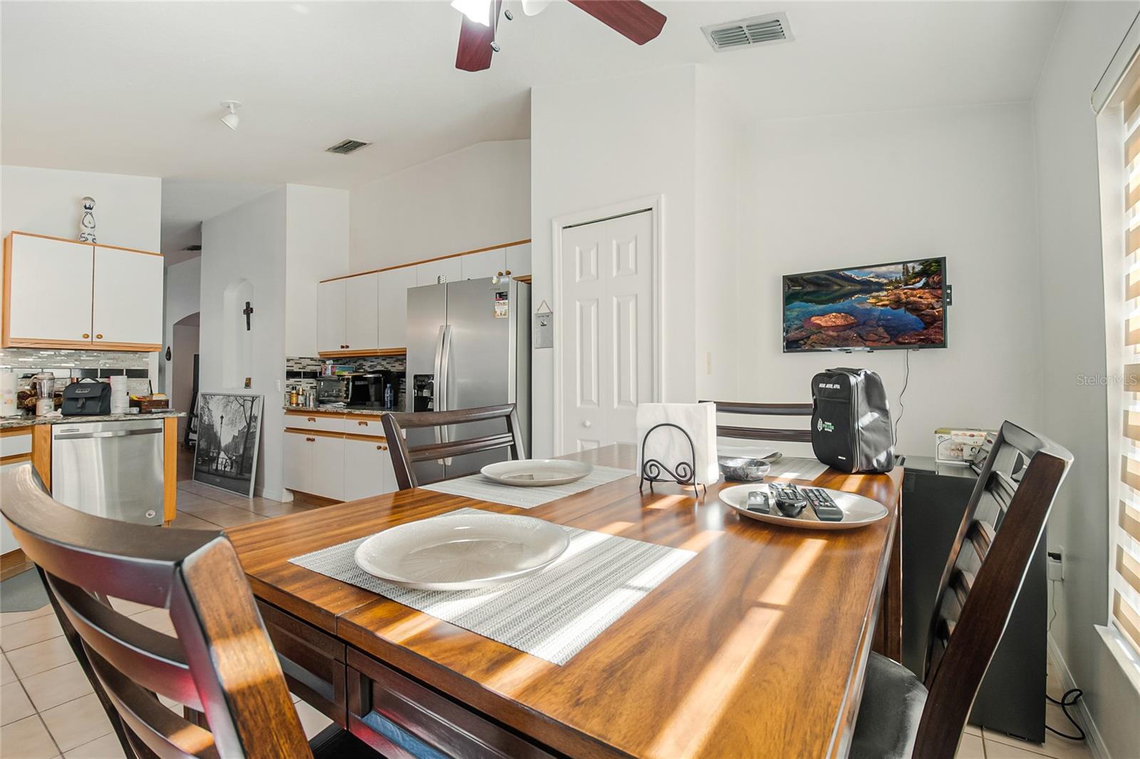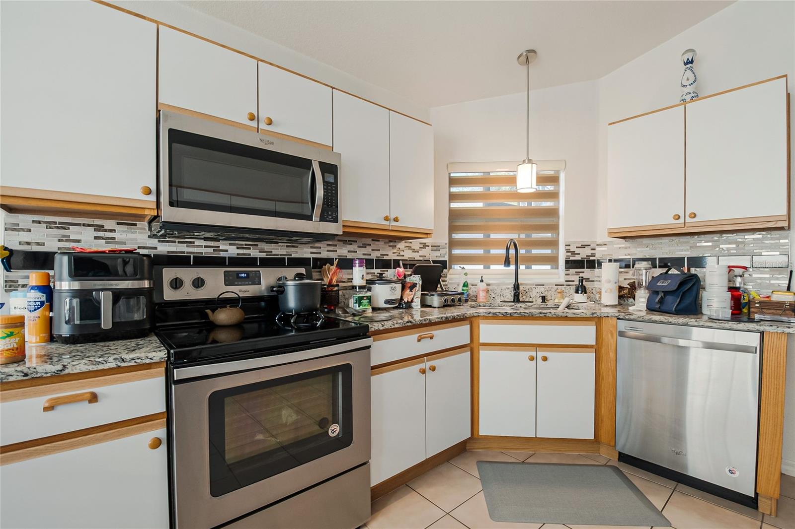 Welcome to this beautiful Cabernet model located on a quiet street in the highly sought-after Solivita 55+ community. This light-filled, open floor plan features vaulted ceilings and a smart design that lives larger than expected. Step through the screened front entry into a home with no carpet throughout—ceramic tile in wet areas and oak laminate flooring in the main living spaces. The upgraded kitchen showcases granite countertops, stainless steel appliances, glass tile backsplash, enhanced lighting, and new sink and faucet—perfect for everyday living and entertaining. Both bathrooms feature granite countertops, with the primary bath offering a glass-enclosed shower. Enjoy Florida living year-round in the extended all-season room, plus a vinyl-screened lanai off the primary bedroom. A 1.5-car garage provides space for your vehicle and golf cart. Major improvements include a new roof to be installed February 2026, AC replaced March 2023, all interior and exterior doors replaced, new garage door opener, camera doorbell, and updated faucets. Blue Stream fiber-optic internet is included in the HOA. Solivita is an award-winning community, ranked among the Top 6 55+ communities nationwide, offering 14+ pools, restaurants, tennis courts, over 200 clubs, and a vibrant lifestyle. Move-in ready, loaded with upgrades, and an exceptional value—schedule your private showing today.