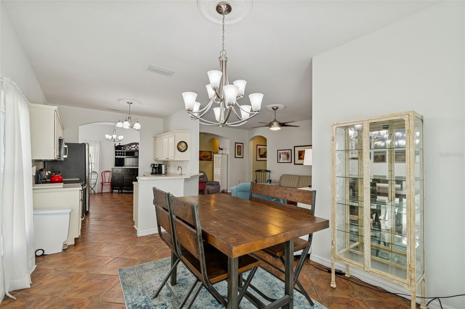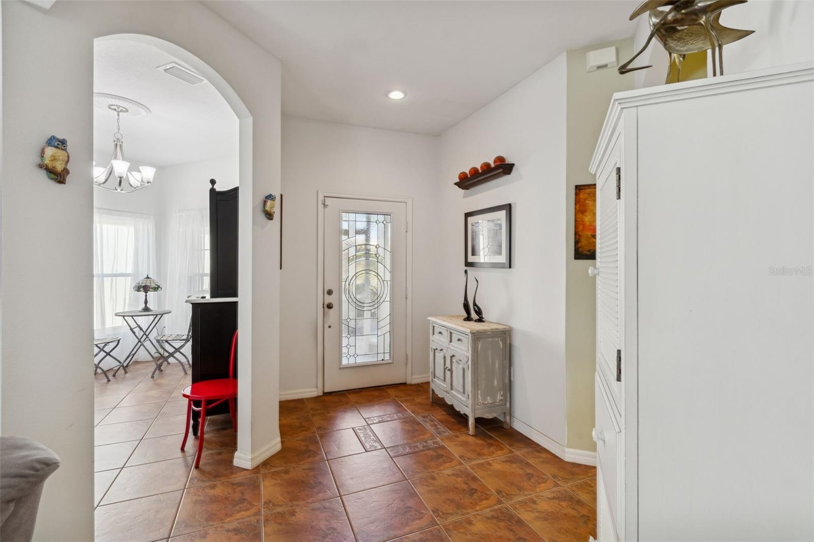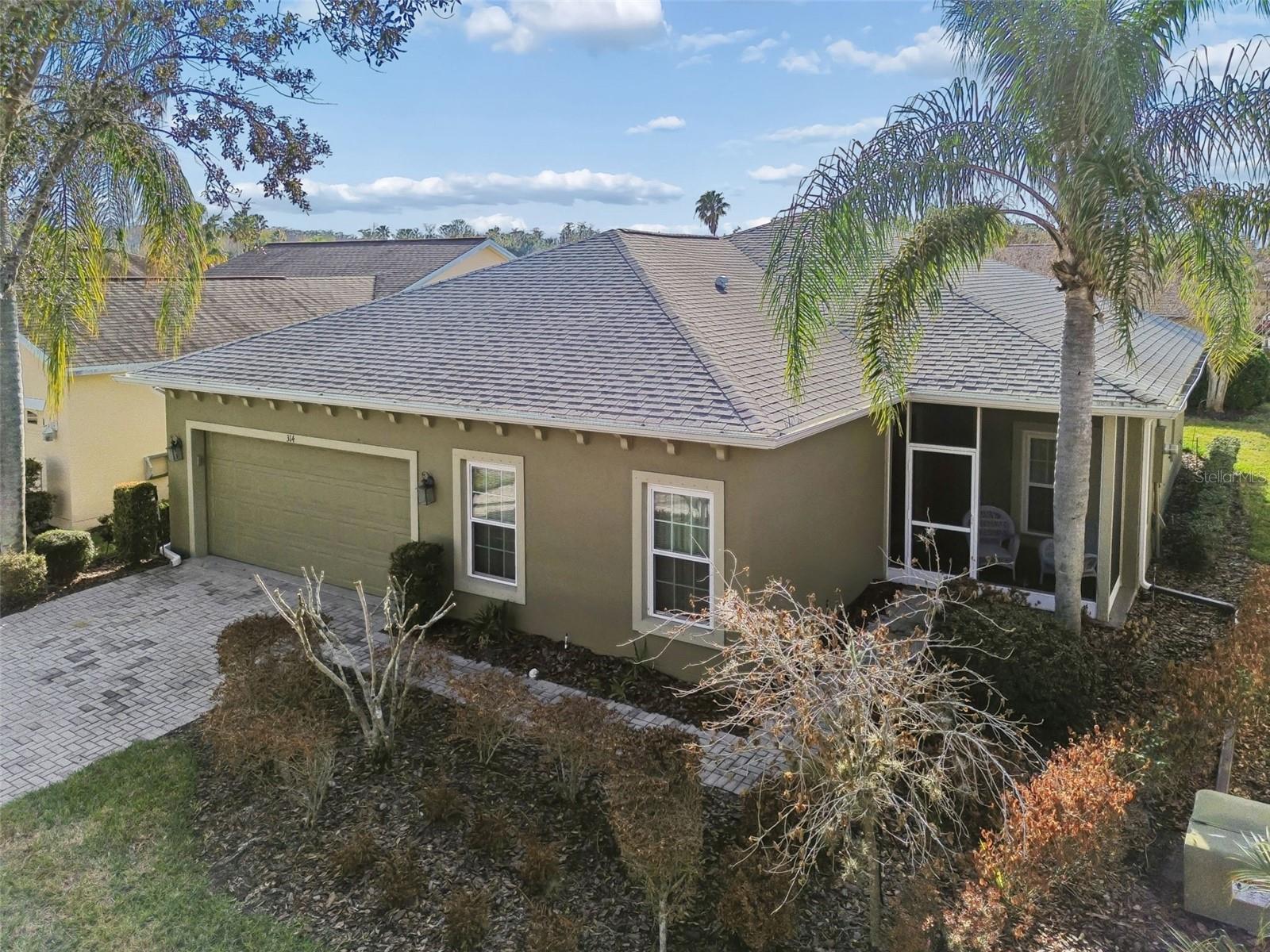 Beautifully maintained Harmony Model offering 2 bedrooms, 2 bathrooms, plus a dining room and den/study, ideally located just moments from the Village Center amenities. This inviting home welcomes you with a screened front porch and elegant leaded glass entry door, setting the tone for the quality and comfort found throughout. Step inside to a bright, open living area featuring diagonal ceramic tile throughout the entire home—NO carpet anywhere—for a clean, modern look and easy maintenance. The living room is enhanced with a ceiling fan and sliding glass doors that open to the screened lanai, creating a seamless indoor-outdoor flow that’s perfect for relaxing or entertaining. The completely remodeled kitchen (2023) is a standout, boasting a stylish tile backsplash, abundant cabinetry, generous counter space, and a cozy breakfast nook—ideal for casual dining or morning coffee. A formal dining room provides additional space for hosting family and friends. The primary suite is a true retreat, featuring a comfortable sitting area, private sliders to the lanai, a large walk-in closet, and an en-suite bathroom with dual vanities, a garden tub, and a walk-in shower with built-in seat. The guest bedroom and guest bathroom are thoughtfully positioned on the opposite side of the home, offering privacy for visitors. A versatile den/study includes a built-in desk and shelving, along with a Murphy bed, making it perfect as a home office, hobby room, or additional guest space. Step outside to the screened lanai and enjoy peaceful outdoor living, with a backyard large enough to add a fence—ideal for furry family members. Additional highlights include a 2-car garage with ample storage and a dedicated plug for an electric golf cart (golf cart available for purchase). Major updates provide peace of mind, including Roof (2017), HVAC (2023), Water Heater (2024), and a new refrigerator. This move-in-ready home combines thoughtful upgrades, flexible living spaces, and a prime location close to amenities—perfect for enjoying an active and relaxed lifestyle. Solivita is a premier 55+ community, offering residents an exceptional lifestyle with state-of-the-art amenities. Enjoy a fully equipped fitness center, dance and aerobics studios, and an impressive array of recreational options including 14 heated swimming pools, two heated spas, tennis courts, pickleball courts, shuffleboard, bocce ball, billiards, and an art gallery. The community also features three on-site restaurants and two championship 18-hole golf courses. With a full calendar of activities and events, there’s always something new to explore and enjoy. This home is conveniently located near a hospital and medical office complex, and shopping center. See the Floor Plan and the Shopping Center Map under Public Attachments.