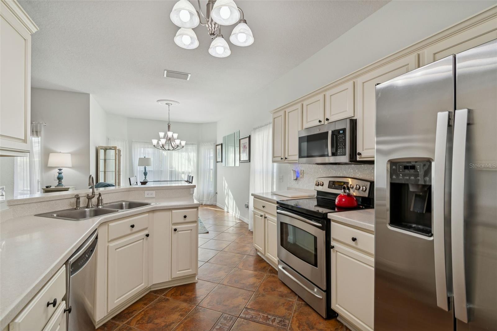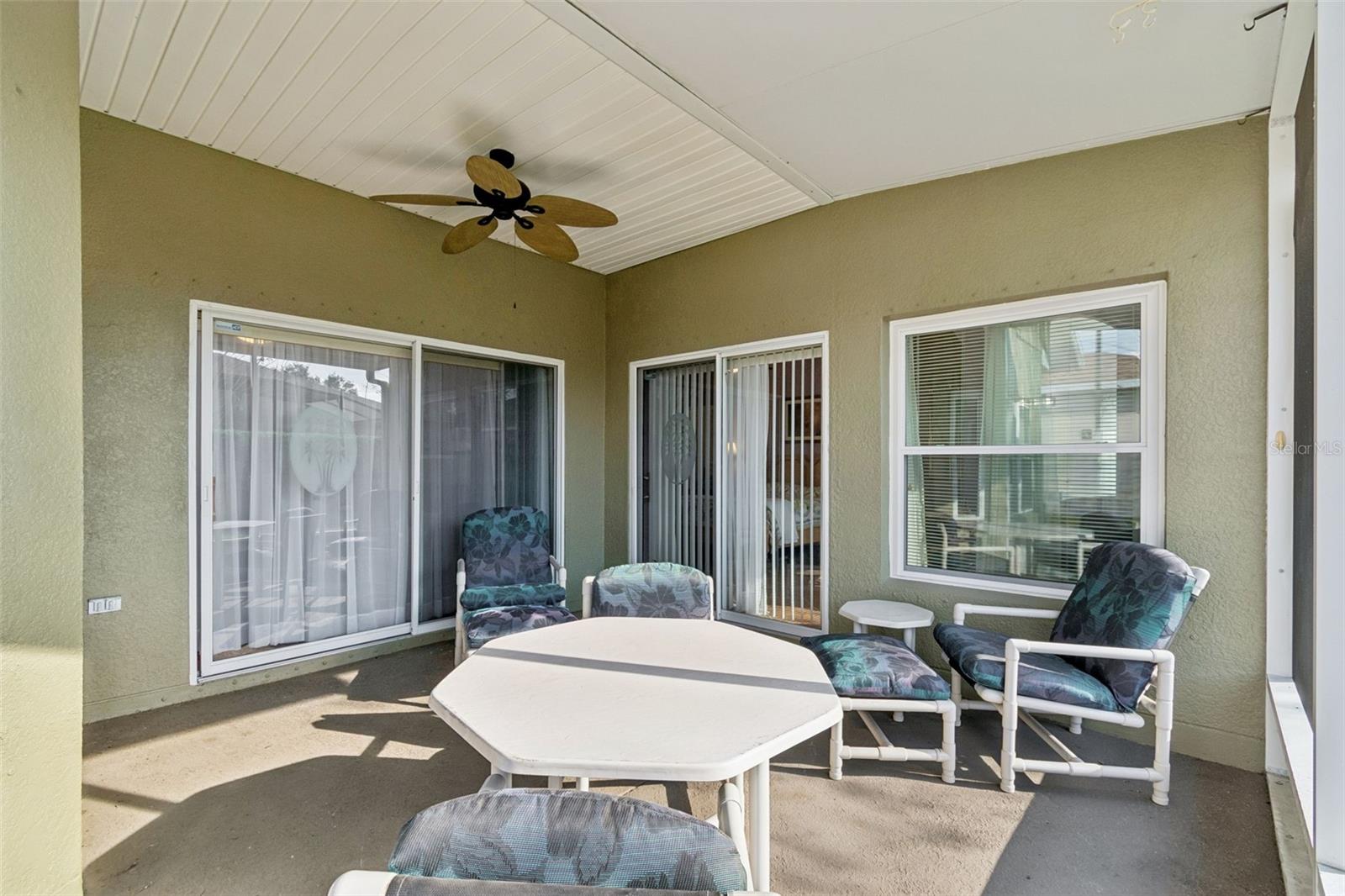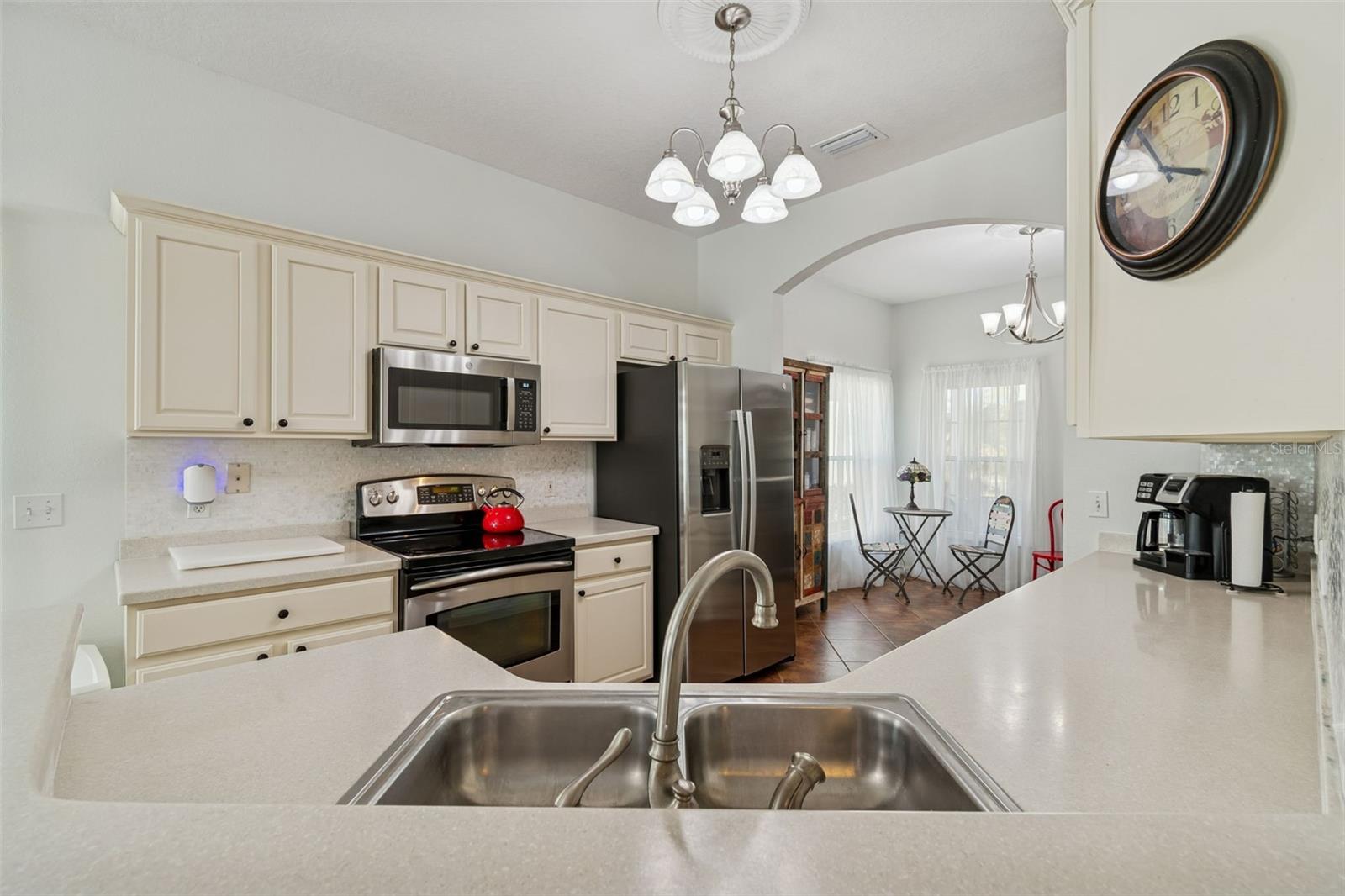 Beautifully maintained Harmony Model offering 2 bedrooms, 2 bathrooms, plus a dining room and den/study, ideally located just moments from the Village Center amenities. This inviting home welcomes you with a screened front porch and elegant leaded glass entry door, setting the tone for the quality and comfort found throughout. Step inside to a bright, open living area featuring diagonal ceramic tile throughout the entire home—NO carpet anywhere—for a clean, modern look and easy maintenance. The living room is enhanced with a ceiling fan and sliding glass doors that open to the screened lanai, creating a seamless indoor-outdoor flow that’s perfect for relaxing or entertaining. The completely remodeled kitchen (2023) is a standout, boasting a stylish tile backsplash, abundant cabinetry, generous counter space, and a cozy breakfast nook—ideal for casual dining or morning coffee. A formal dining room provides additional space for hosting family and friends. The primary suite is a true retreat, featuring a comfortable sitting area, private sliders to the lanai, a large walk-in closet, and an en-suite bathroom with dual vanities, a garden tub, and a walk-in shower with built-in seat. The guest bedroom and guest bathroom are thoughtfully positioned on the opposite side of the home, offering privacy for visitors. A versatile den/study includes a built-in desk and shelving, along with a Murphy bed, making it perfect as a home office, hobby room, or additional guest space. Step outside to the screened lanai and enjoy peaceful outdoor living, with a backyard large enough to add a fence—ideal for furry family members. Additional highlights include a 2-car garage with ample storage and a dedicated plug for an electric golf cart (golf cart available for purchase). Major updates provide peace of mind, including Roof (2017), HVAC (2023), Water Heater (2024), and a new refrigerator. This move-in-ready home combines thoughtful upgrades, flexible living spaces, and a prime location close to amenities—perfect for enjoying an active and relaxed lifestyle. Solivita is a premier 55+ community, offering residents an exceptional lifestyle with state-of-the-art amenities. Enjoy a fully equipped fitness center, dance and aerobics studios, and an impressive array of recreational options including 14 heated swimming pools, two heated spas, tennis courts, pickleball courts, shuffleboard, bocce ball, billiards, and an art gallery. The community also features three on-site restaurants and two championship 18-hole golf courses. With a full calendar of activities and events, there’s always something new to explore and enjoy. This home is conveniently located near a hospital and medical office complex, and shopping center. See the Floor Plan and the Shopping Center Map under Public Attachments.