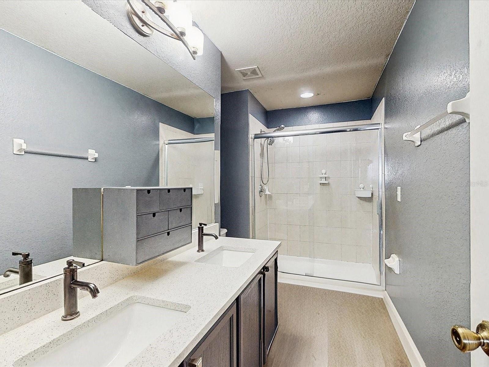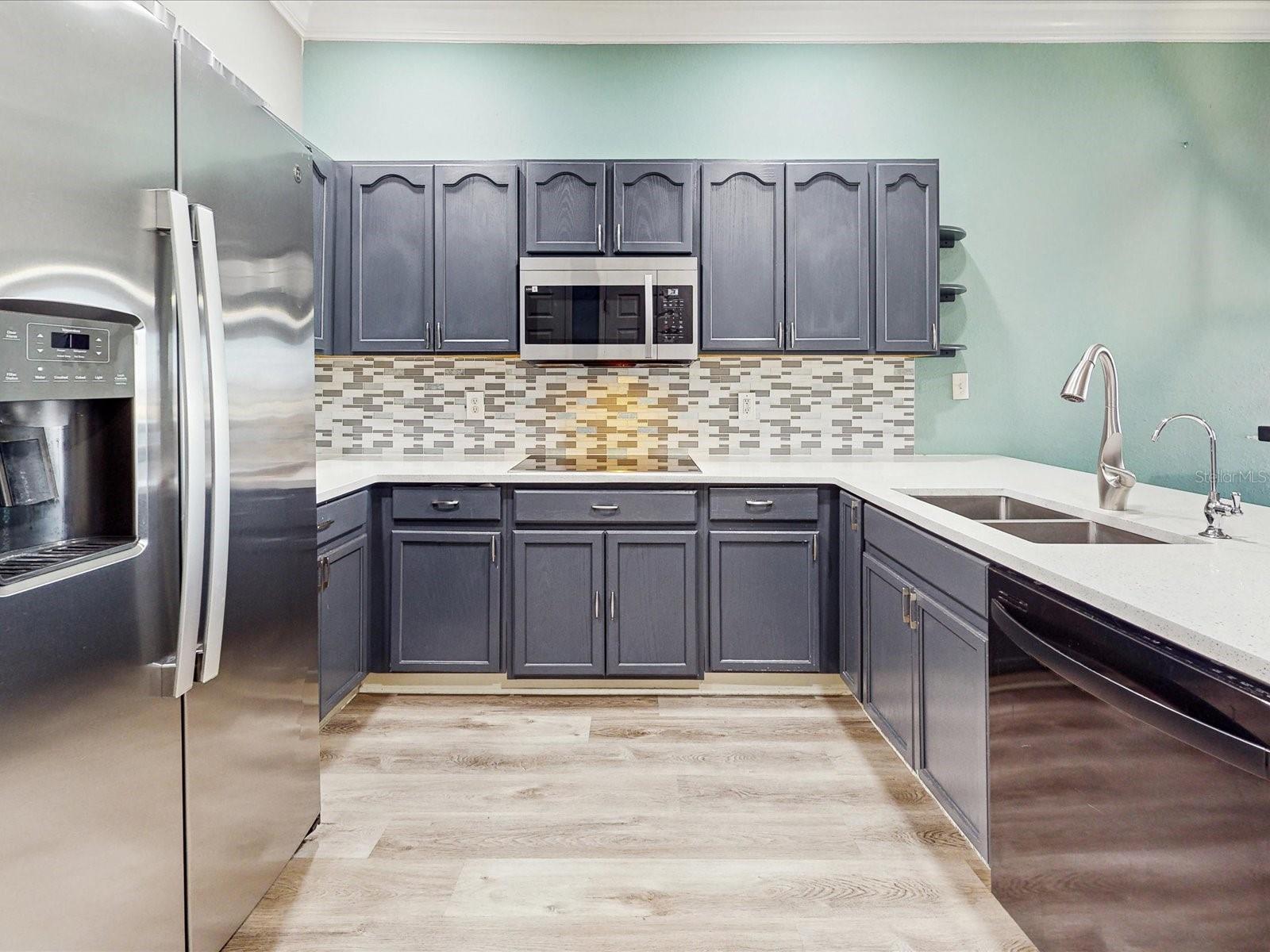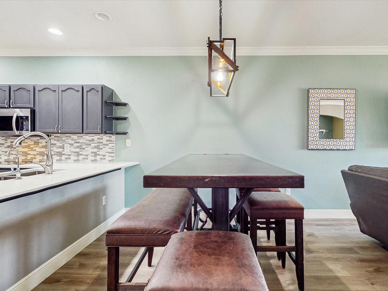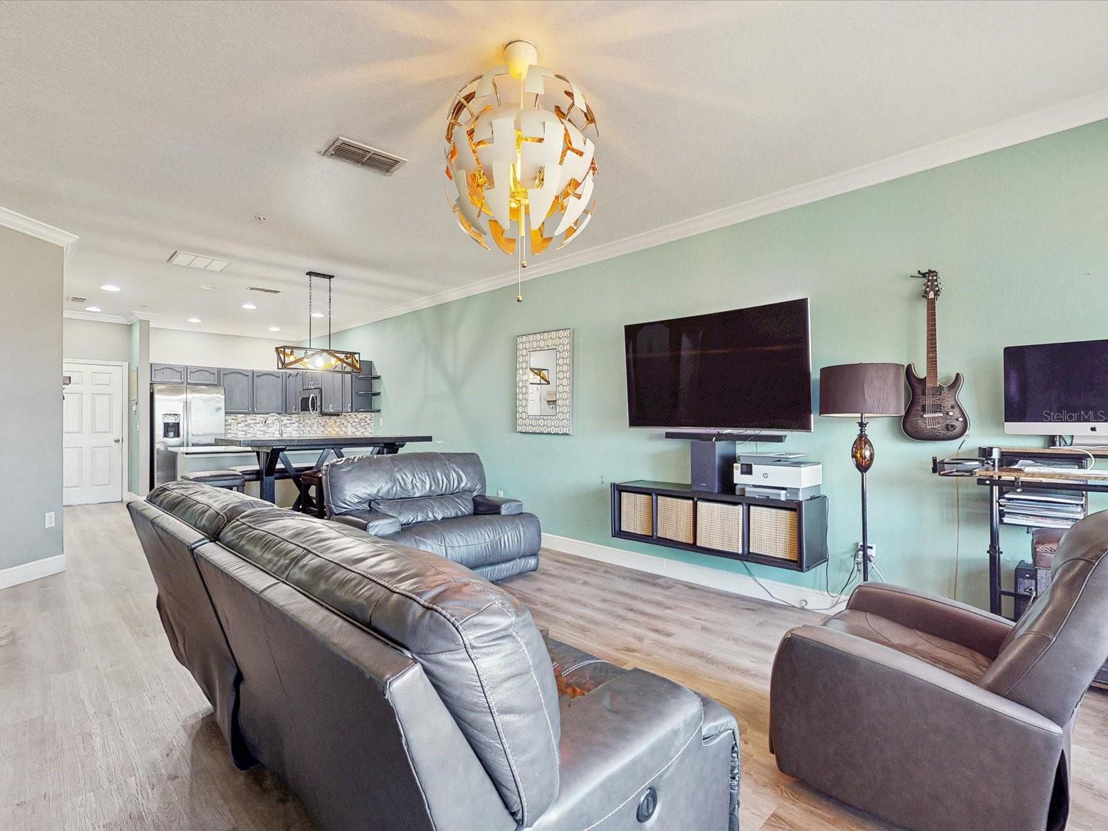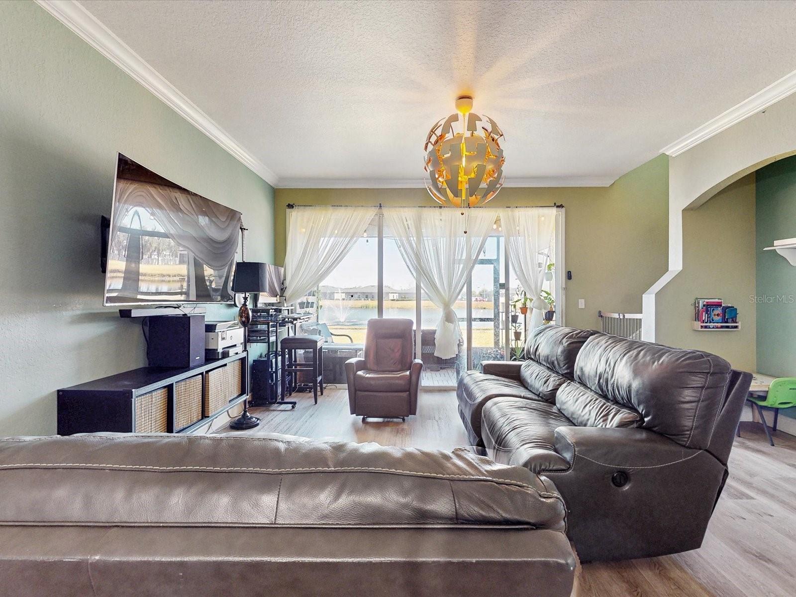 Why wait to build when this tremendous home is available now! Located near all of Florida’s major attractions such as the theme parks and major roads, to several shopping centers such as The Loop, and more! Feel at peace as this home is located in a gated community which also contains beautiful ponds, a children’s playground, and a community pool; so much to enjoy! Stepping into the wonderful home through that captivating red door, wind down the hallway to see the spacious family room, dining room, and the stunning kitchen! The kitchen is truly a beauty, having quartz countertops, stainless steel appliances, and dark color cabinets that stand out. The upgrades keep coming as this marvelous home has crown molding throughout several areas on the first floor including the master bedroom, laminated flooring throughout the whole house, and modern style bathrooms. Enjoy serenity by stepping onto the screen enclosed patio with renovated flooring and take in the luscious view of the lake behind the house. There is enough room for you and your family thanks to the spacious floor plan. Do not wait any longer, come make this home yours today!