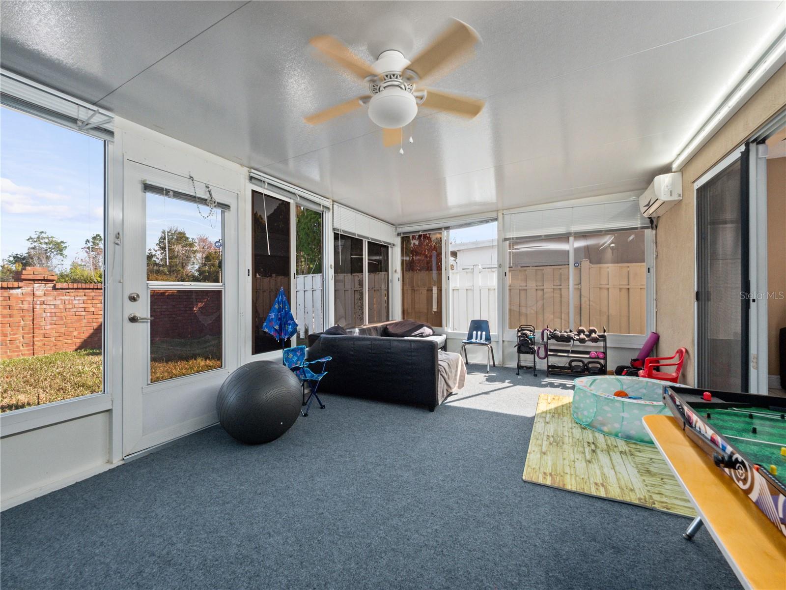 Welcome home!!! Spacious 4 bedrooms 2 bath home with open floor plan & fenced backyard. Large living/dining room combo features wood panel ceiling decor, plant shelf & Chandeliers. Kitchen has eat in space, breakfast bar over looks the family room with sliding doors that leads to your 24x12 enclosed Florida room with AC with attached 12x10 storage room. Primary bedroom features walk-in closet, Shower, garden bath, and dual sinks. Inside Laundry with washer and dryer included. New A/C (Jan 2026), New water heater (2025) Solar Panels (2023). Great location minutes to turnpike, shopping and restaurants. Less then 10 miles to Orlando airport and Lake Nona.