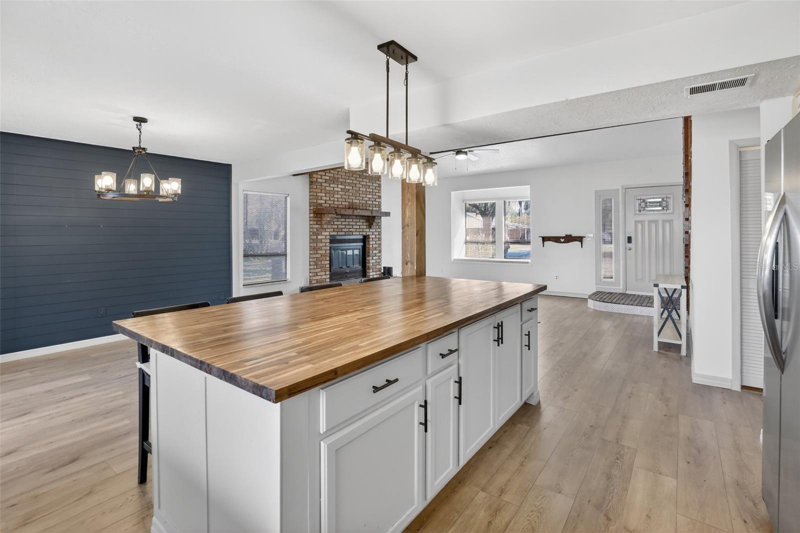 **** $5000 credit to Buyer with a Full Price Offer. No HOA! **** Such a Cute Charming Country-style home with 4 Bedrooms, 3 Full Bathrooms, a large yard and oversized circular driveway offering plenty of room for up to 7 vehicles and all of your Recreational Toys! – Boat, Jet skis, trailers and RV **** From the moment you enter the Home, you’re greeted by soaring Vaulted Ceilings with Exposed Wood Beams, a wooden Staircase & Catwalk Railing, and a traditional Brick Wood-Burning Fireplace that creates a warm, welcoming feel. Waterproof laminate wood flooring flows seamlessly throughout the entire first floor, continues up the staircase, and into the Second Primary Bedroom, creating a cohesive and stylish look. **** The Open Floorplan is designed for both everyday living and entertaining. The Kitchen is truly the Heart of the Home featuring the 98”x50” Butcher-block Island, Granite Countertops, Stainless Steel Appliances and large windows overlooking the Lanai & Backyard. Dark blue Ship-lap lines the walls in the Dining Area surrounding the Sliding glass doors that lead to the expansive screened lanai measuring 11’7” x 29’7”. Outside of the lanai is the oversized back yard, blending indoor and outdoor living beautifully, allowing you to enjoy the oversized backyard complete with a storage shed and plenty of room for a cookout, gardening, kickball or game of catch. **** The Primary Suite is a stylish retreat featuring decorative wall trim, ceiling fan and a sliding Barn Door that leads to the beautifully designed ensuite bathroom with unique tile flooring, a dual-sink vanity, Walk-in Closet and a grand tiled walk-in shower enhanced by a skylight for natural light. **** Adding to this home’s charm, the Living Room has a delightful, little window alcove, perfect for enjoying your morning coffee or curling up with a good book in the middle of the afternoon. Marble windowsills adorn the other windows in the home. You will also find on the first floor a second Bedroom and renovated Hall bathroom with a walk-in tiled shower and a door providing convenient access to the lanai. Upstairs, a second Primary Bedroom features a vaulted ceiling with Wood Beams as well as its own modernized Ensuite Bathroom complete with decorative beadboard, a stylish Vanity, and a Skylight—an ideal private space for In laws or Guests. **** The air-conditioned Garage (with its own split A/C) adds versatility for a Workshop, Gym, or climate-controlled Storage. To add to your peace of mind, the Roof(approx. 2021), A/C(2017) and the Septic drainfield(2020) were replaced. **** The Fish Camp is less than a mile and Kissimmee’s Lakefront Marina and Boat Ramp on Lake Toho, is just 5 miles down the road. For those that love to play Tourist - it is short drive to Disney, Universal’s Epic Universe, Sea World, the Orlando Area Attractions and the East Coast Beaches.