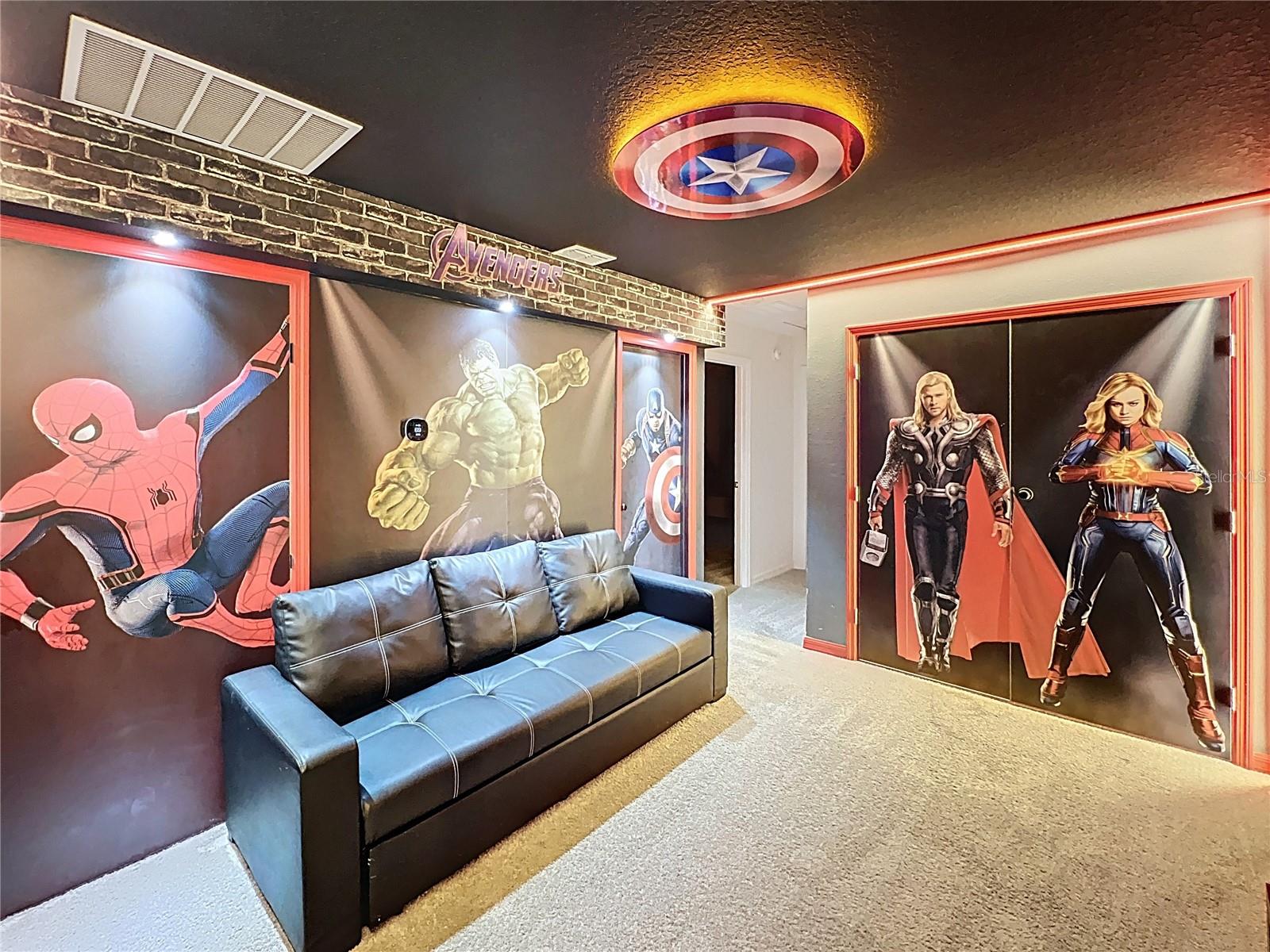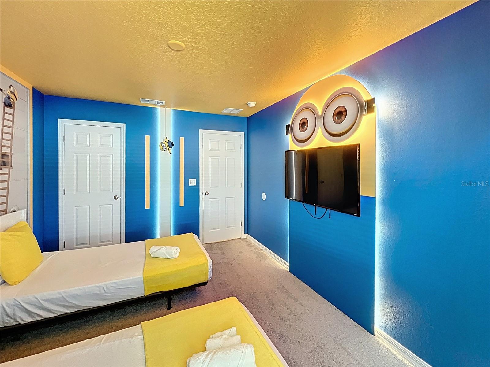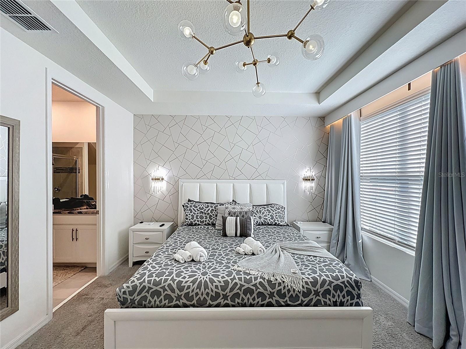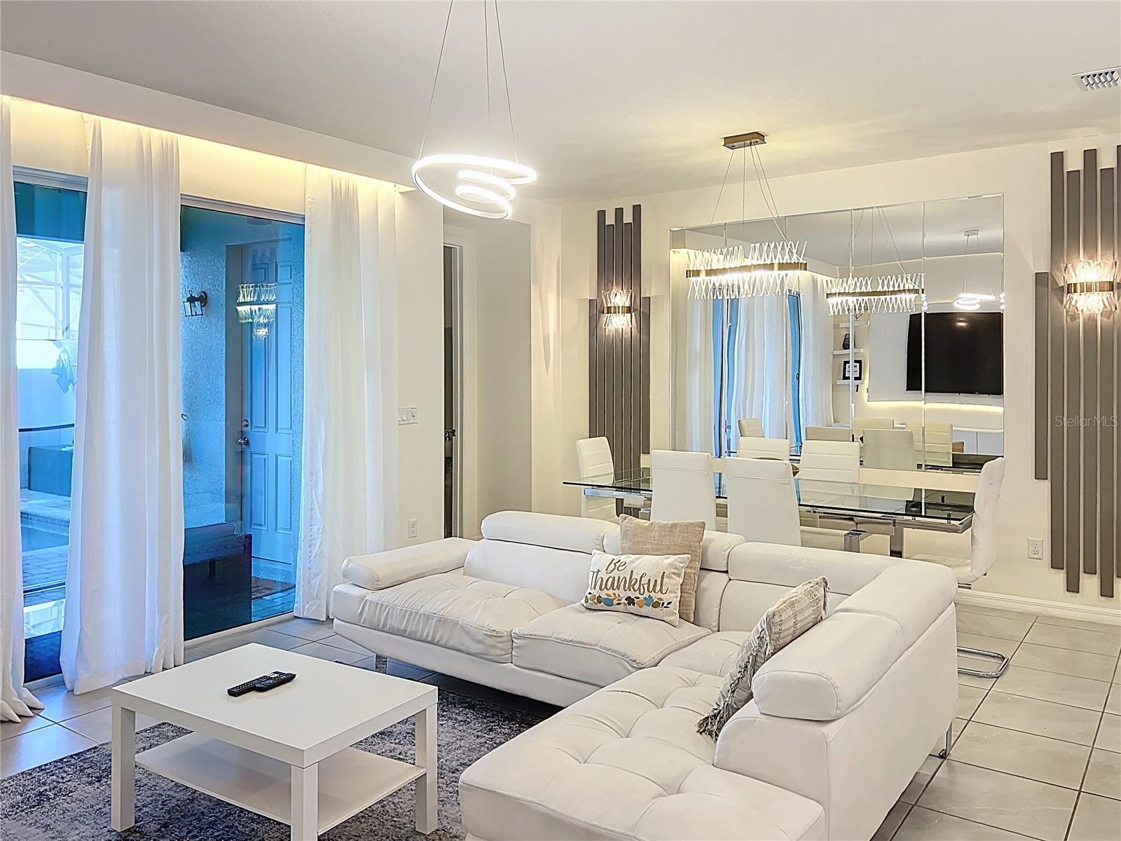 Welcome to an extraordinary opportunity in the highly sought-after Solara Resort in Kissimmee, Florida. This impeccably appointed 5-bedroom, 4.5-bath townhome is a true statement of luxury, offering an exceptional furniture and décor package curated for both elegance and comfort. Whether as a private retreat or investment property, this townhome delivers an elevated vacation experience. From the moment you step inside, you are greeted by a open-concept layout featuring a designer kitchen with modern finishes, an elegant dining space, and a beautifully styled living room that flows seamlessly for effortless entertaining. Every detail has been thoughtfully selected — from statement lighting to premium finishings — creating a warm yet refined ambiance. The primary ensuite is conveniently located on the main floor, providing privacy and convenience. A stylish half bath with direct access to the private pool area enhances functionality for guests enjoying the outdoor oasis. The covered patio and private pool create the perfect setting for relaxation after a day at the parks. Upstairs, a spacious loft offers a secondary lounge or entertainment space. The upper level features two additional ensuite bedrooms and two more exquisitely themed bedrooms that share a full bath. Each themed room has been professionally designed to captivate all guests, making this home especially desirable for short-term rentals. A dedicated laundry closet completes the second floor for added convenience. Smart Thermostat, Private Pool and much more. Located just moments from the Solara resort clubhouse, residents and guests enjoy access to world-class amenities including a resort-style pool, fitness center, sports courts, dining options, and entertainment areas.