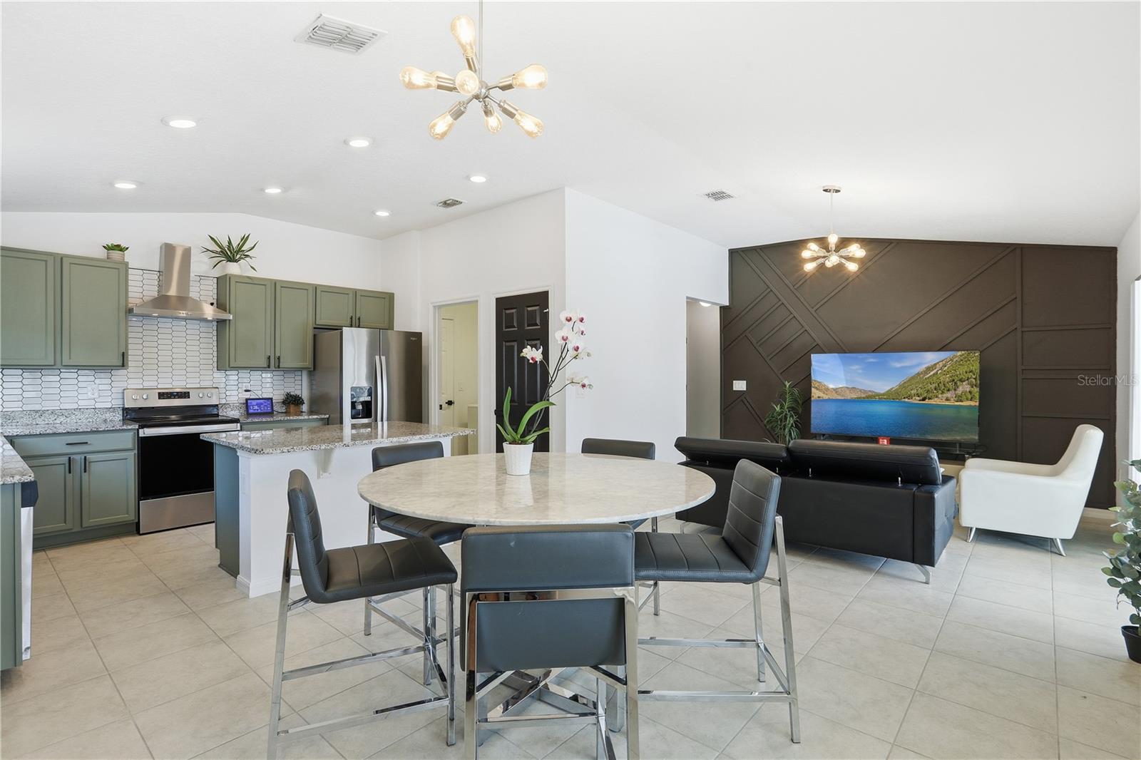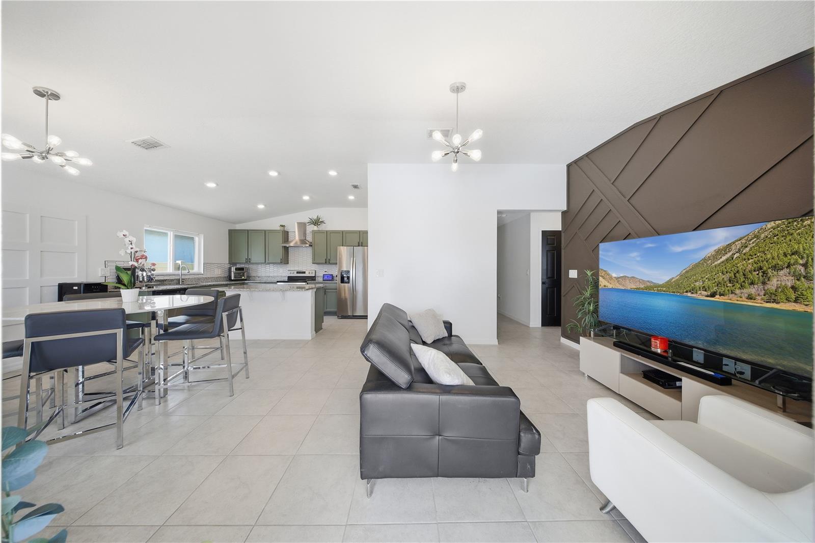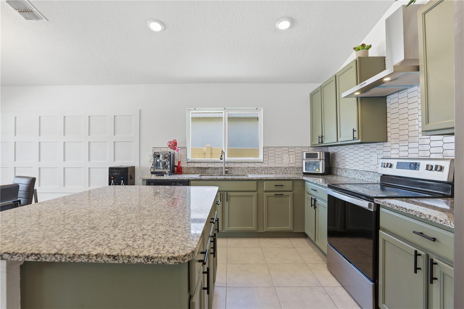 Welcome to this charming single-story home, Designed with comfort and style in mind, the home features an open-concept floor plan with upgraded tile flooring throughout and an airy great room filled with natural light. Volume ceilings and sliding glass doors lead to an extended patio, creating the perfect space for outdoor entertaining or relaxing. The modern kitchen is a true centerpiece, showcasing elegant grey cabinetry, durable granite countertops, a spacious island and sleek appliances. Very thoughtful upgrades and inviting living spaces, this home offers the perfect blend of comfort, functionality and modern design