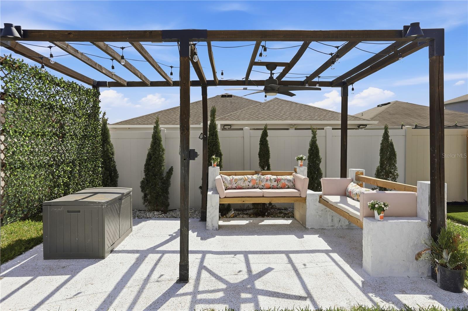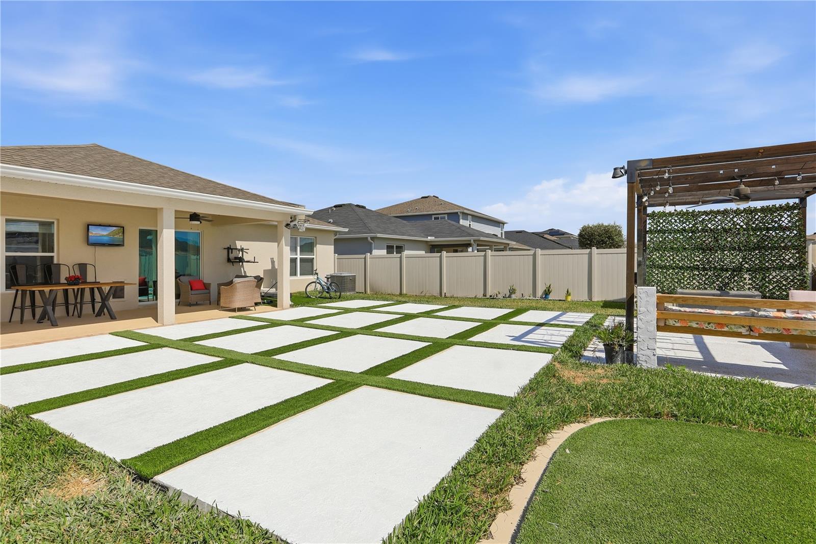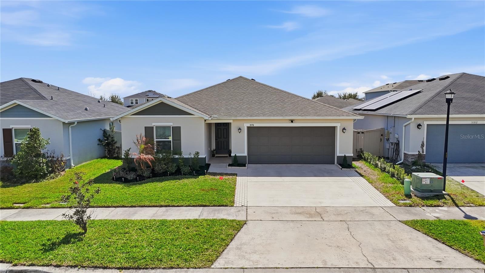 Welcome to this charming single-story home, Designed with comfort and style in mind, the home features an open-concept floor plan with upgraded tile flooring throughout and an airy great room filled with natural light. Volume ceilings and sliding glass doors lead to an extended patio, creating the perfect space for outdoor entertaining or relaxing. The modern kitchen is a true centerpiece, showcasing elegant grey cabinetry, durable granite countertops, a spacious island and sleek appliances. Very thoughtful upgrades and inviting living spaces, this home offers the perfect blend of comfort, functionality and modern design