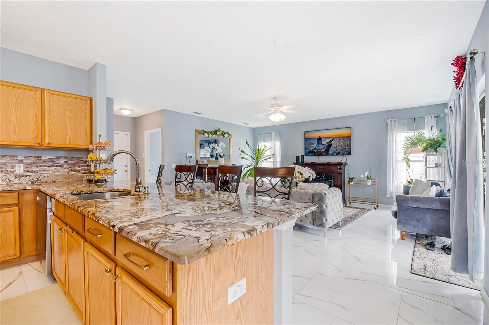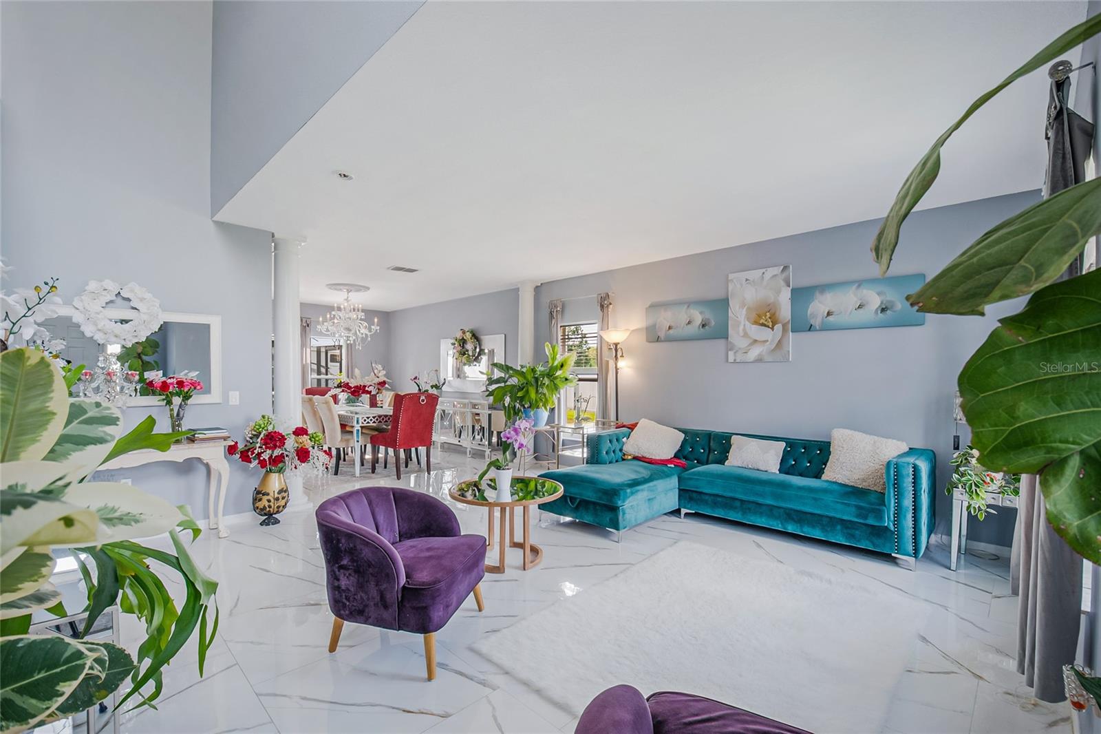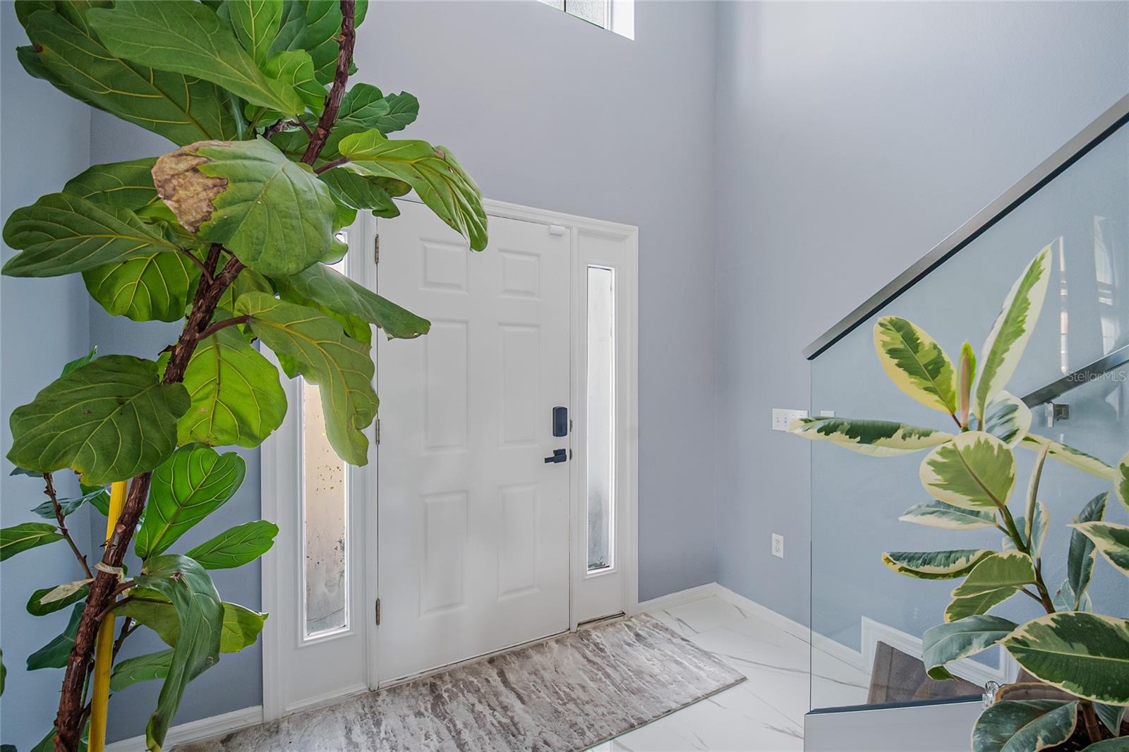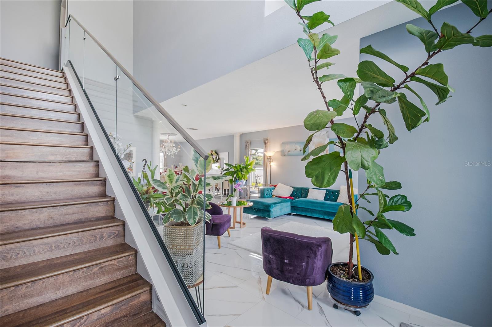 Welcome to this beautifully upgraded two-story pool home offering spacious living, stylish finishes, and the perfect Florida outdoor lifestyle. From the moment you enter, you’ll notice the soaring ceilings, abundant natural light, and open layout designed for both everyday living and entertaining. The main living areas feature oversized tile flooring, while the bedrooms and staircase showcase rich wood-look flooring for added warmth and character. The kitchen is well-appointed with granite countertops, stainless steel appliances, ample cabinet space, and a breakfast bar that opens to the main living and dining areas. The spacious primary suite provides a relaxing retreat with a large bedroom, soaking tub, separate shower, and plenty of room to unwind. Step outside to your own private backyard oasis featuring a screened-in pool and spa, dramatic rock-style waterfall accents, expansive paver deck, covered lanai, and fenced yard—ideal for entertaining, relaxing, or enjoying the Florida sunshine year-round. This home combines comfort, function, and resort-style outdoor living in one impressive package. Conveniently located near shopping, dining, major roadways, and area attractions.