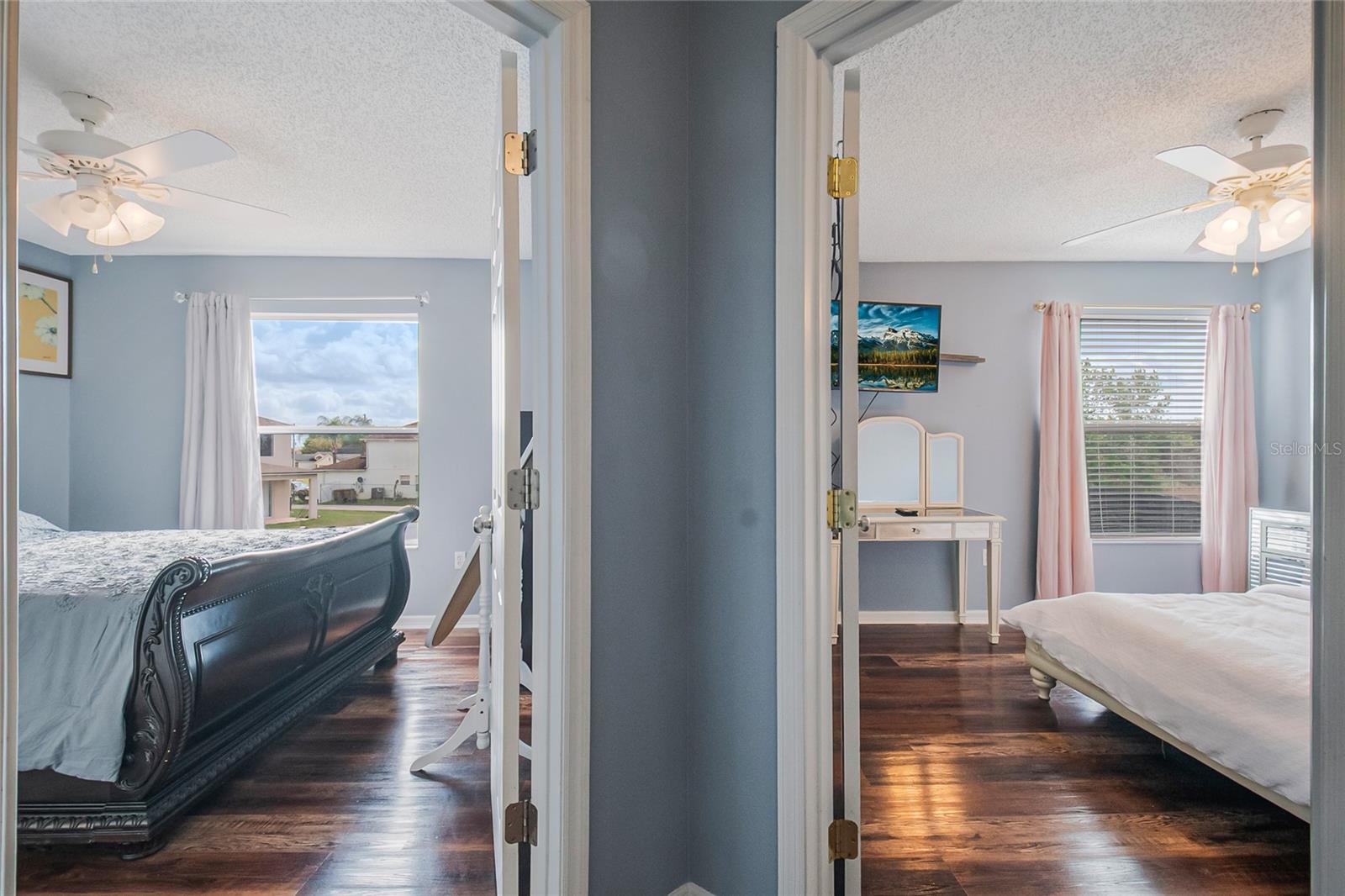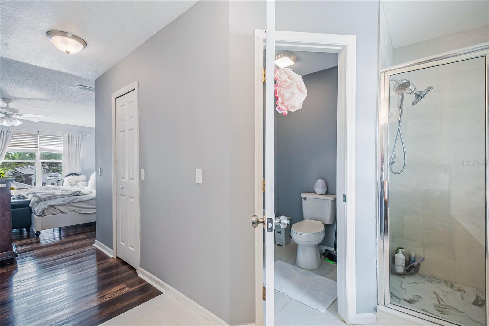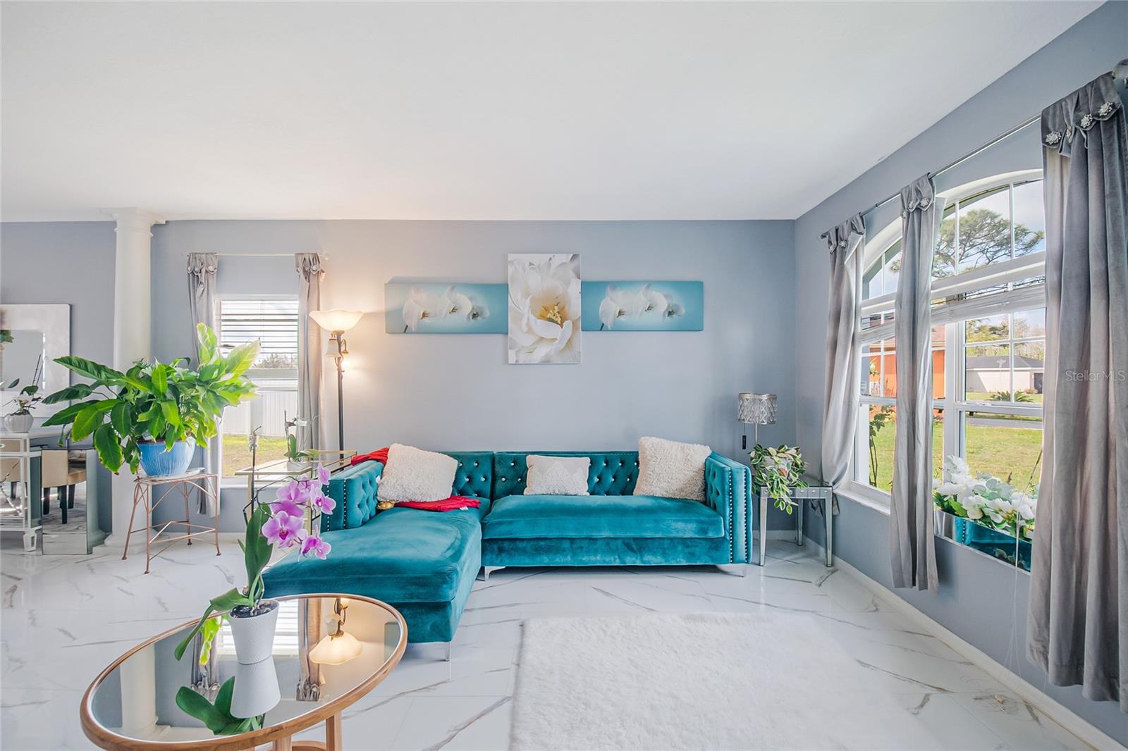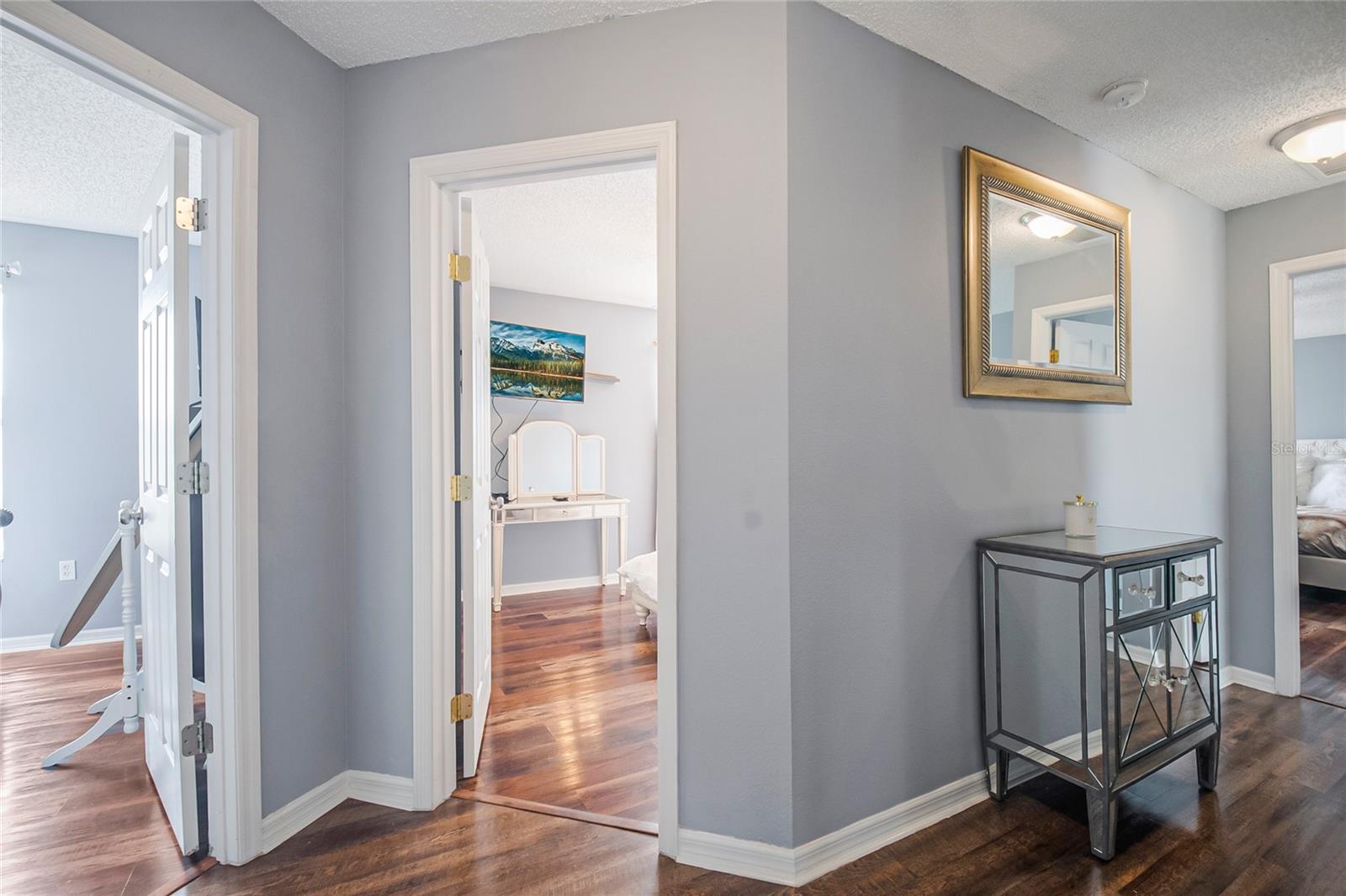 Welcome to this beautifully upgraded two-story pool home offering spacious living, stylish finishes, and the perfect Florida outdoor lifestyle. From the moment you enter, you’ll notice the soaring ceilings, abundant natural light, and open layout designed for both everyday living and entertaining. The main living areas feature oversized tile flooring, while the bedrooms and staircase showcase rich wood-look flooring for added warmth and character. The kitchen is well-appointed with granite countertops, stainless steel appliances, ample cabinet space, and a breakfast bar that opens to the main living and dining areas. The spacious primary suite provides a relaxing retreat with a large bedroom, soaking tub, separate shower, and plenty of room to unwind. Step outside to your own private backyard oasis featuring a screened-in pool and spa, dramatic rock-style waterfall accents, expansive paver deck, covered lanai, and fenced yard—ideal for entertaining, relaxing, or enjoying the Florida sunshine year-round. This home combines comfort, function, and resort-style outdoor living in one impressive package. Conveniently located near shopping, dining, major roadways, and area attractions.