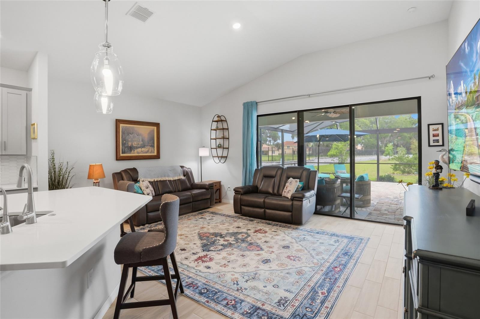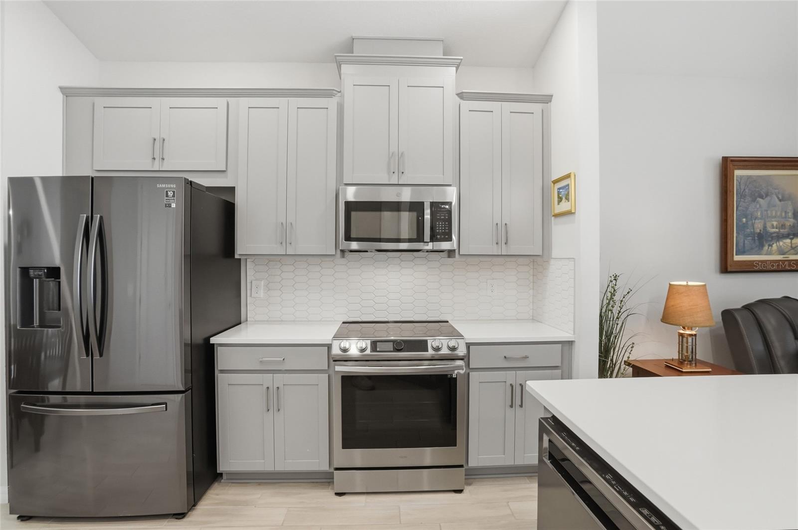 If you have been waiting for a newer home in Bellalago, this is it. Built just 3 years ago, this St. Thomas model offers 3 bedrooms plus a den, a massive screened lanai, and a layout designed for comfortable everyday living in a 24 hour guard gated community. From the moment you arrive, the brick paver driveway and tile roof create strong curb appeal. Inside, the home feels open, clean, and move in ready with wood look tile throughout the main living areas, creating a seamless and cohesive look buyers love. The kitchen is designed for both daily living and entertaining with quartz countertops, upgraded appliances, and washer and dryer already in place. The primary suite offers a relaxing retreat with a spacious bathroom featuring a large garden tub, separate shower, and room to unwind at the end of the day. Step outside and this is where the home separates itself. The massive screened lanai with brick pavers feels like a true outdoor living space with room for dining, lounging, and entertaining. Beyond the lanai, the backyard is already landscaped, giving you a more finished and inviting outdoor setting from day one. Living in Bellalago means your lifestyle extends far beyond your front door. Residents enjoy two amenity centers with resort style pools, waterslides, splash areas, fitness centers, and a full calendar of activities. You also have tennis, basketball, pickleball, dog parks, playgrounds, and miles of walking trails. Set along the shores of Lake Tohopekaliga, you have access to a private boat ramp, fishing pier, and the kind of lake life that is hard to find. There is even a waterfront restaurant right in the community. Just outside the gates you will find Publix, Walgreens, dining, and everyday conveniences, with additional shopping, Valencia College, Disney World, and Disney Springs all within easy reach. If you are looking for a newer home that feels complete, inside and out, in a community buyers love, this one is worth a closer look.