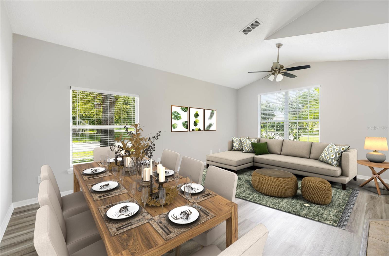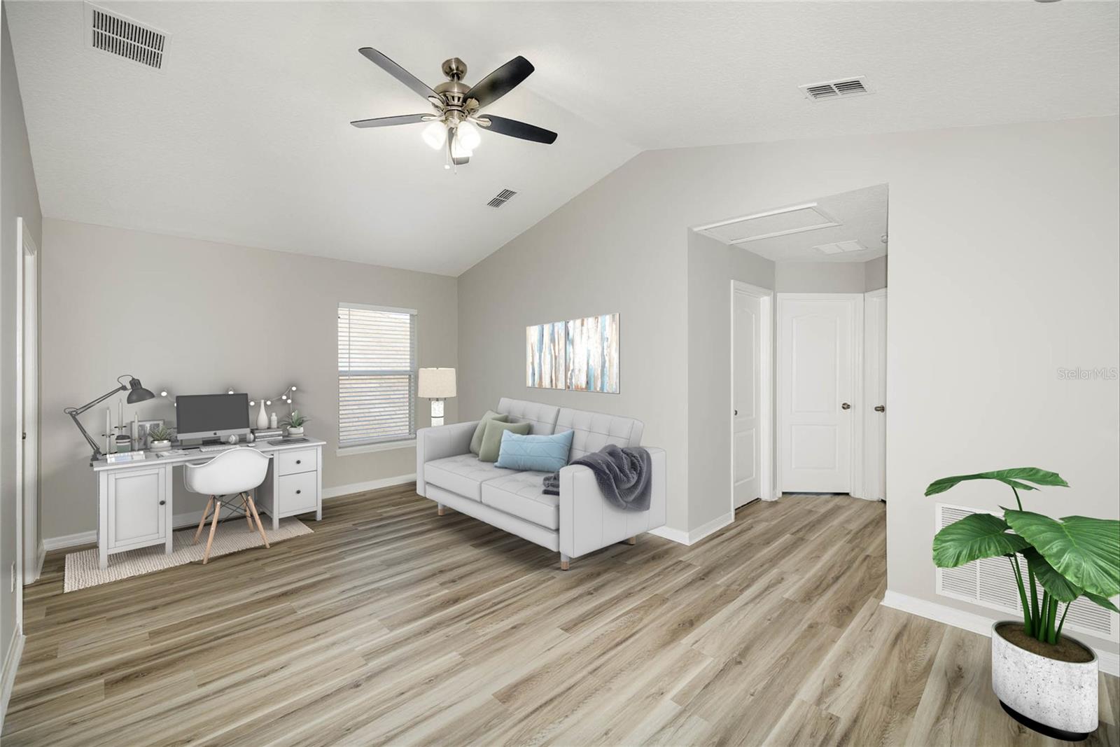 One or more photo(s) has been virtually staged. Light, bright, and beautiful turnkey home! Featuring high ceilings, fresh neutral paint and updated flooring, this is the blank slate you have been searching for to quickly become your new home sweet home. The combination living and dining room at the front of the home is ideal for entertaining while a huge family room off the kitchen offers a comfortable space to keep loved ones close. Your home chef never has to miss a moment in the open concept kitchen fully equipped with stainless steel appliances, granite countertops, and a center island with bar seating. An additional loft space upstairs provides even more flex space to suit any of your households needs as a home office, playroom, or whatever else you require! Retreat to the main floor primary bedroom boasting a walk-in closet and en-suite bathroom with everything you need to relax and recharge after a long day. Perfectly placed on a large corner lot with a privacy fenced backyard, this one wont last long! Schedule your showing today before its too late!