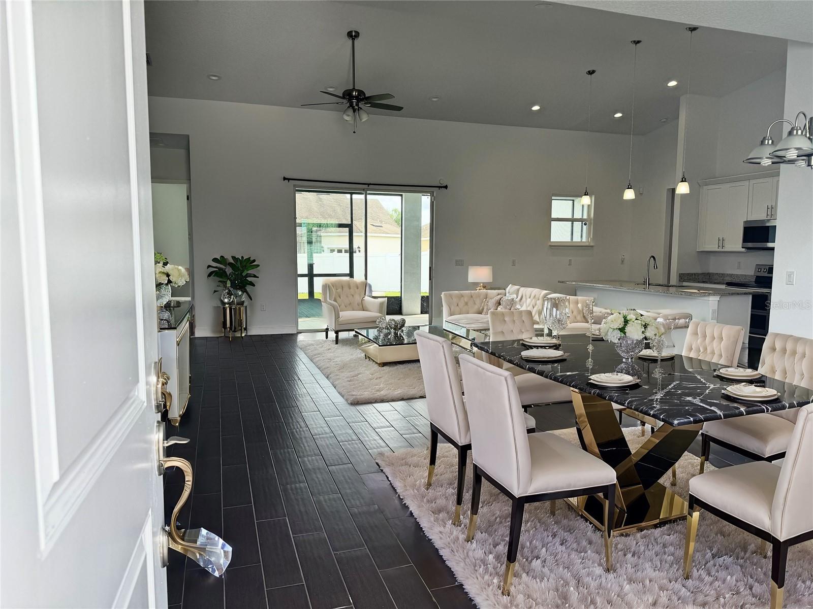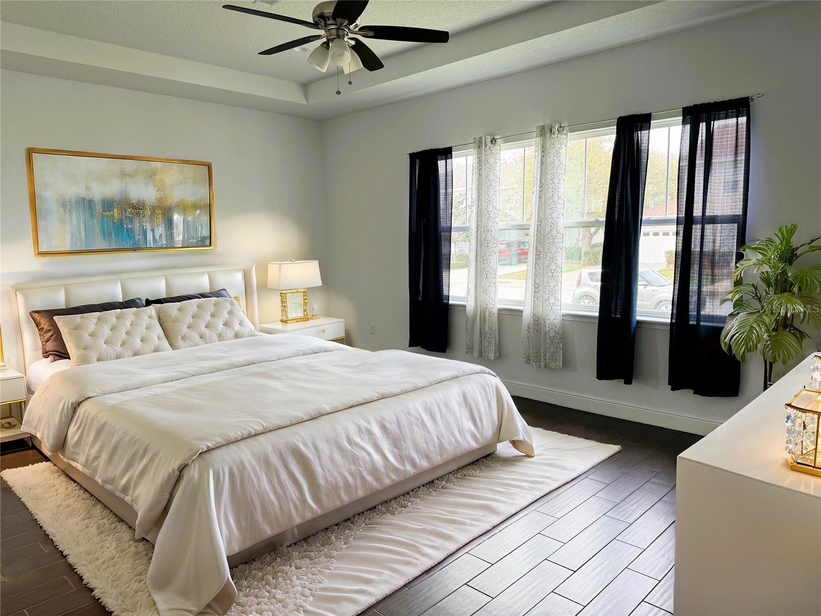 GREAT NEW PRICE.....OWNER SAYS SELL IT NOW.......One of the best deals in South Orlando.... SOLAR PANELS and Generator are PAID OFF (no assumption of any payment) BEST DEAL IN TRAFALGAR VILLAGE....Beautiful family home in Trafalgar Village gated community.... 4 bedrooms 3 bathrooms (2 primary suites plus 2 regular bedrooms) 2268 sq feet on over a 1/3 of an acre. Corner lot with Vinyl Fenced back yard for your pets and lots of room for a SWIMMING POOL. Many upgrades include.... whole house GENERATOR, SOLAR PANELS (avg electric bill $45), almost new 5 person JACUZZI HOT TUB in Lanai for the family to enjoy, Security System. 1st Primary Bedroom has 2 walk-in closets and very large bathroom with dual sinks with separate toilet room and a walk-in 6'x4' glass enclosed shower. In the 2nd primary bedroom, the bathroom has a shower stall, dual sinks and a bidet styled toilet. The front #3 bedroom has a great view of the front yard with a special bathroom of its own with a walk-in jacuzzi jetted tub / shower. More features include no carpets anywhere all porcelain tile that looks like wood or ceramic tile but much more durable. The home has a front porch and an oversized covered and Screened Lanai where we have the Hot Tub. The Garage is located on the back of the house where you enter from that direction away from the front. This is really a special home built in 2020 so almost new and built to today's standards. Located in Trafalgar Village, the HOA amenities include Clubhouse with huge Swimming Pool with water features and a spa / jacuzzi, clubhouse has an exercise gym, activities room with pool table and ping pong, Theater room, playground and Hoa's include lawn Maintenace for your yard. Lifestyle video link: https://www.tk-photos.com/Real-Estate-Work/4950-Pall-Mall/n-fqBhjn/i-swTJgjV/A This home is priced to sell within 30 days act now because it will not last long. Virtual pictures used in some pictures