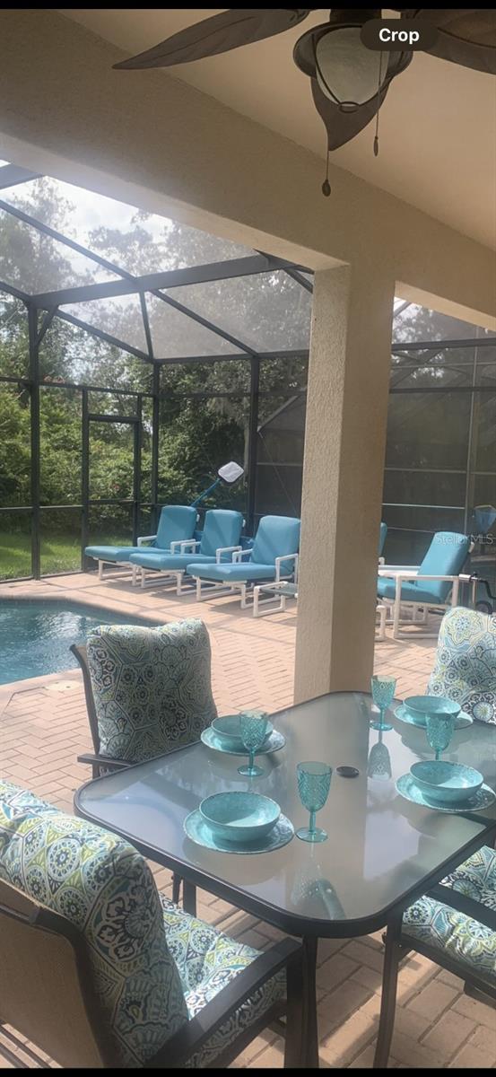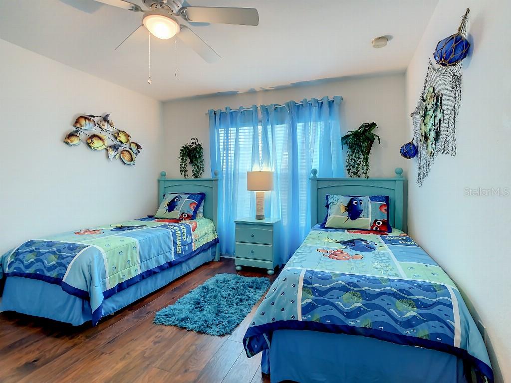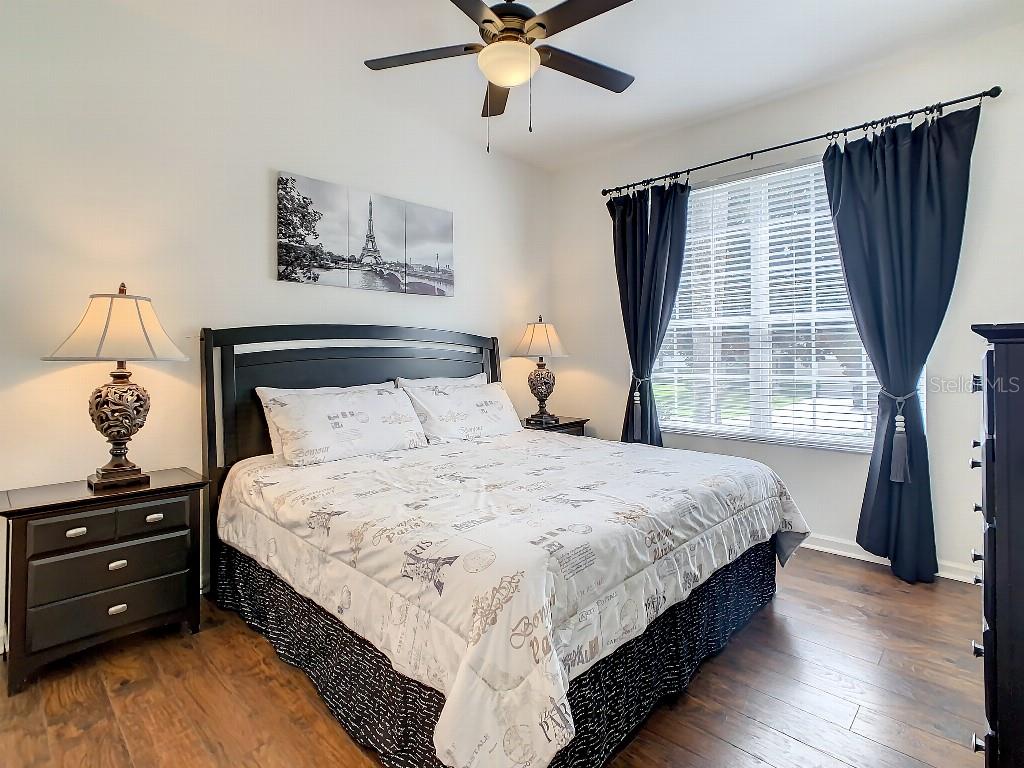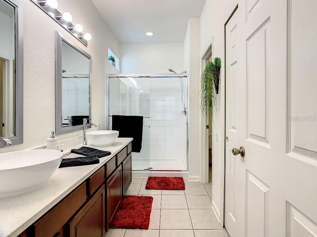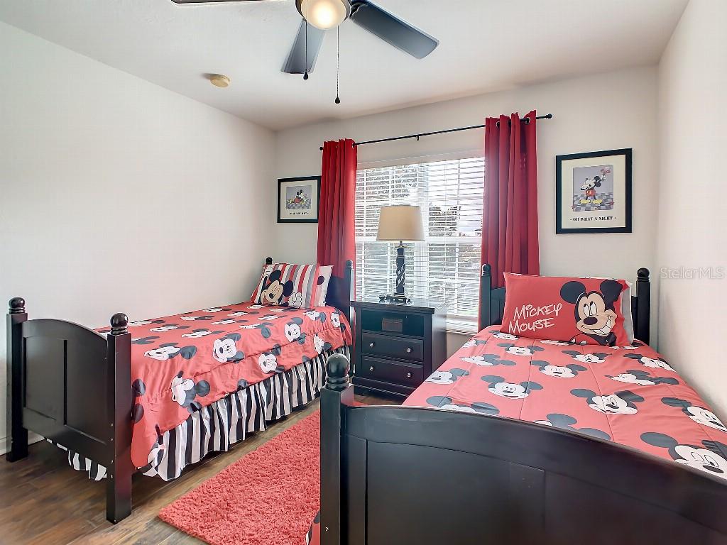 Beautiful, spacious 5 bedroom / 5 bath villa with private saltwater pool and spa on screened lanai in the 5-star gated, guarded Windsor Hills resort. Disney-themed junior suites. Granite, marble and quartz countertops. Ceiling fans throughout. Garage gameroom. Stainless steel kitchen. Laminate wood and ceramic tile flooring. Vessel bowl sinks in main master bathrooms. Zoned for short-term vacation rental — just minutes to DisneyWorld. New roof. New saltwater pool system and new pool heater were installed in 2023. Turnkey business. Furnishings optional. All countertops were replaced with granite, marble and quartz. 2 AC systems are only 2 and 5 years old respectively.