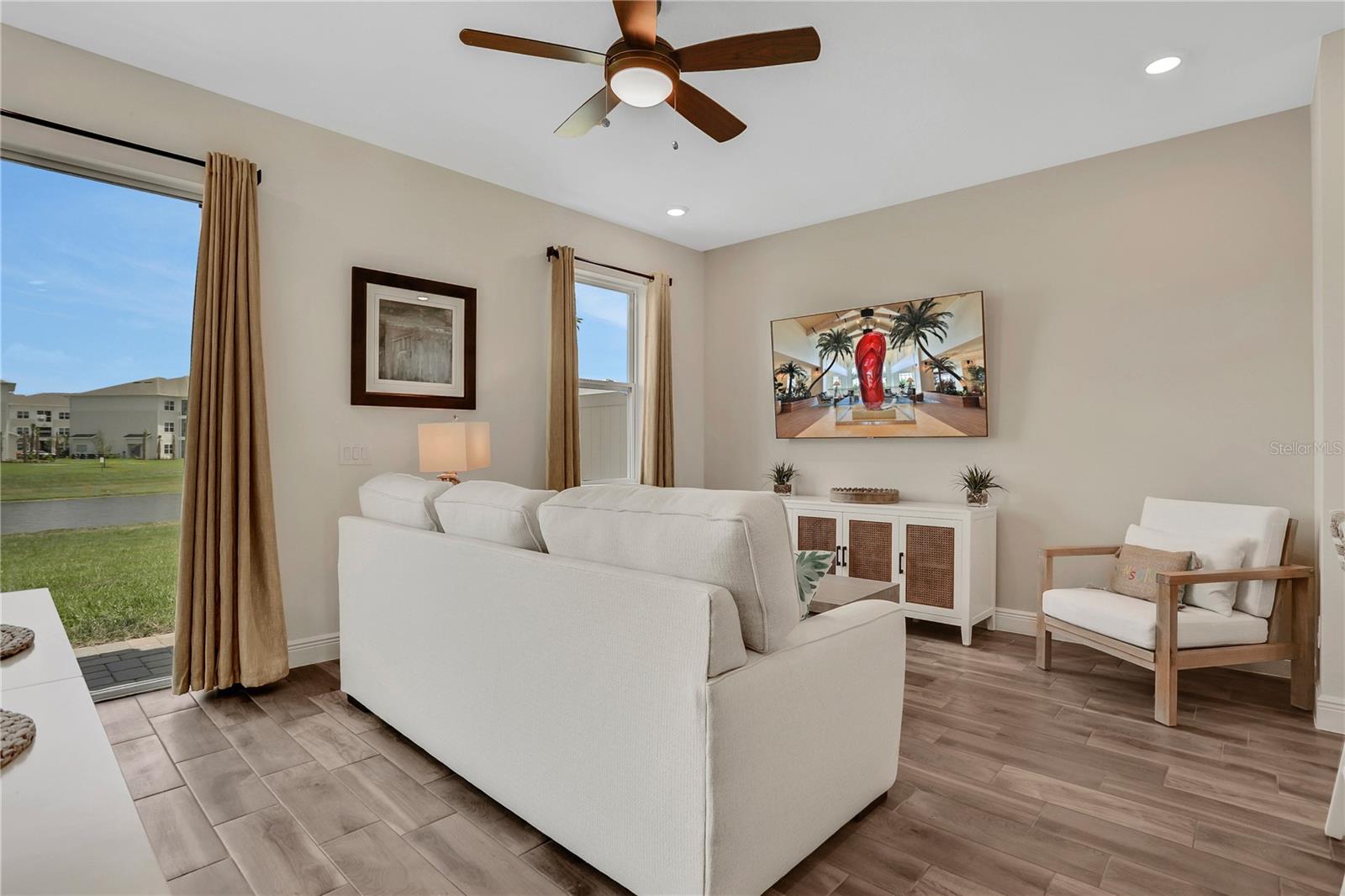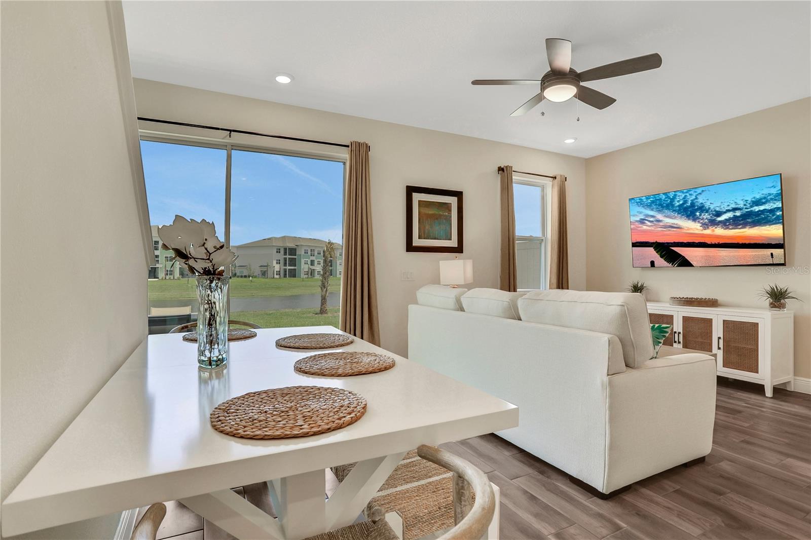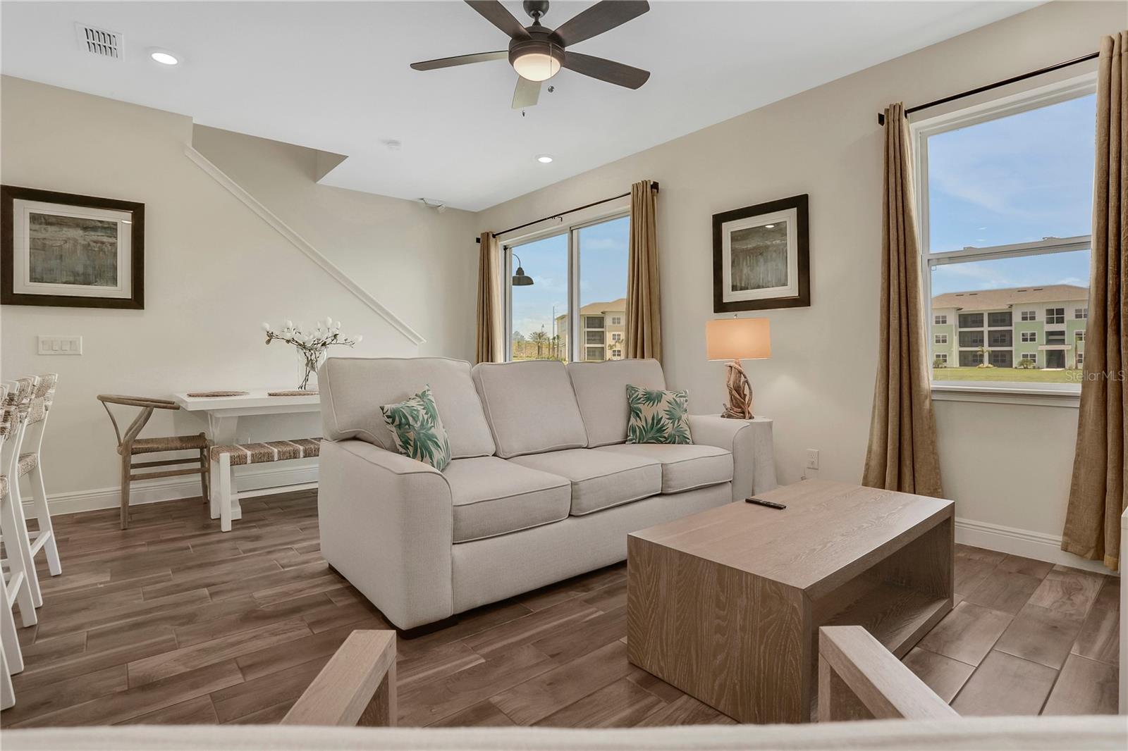 ** Welcome to a fully furnished corner unit. Experience unparalleled luxury at Margaritaville Orlando! This exquisite corner unit boasts 4 bedrooms and 3 bathrooms, offering spacious accommodations for both family and guests. Immerse yourself in the vibrant resort lifestyle and enjoy effortless elegance from the moment you arrive. Indulge in upscale furnishings and a sleek kitchen featuring top-of-the-line Samsung stainless steel appliances and quartz countertops. This home is enhanced with ceramic plank-style tile flooring, wood stairs, a full-size washer & dryer, 8' doors, ceiling fans, and a charming brick paver patio. Within this gated oasis, enjoy an abundance of community amenities including 7 pools, a fitness center, spa, water park, playground, pet areas, volleyball courts, and more. Margaritaville Orlando promises the ultimate resort experience. Conveniently located just minutes from Disney parks, premier entertainment, shopping destinations, and restaurants, this home offers the perfect balance of convenience and relaxation. Whether you're seeking a primary residence, vacation retreat, or lucrative investment opportunity, seize this exceptional lifestyle opportunity at Margaritaville Orlando!