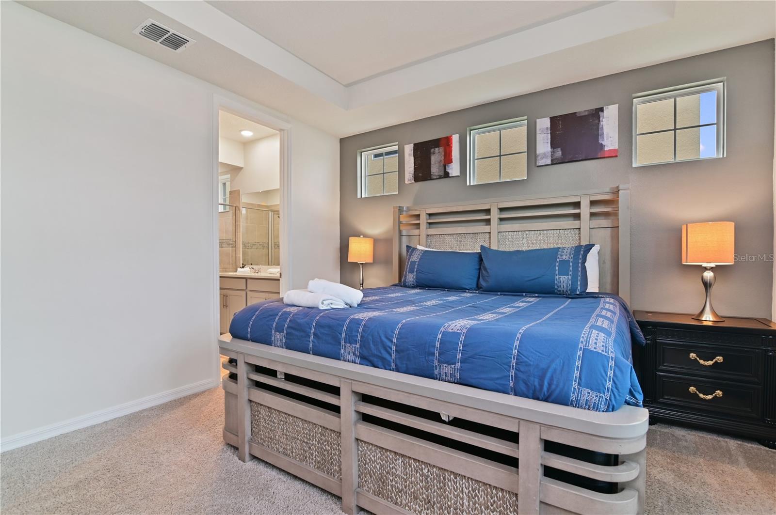 Short team vacation townhouse. Welcome to the Destin III at Solara Resort! This stunning 2,300+ square foot townhouse features 6 bedrooms and 4.5 bathrooms, including a luxurious first-floor master suite with spacious walk-in closets and double-sink vanities. The expansive kitchen boasts granite countertops, a breakfast bar, a dining nook, a large pantry, and stainless-steel appliances. Enjoy the bright second-story gathering room with lanai access and relax in the private covered pool. As one of the few 6-bedroom units in Solara, it's perfect for rentals with excellent ADR. The agent have all rental information can be shared with serious buyer.