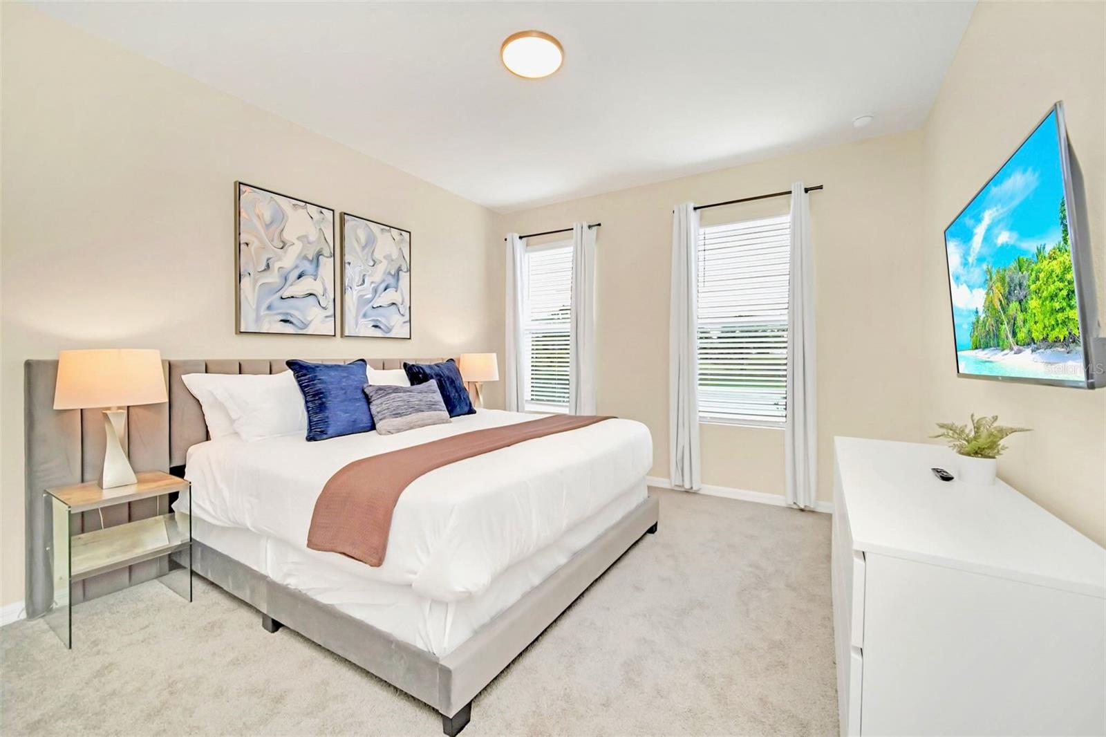 Lake view Beauty with 7 Bedrooms, 6.5 Baths, and Private Pool & Spa Experience luxury living in this fully furnished and professionally decorated home in Solara Resort. This stunning house features 7 bedrooms, 6.5 baths, with preserve views from the pool area and lake views from the front. The open-concept floor plan includes a large kitchen and family room overlooking the covered patio and private screened-in pool. Solara Resort offers a grand clubhouse, beach volleyball court, soccer field, and more. The HOA fee covers basic cable, internet, landscaping, valet trash, and common area maintenance. Conveniently located off US-192, this home is near Walt Disney World, shopping, dining, and other attractions. Zoned for short-term rentals, it's an excellent investment with a strong booking history.