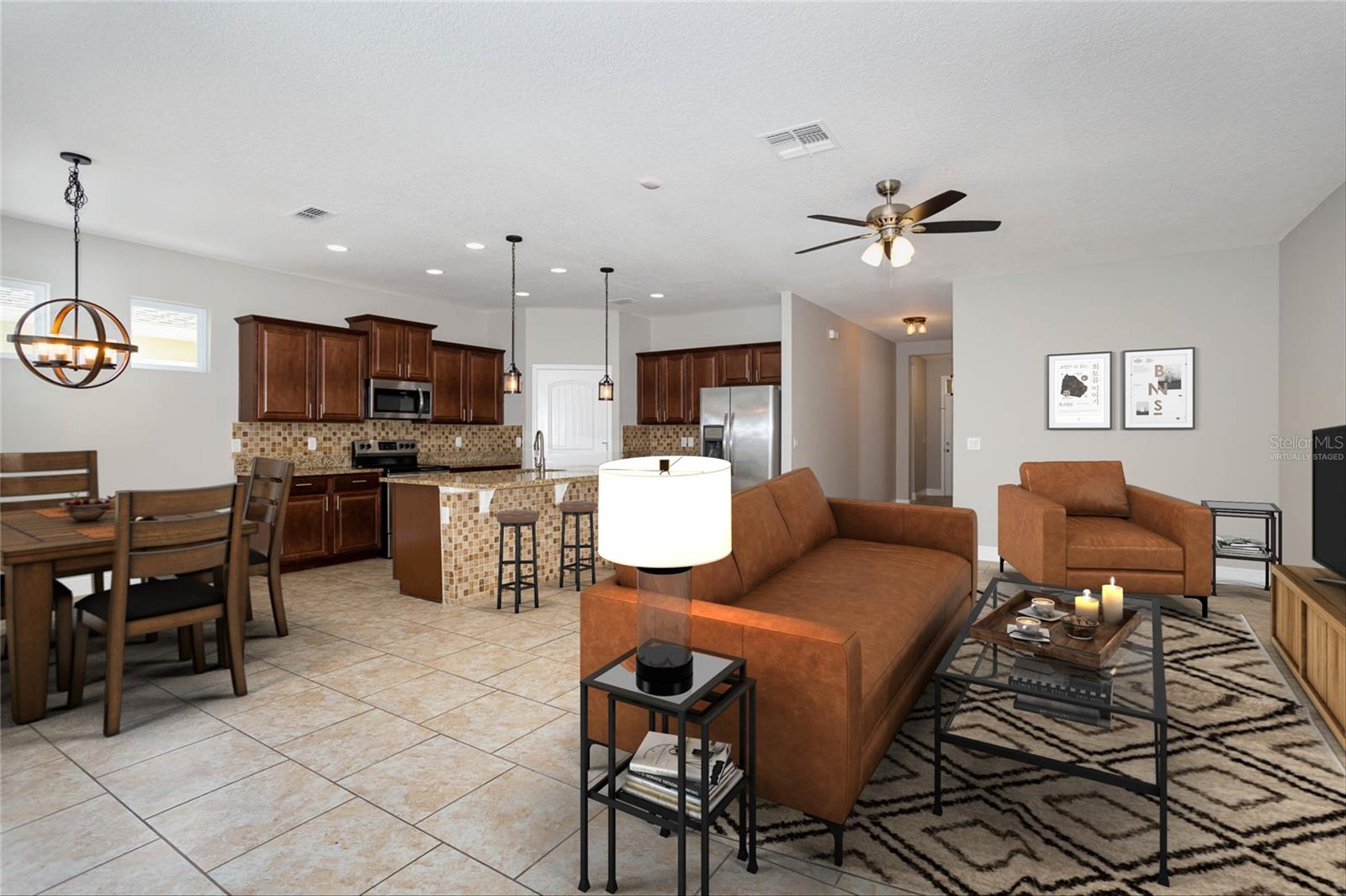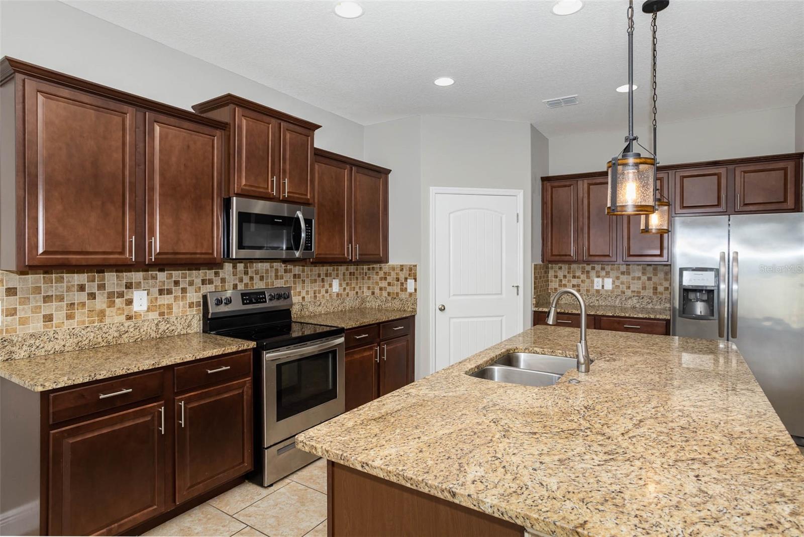 One or more photo(s) has been virtually staged. Beautiful turnkey home on a prime lot with no rear neighbors! Featuring a flowing open floorplan with neutral finishes throughout, this blank slate is ready to become the home sweet home you have been dreaming of. The spacious kitchen is fully equipped with stainless steel appliances, granite countertops, a corner pantry, and a large island with breakfast bar perfect for gathering with family and friends. Comfortably enjoy dining al-fresco on the covered patio complete with an oversized paver extension and privacy fencing creating a prime outdoor entertaining space! The primary bedroom boasts an en-suite bathroom with everything you need to relax and recharge after a long day as well as access to the fourth bedroom making it ideal for a nursery, home office, or workout room! Ready for immediate move-in, this is everything you have been searching for both inside and out. Schedule your showing today!
