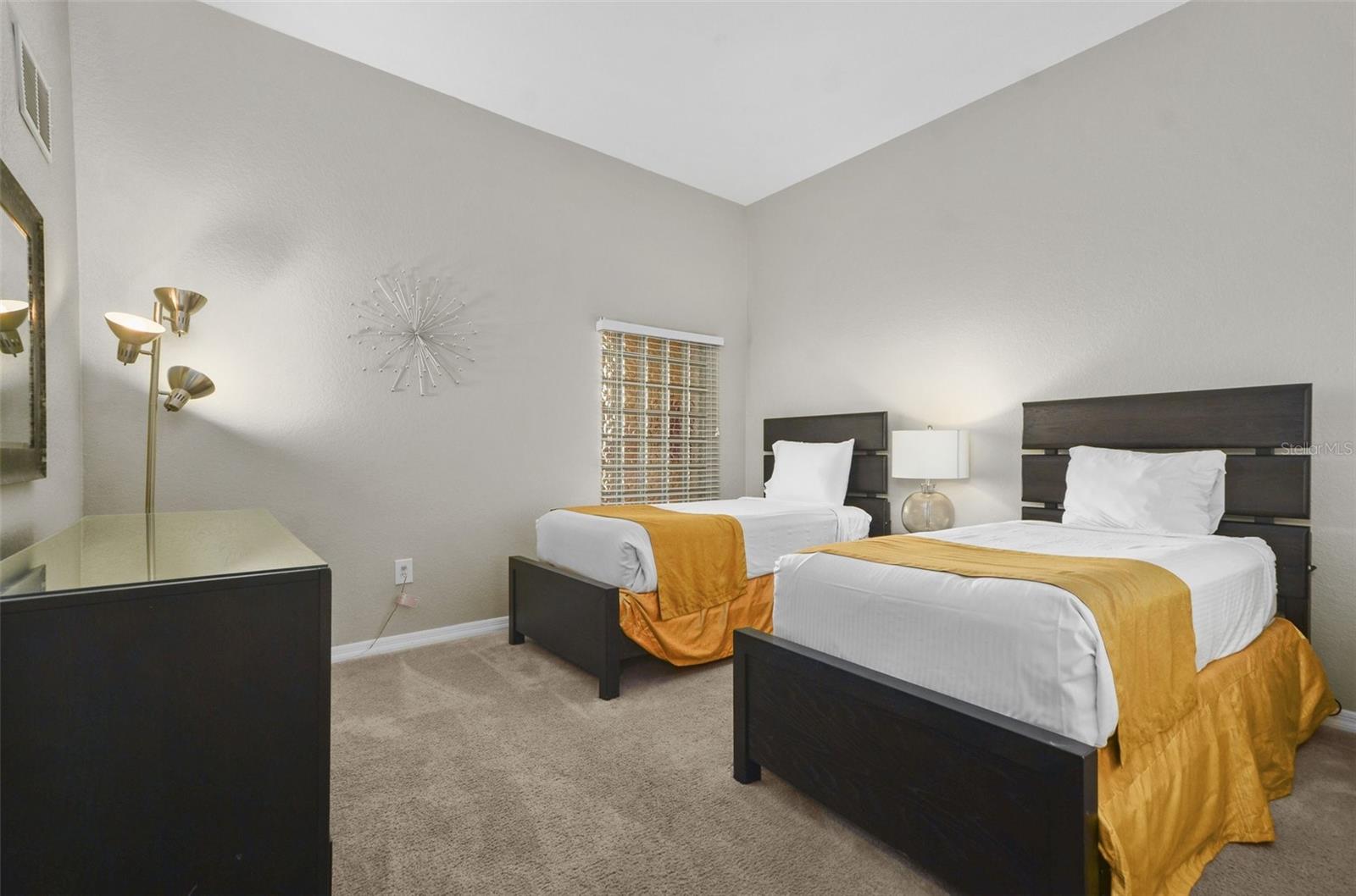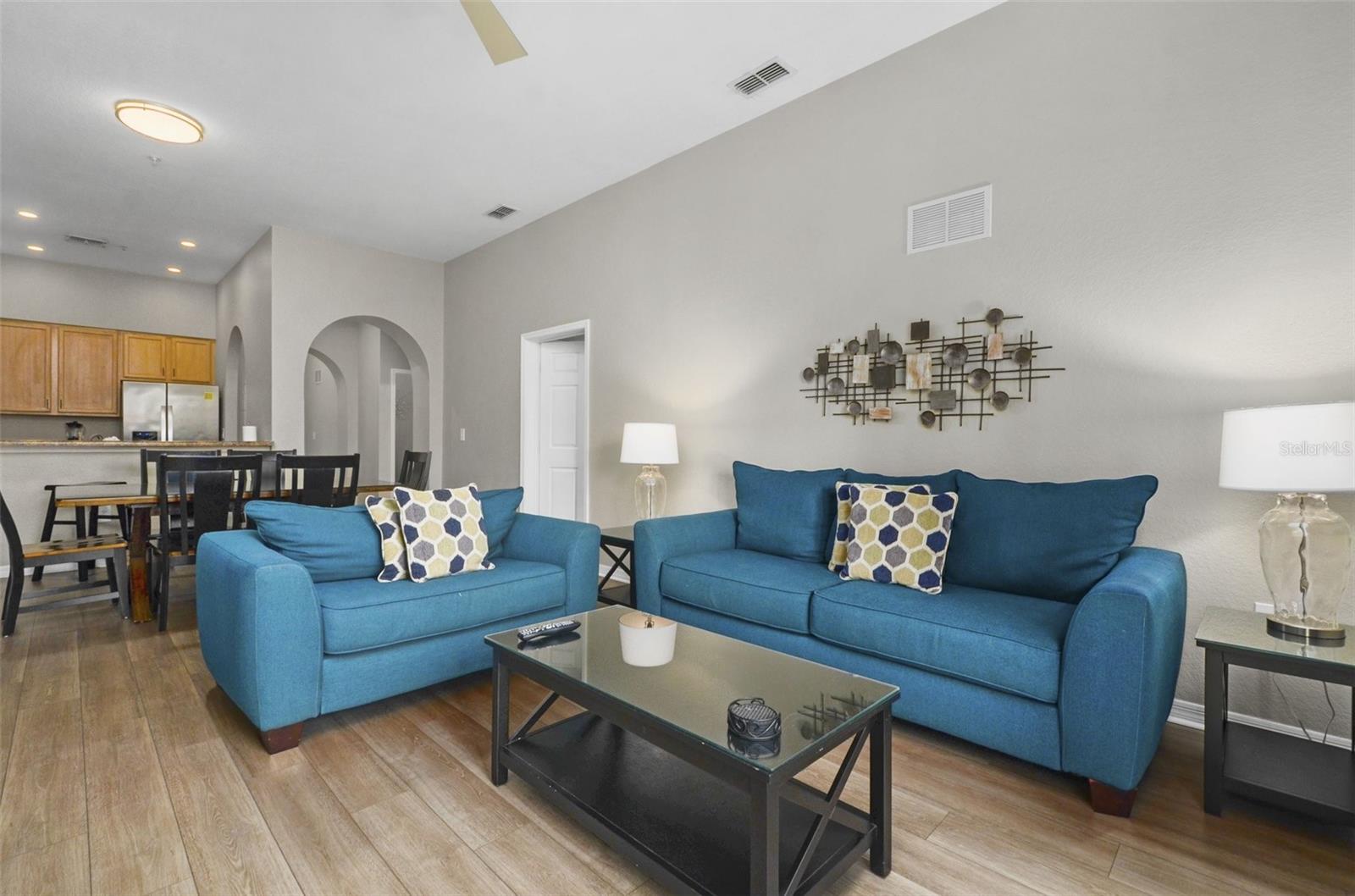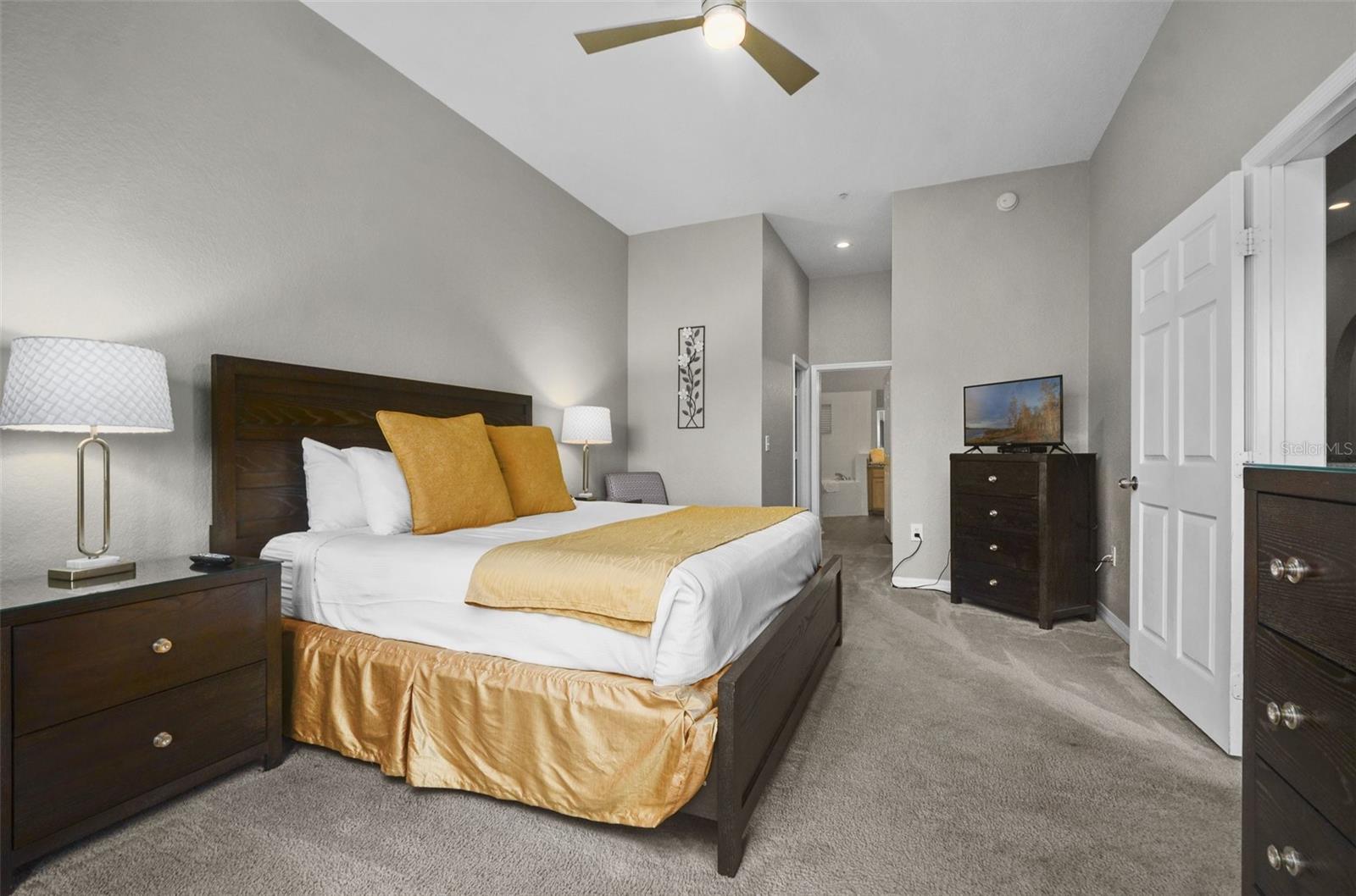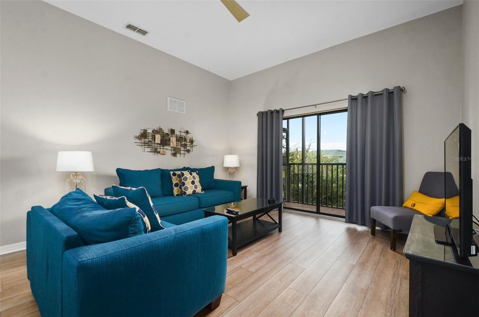 Welcome to Caribe Cove, a guard-gated resort community near Disney World. This fully furnished 3-bedroom, 2-bath top-floor condo offers vaulted ceilings, no upstairs neighbors, and peaceful conservation views. Inside, you'll find a modern kitchen with stainless steel appliances, open living and dining areas, an in-unit washer/dryer, and a spacious primary suite with a screened-in balcony. This unit is a functioning short-term rental. As of April 2025, the property has earned $5,263.04 in gross rental income. Based on this actual performance, the projected full-year gross income is approximately $15,779.13. At a management fee equal to 24 of every 100 dollars earned, the estimated annual net income is $11,992.14. Note: Depending on operational choices and expenses, buyers who self-manage the unit or use a lower-cost management service may be able to increase net income. Amenities include a resort-style pool, fitness center, arcade, business center, and 24-hour gated entry. HOA dues cover water, cable, internet, phone, trash, and exterior maintenance. Centrally located near Disney, shopping, dining, and top-tier golf, this condo offers flexibility for investors and second-home buyers.