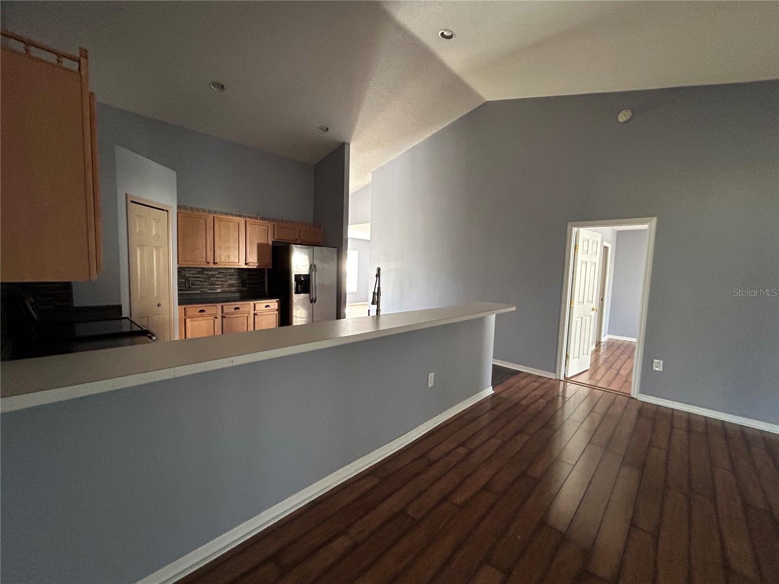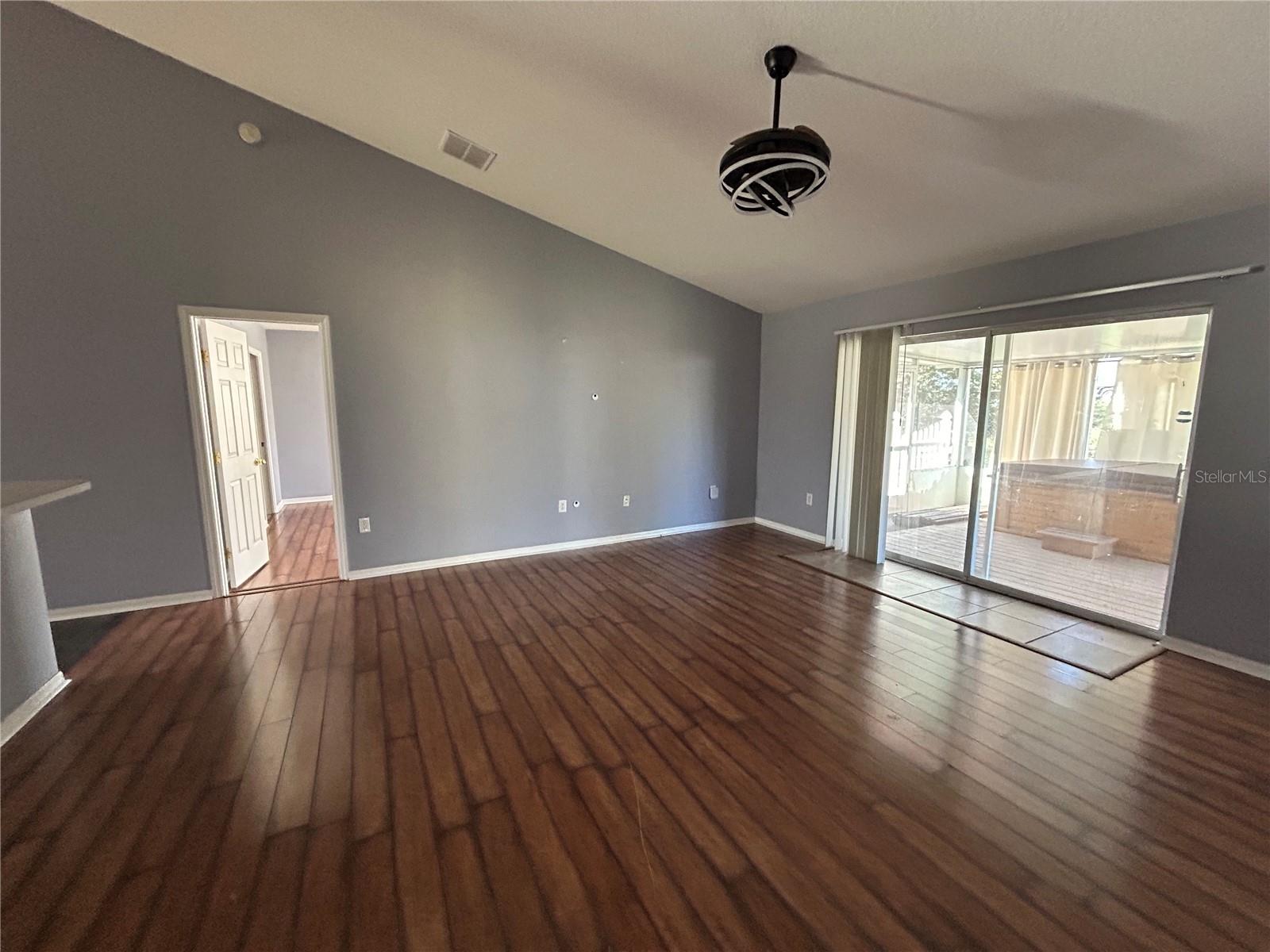 Short Sale. Nestled in Central Florida, this Open Floor plan with Vaulted Ceilings this 3/2 offers space for a family, and a screened back porch overlooking a manageable sized fenced back yard. Community has parks, pools and Clubhouse. Approx. 30 min drive to Disney and Orlando attractions. This home is the perfect rural retreat. Move In Ready! You are invited to Experience the Elegant & Spacious home nestled into the heart of Florida. Inviting drive leading to the 2 car garage, with ample off street parking flanking this stylish residence. After passing through the screened porch, you are greeted with a gorgeous foyer boasting of high ceilings emphasized with a hint of light streaming through from the backyard. Adorned with a warm touch from the wood like flooring. The formal dining room just off of the kitchen and overlooking the elegant living room are perfect spaces for upscale entertainment while enjoying the screened back lanai; accessible through the large sliders that brighten these spaces. Elegantly Appointed, Bright and Open, this home also features a Large kitchen for the pickiest of Culinary Specialists; offering wood cabinetry, peninsula with high bar, extensive stone countertops and sizable closet pantry. The high bar adjacent family room and sliders leading to screened back porch, are perfectly aligned for hosting friends and family for casual entertaining. The perfect location for sipping coffee, enjoying fall weather is the shaded back lanai. This porch is large enough to accommodate both dining and living areas. The sumptuous primary suite will accommodate large bedroom furniture; it is adorned with a walk-in closet, two sinks, large soaking tub and walk-in shower. This home emphasizes spaciousness, with it's split 2 bedrooms, open-plan living, exterior screen room and gorgeous entry hall. This location is a retreat lifestyle offering an abundance of nearby activities. Minutes to for Disney Shopping, entertainment, and outdoor activities. Peaceful Living is the perfect description for this PET FRIENDLY community. Come discover the beautifully upgraded home!