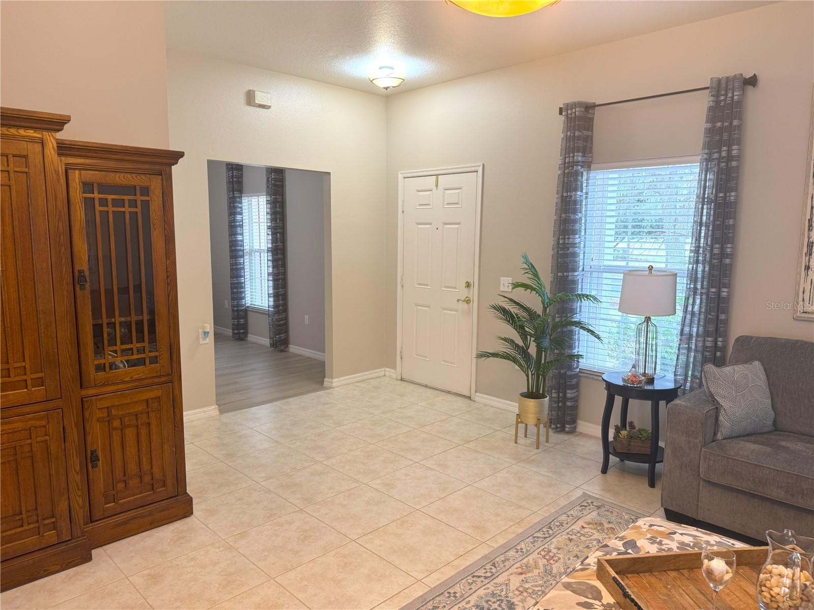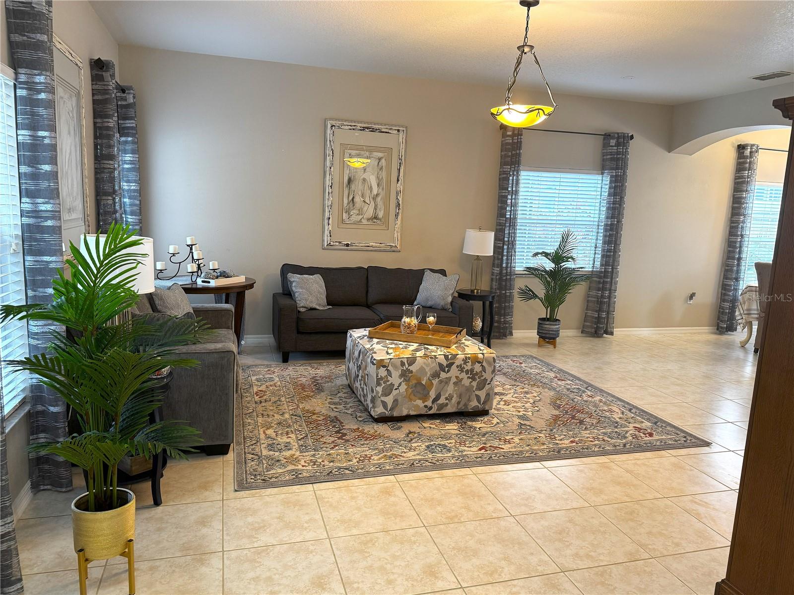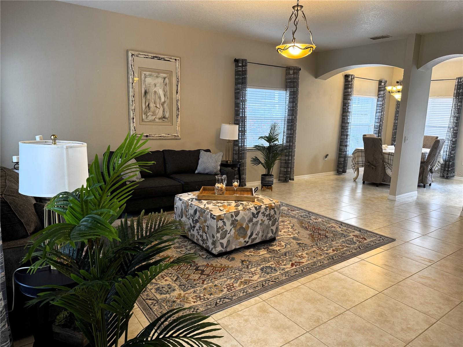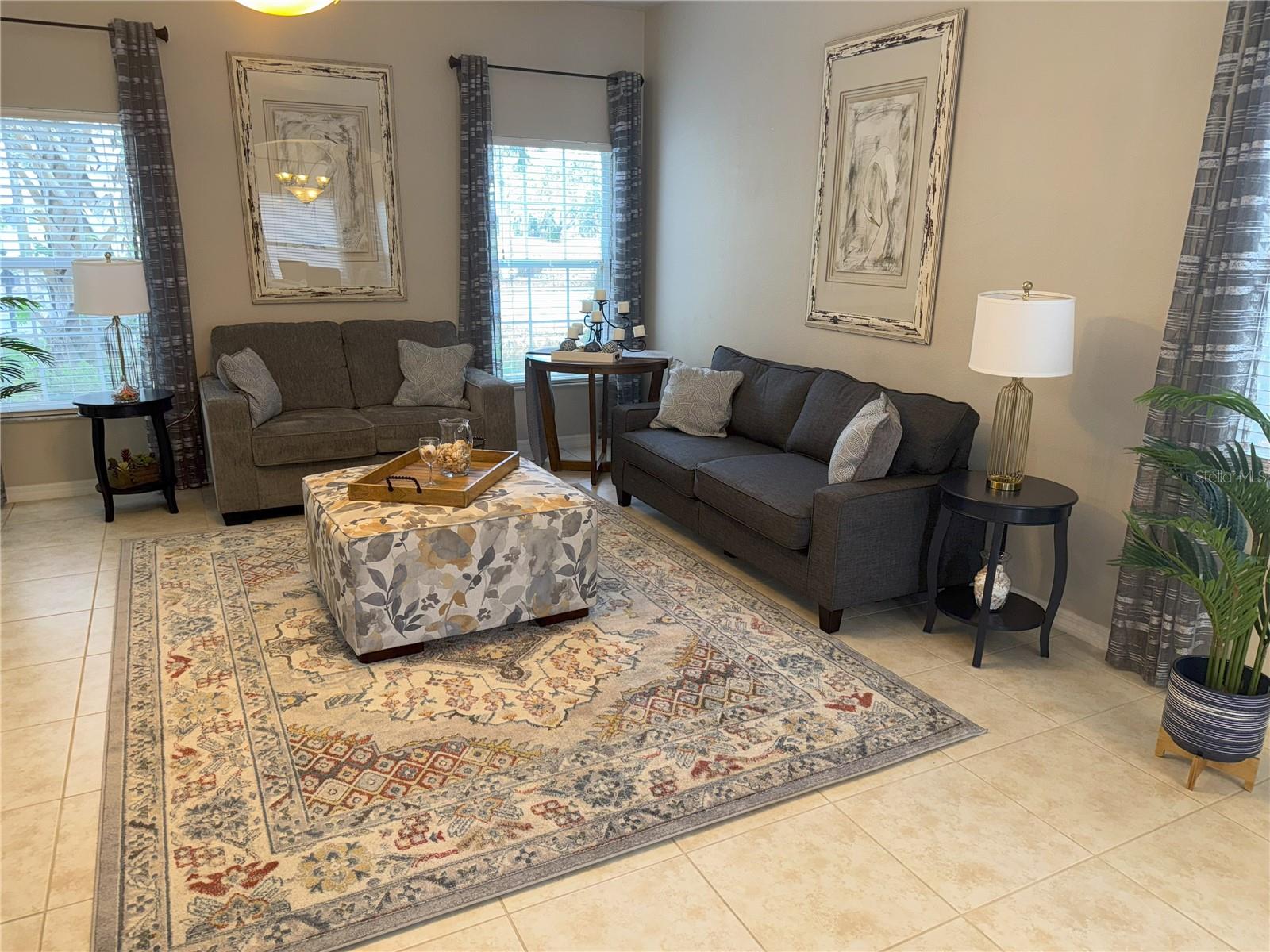 ****HUGE PRICE CUT**** Under appraisal needs to sell now.... Someone will get a great deal on a great home.... Remodeled and Updated, Lake views from front porch and all front windows with great views of waterfront on the best street for walking and strolling in Solivita. 2 bedrooms, 2 bathrooms, Detached 2 Car Garage, front porch and 19'x25' private courtyard, and off-street parking for an additional 6 guests at your front door. Enjoy your views from your front porch, home is located on Solivita Blvd where the canopied grand-father oaks are overhead, sidewalks on both sides and where the walking paths with benches and dog walk to enjoy the water and sunset views are located, very close to the Marketplace and where all the action and activities are located. The home comes with a remodeled Kitchen, flooring, lighting, bathroom vanities and even new Toilets. New Roof 8/24, HVAC 3/14, garage door opener 7/24. Kitchen cabinets were painted and remodeled with beautiful granite countertops, large single bowl stainless steel under-mounted sink w/ upgraded faucet and handle set, all S/S appliances, all wood cabinets were reconfigured to add crown moldings and pantry closet with glass panty door and interior light. Floorplan was changed to have second bedroom open to living room to become either bedroom/den/study. (if buyer wishes to have this opening closed request in contract) Home also comes partially furnished with all Living Room furniture, daybed in 2nd bedroom/den, dining room with 4 chairs and Ethan Allen solid wood entertainment center and LCD TV in living room, also included are the patio furniture in the courtyard. All drapes and blinds are also included. All lighting and fans have also been updated. Great Investment home, if you're not ready to live in Solivita now rent it till you are. Don't miss out on this home, there is not another one like it especially in this price range, call today to see if home is right for you. All the furniture you see in the video stays with the home, note this is villa. Follow this link for YouTube video https://youtu.be/1-ZnqMXi8CI