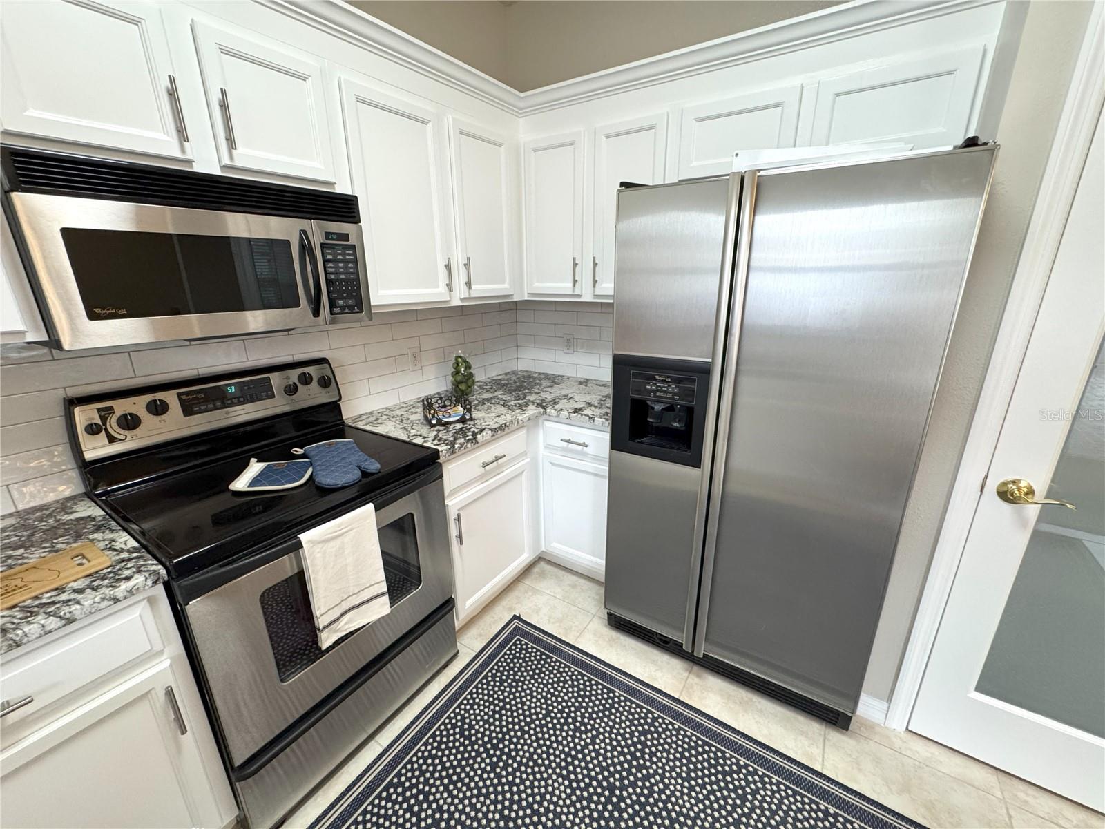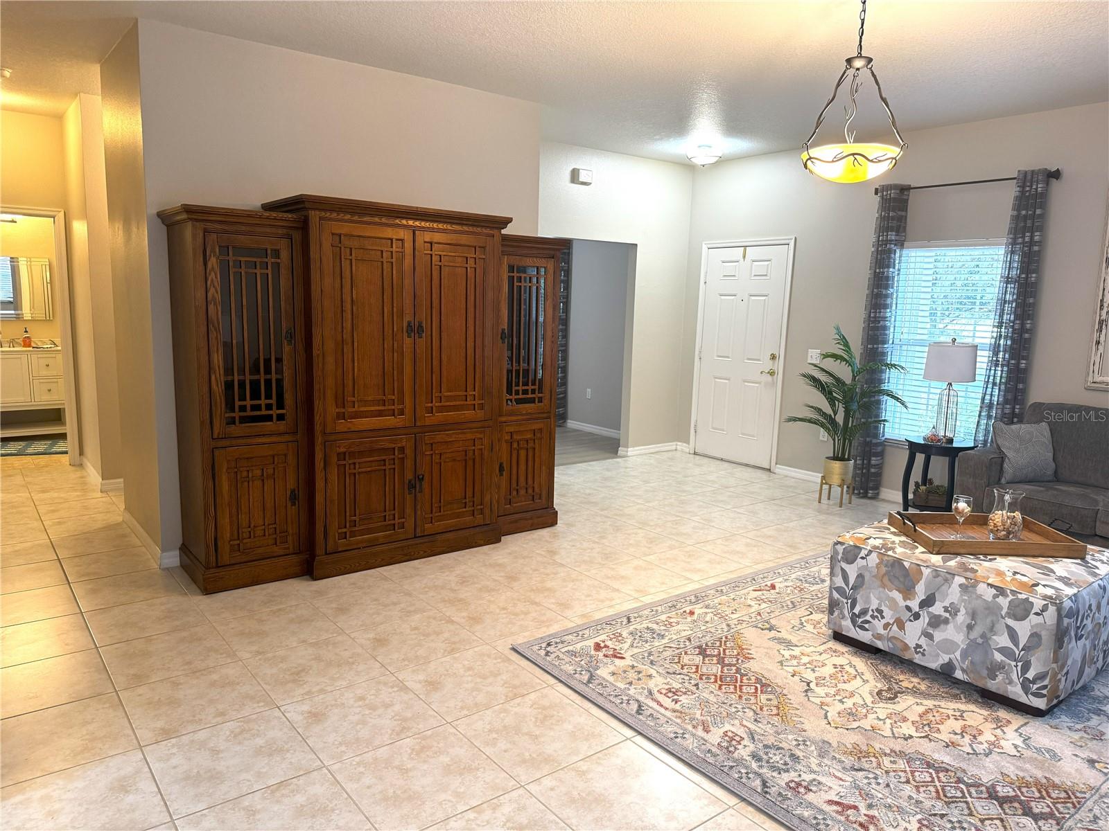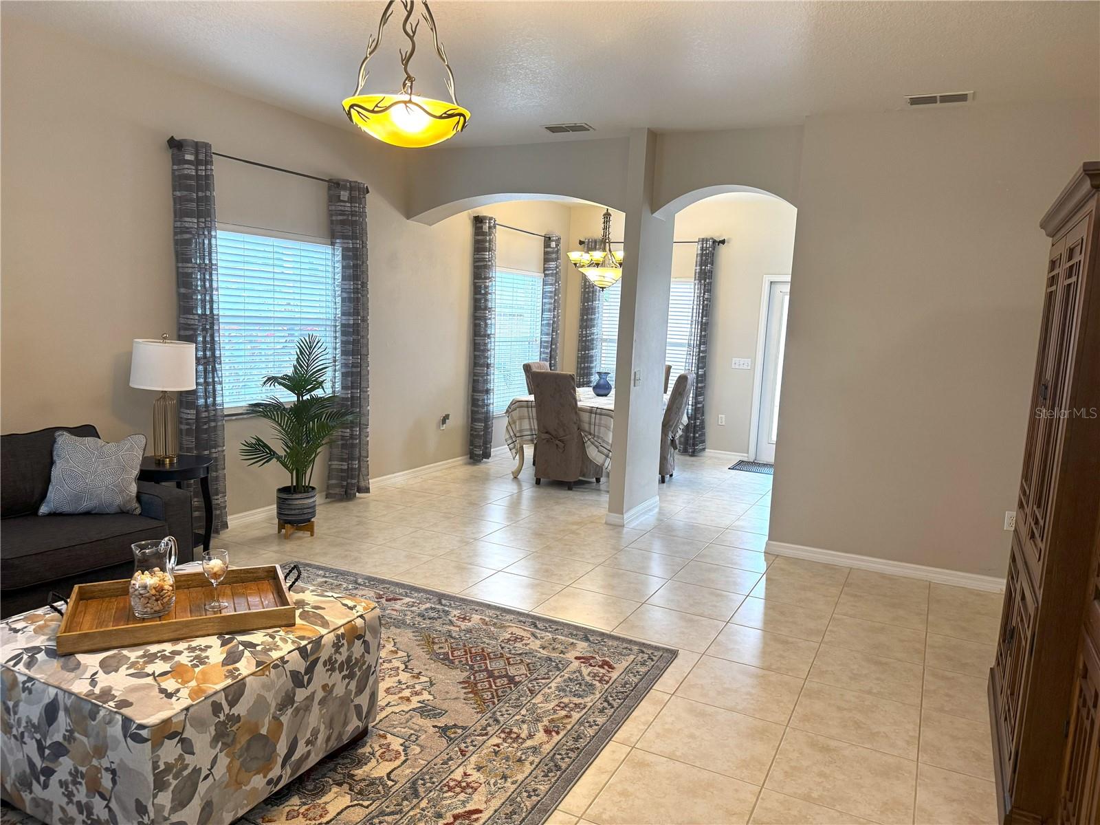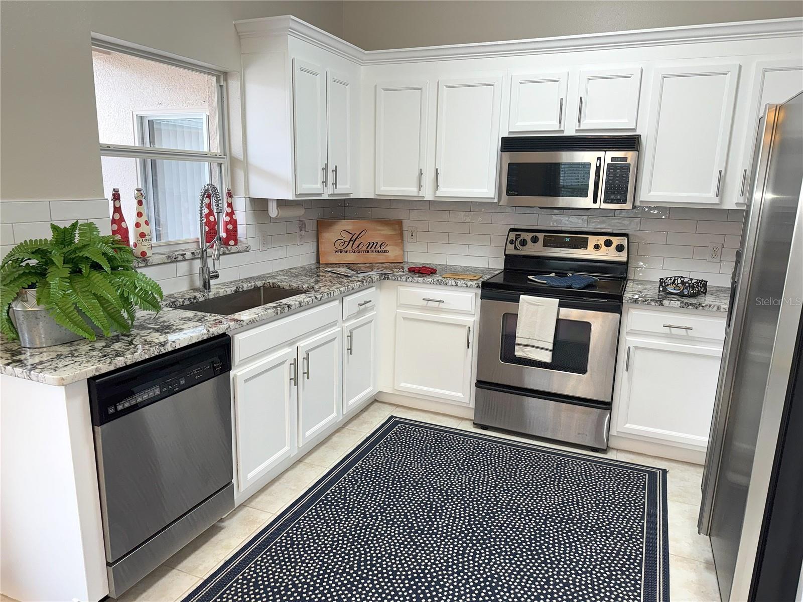 ****HUGE PRICE CUT**** Under appraisal needs to sell now.... Someone will get a great deal on a great home.... Remodeled and Updated, Lake views from front porch and all front windows with great views of waterfront on the best street for walking and strolling in Solivita. 2 bedrooms, 2 bathrooms, Detached 2 Car Garage, front porch and 19'x25' private courtyard, and off-street parking for an additional 6 guests at your front door. Enjoy your views from your front porch, home is located on Solivita Blvd where the canopied grand-father oaks are overhead, sidewalks on both sides and where the walking paths with benches and dog walk to enjoy the water and sunset views are located, very close to the Marketplace and where all the action and activities are located. The home comes with a remodeled Kitchen, flooring, lighting, bathroom vanities and even new Toilets. New Roof 8/24, HVAC 3/14, garage door opener 7/24. Kitchen cabinets were painted and remodeled with beautiful granite countertops, large single bowl stainless steel under-mounted sink w/ upgraded faucet and handle set, all S/S appliances, all wood cabinets were reconfigured to add crown moldings and pantry closet with glass panty door and interior light. Floorplan was changed to have second bedroom open to living room to become either bedroom/den/study. (if buyer wishes to have this opening closed request in contract) Home also comes partially furnished with all Living Room furniture, daybed in 2nd bedroom/den, dining room with 4 chairs and Ethan Allen solid wood entertainment center and LCD TV in living room, also included are the patio furniture in the courtyard. All drapes and blinds are also included. All lighting and fans have also been updated. Great Investment home, if you're not ready to live in Solivita now rent it till you are. Don't miss out on this home, there is not another one like it especially in this price range, call today to see if home is right for you. All the furniture you see in the video stays with the home, note this is villa. Follow this link for YouTube video https://youtu.be/1-ZnqMXi8CI