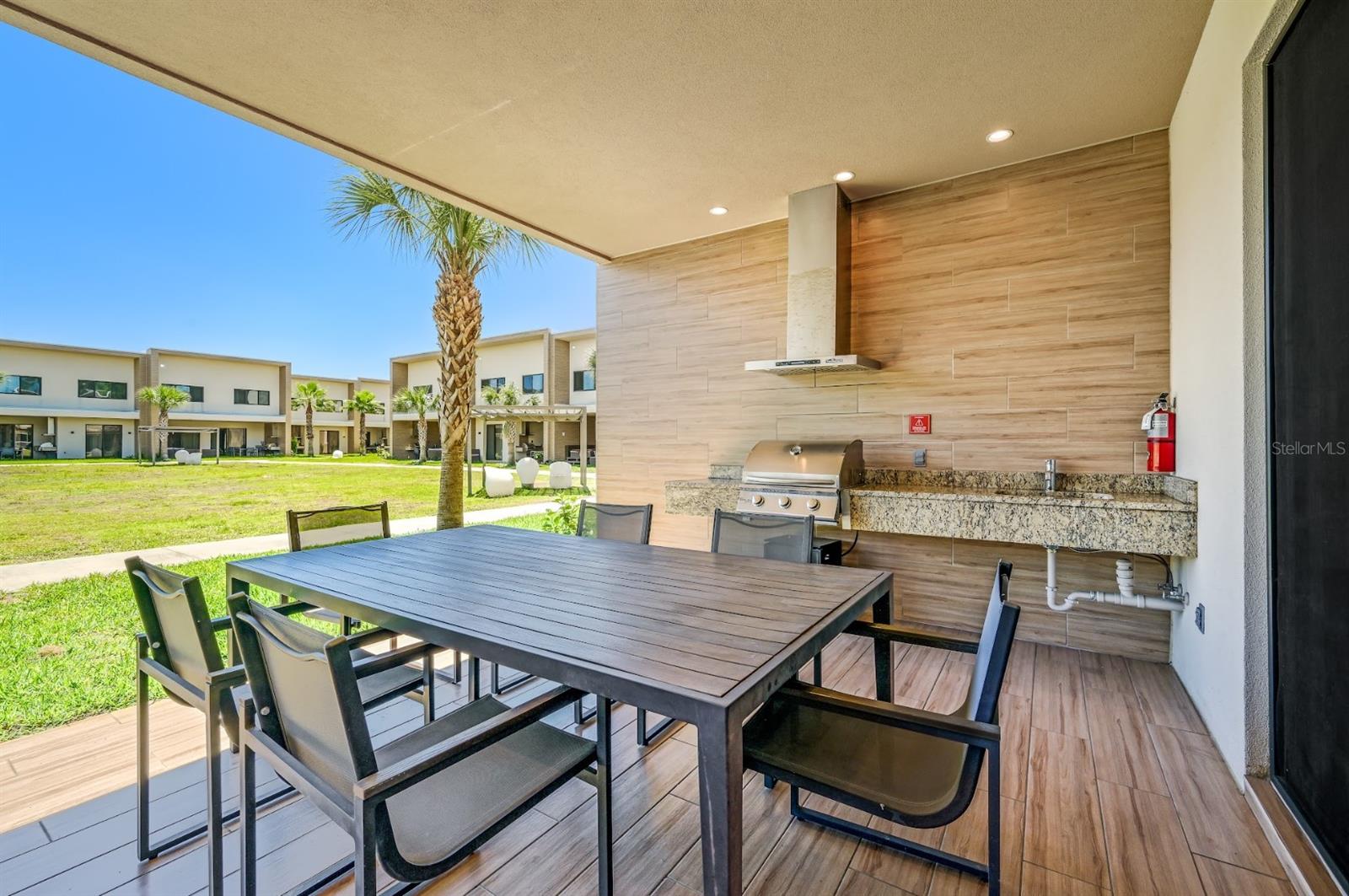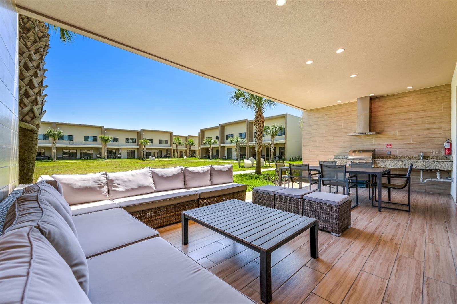 Upon entering this home you will immediately experience a satisfying feel of elegance and luxury. This Italian inspired refined 3 bedroom, 3.5 bath home features a well thought-out, complete gourmet kitchen with Samsung stainless steel appliances, granite counter tops and all wood cabinetry. The entire first floor is lit up during the day with natural light as this home features windows from the floor all the way up to the ceiling in the large family room. Comfortable seating is available all throughout the first floor in the kitchen, living room, nook set back through to the back patio. The living room features an electric fireplace allowing for an ambient and cozy environment. Just outside the family room is a well designed and spacious covered patio with an outdoor summer kitchen, sink, outdoor dining area and plenty of seating for everyone. Upstairs are 3 spacious bedrooms and two full bathrooms. The master bedroom features a threefold benefit of sleep, work desk for your convivence and private relaxing sitting area tucked neatly away. The master ensuite bathroom is equally spacious with a large shower and dual vanity. This home comes fully furnished with tasteful and well thought designer furniture. Magic Village is a complete package offering a unique and thoughtful living experience for short-term rental opportunities. Put together by a famous Italian designer, the Magic Village Community offers excellence in hospitality and amenities and it's convenient location offers easy access to all of what the greater Orland area presents. Magic Village is just a short distance from Disney's main gate, making it an ideal choice for you and your family to enjoy their vacation and/or as an short-term rental investment for passive income. Contact a realtor today for your private showing, please be patient as it may be occupied. We will work together to get you your personal tour.