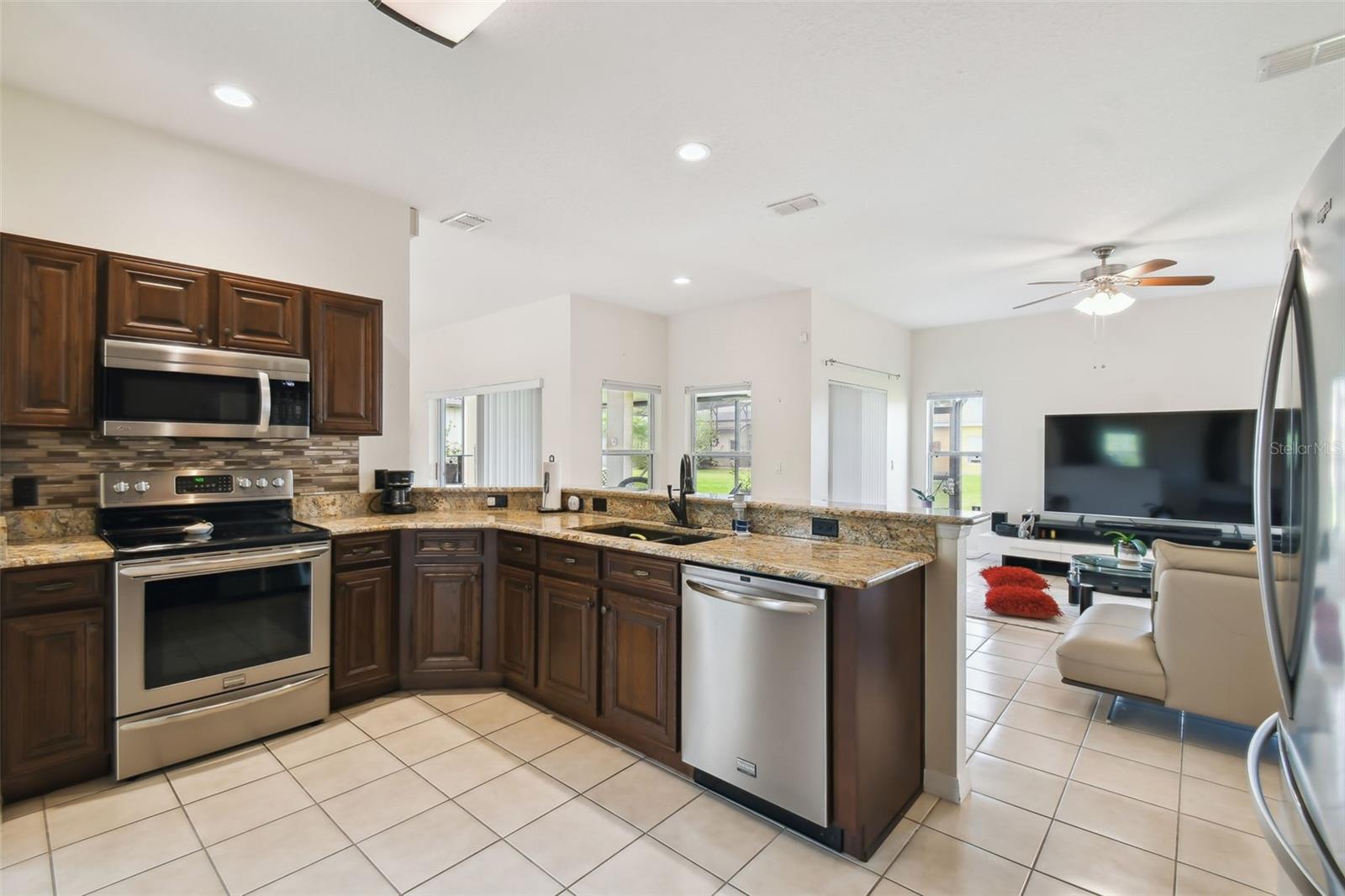 NOW is your Chance! New Price! Welcome to Bellalago, Resort Style Living at its finest! This beautiful home has 3 bedrooms and 2 baths. The open floor plan enhances the sense of space, creating an environment that is perfect for entertaining guests or simply enjoying quality time with loved ones. The kitchen is a chef's dream, featuring custom full-sized cabinets that not only add ample storage space but also bring an element of elegance to the heart of the home. Spacious rooms are a hallmark of this residence, ensuring that every corner of the home feels inviting and accommodating. The split floor plan adds an extra layer of privacy, with the master suite occupying its own secluded space. This layout is designed for both comfort and functionality, catering to the needs of a modern lifestyle. The master suite is a haven of relaxation, providing a tranquil retreat with all the amenities one could desire. This thoughtful design ensures that the living spaces are both aesthetically pleasing and highly practical. The backyard is a true oasis, with a water view. Now onto the community... the luxurious lifestyle at Isles of Bellalago, where an array of amenities awaits you. Dive into four resort-style pools, explore walking and biking trails, and enjoy lakeside tranquility at the fishing pier for Bass Fishing! Boating enthusiasts will appreciate the convenience of boat lifts, while sports lovers can engage in tennis, basketball, volleyball, and soccer. Host outdoor gatherings at designated barbecue spots, stay fit with on-site fitness centers featuring yoga instructors, and savor culinary delights at the community's own restaurant, Flip Flops Bar and Grille. With dog parks for furry friends, this community provides an all-encompassing experience of luxury living. Embrace a lifestyle where every day brings relaxation, recreation, and a strong sense of community. Isles of Bellalago isn't just a home; it's a gateway to an extraordinary living experience. Call to schedule your showing today!
