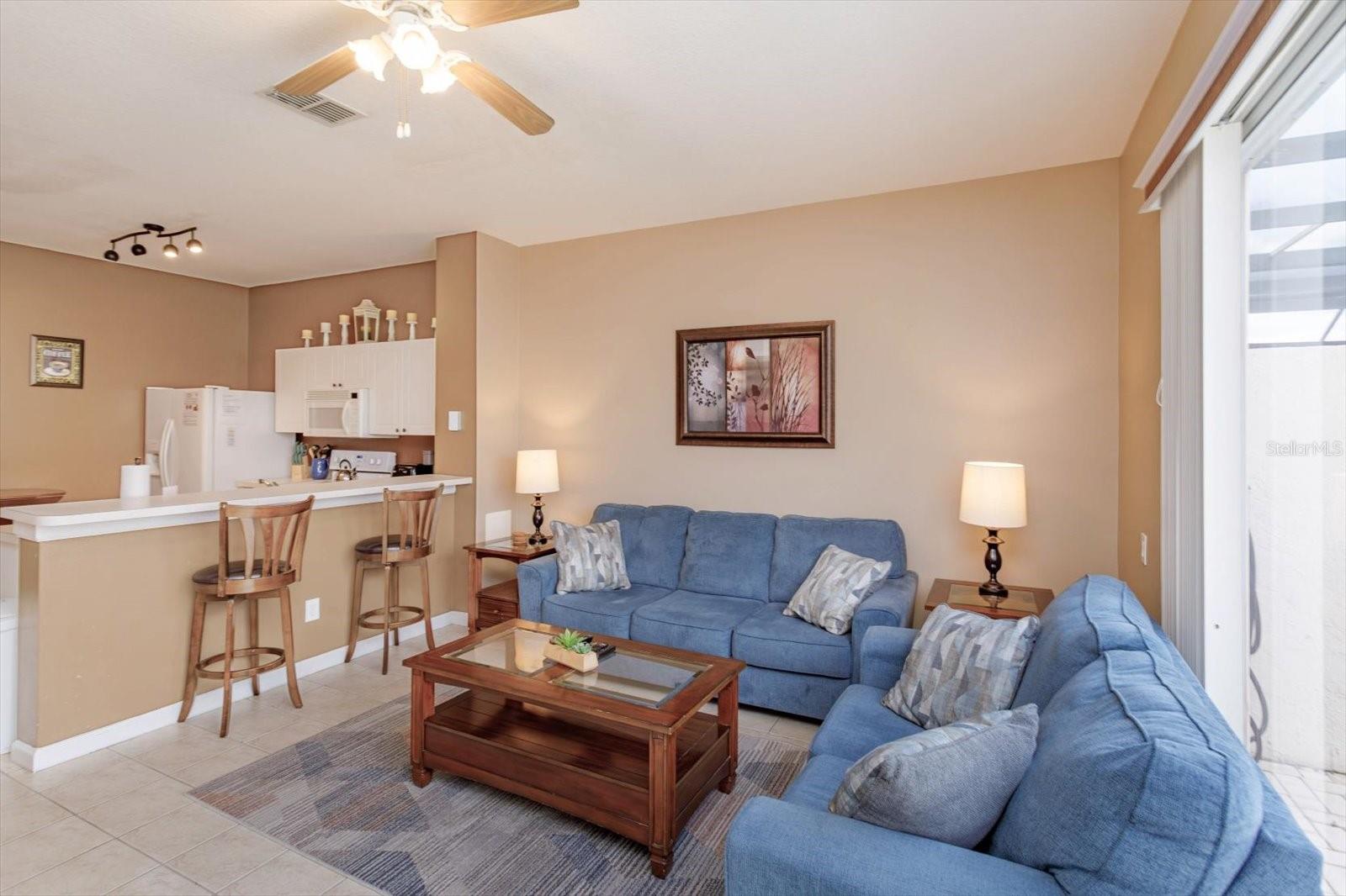 Discover the ultimate Orlando lifestyle in this sensational, fully furnished 3-bedroom, 3-bathroom townhome, perfectly located within the prestigious, 24-hour guard-gated Windsor Palms resort community. Just a short 3-mile drive from Walt Disney World, this property is a perfect base for exploring all the magic Orlando has to offer. This turn-key townhome is not only beautifully decorated and ready for guests, but it also features a range of valuable updates for worry-free ownership. The new roof (2020), resurfaced pool (2024), and new pool heater (March 2025) ensure a low-maintenance and enjoyable experience. The AC system and appliances have also been recently replaced, adding to the property's value and appeal. Step outside to your own private oasis: a screened-in patio with a sparkling pool, perfect for relaxing after a day at the parks. All furnishings, including flat-panel TVs, are included, making this a truly effortless move-in or rental property. As an owner or guest, you'll have full access to Windsor Palms' world-class amenities. The community's impressive clubhouse features a massive communal pool with a tiki bar, a whirlpool spa, a fitness center, a game room, and a 58-seat movie theater. Outdoor activities abound with tennis, basketball, and volleyball courts, as well as a playground. An on-site convenience store and cafe make it easy to grab essentials. This property offers the flexibility to be a full-time residence, a private vacation home, or a highly sought-after short-term rental. Its central location provides easy access to all Disney and Universal Studios parks, top-tier golf courses, and a wide variety of shopping and dining. Equal opportunity housing. YOUTUBE VIDEO STREAMING TOUR: https://youtu.be/3_eIQSChO2E