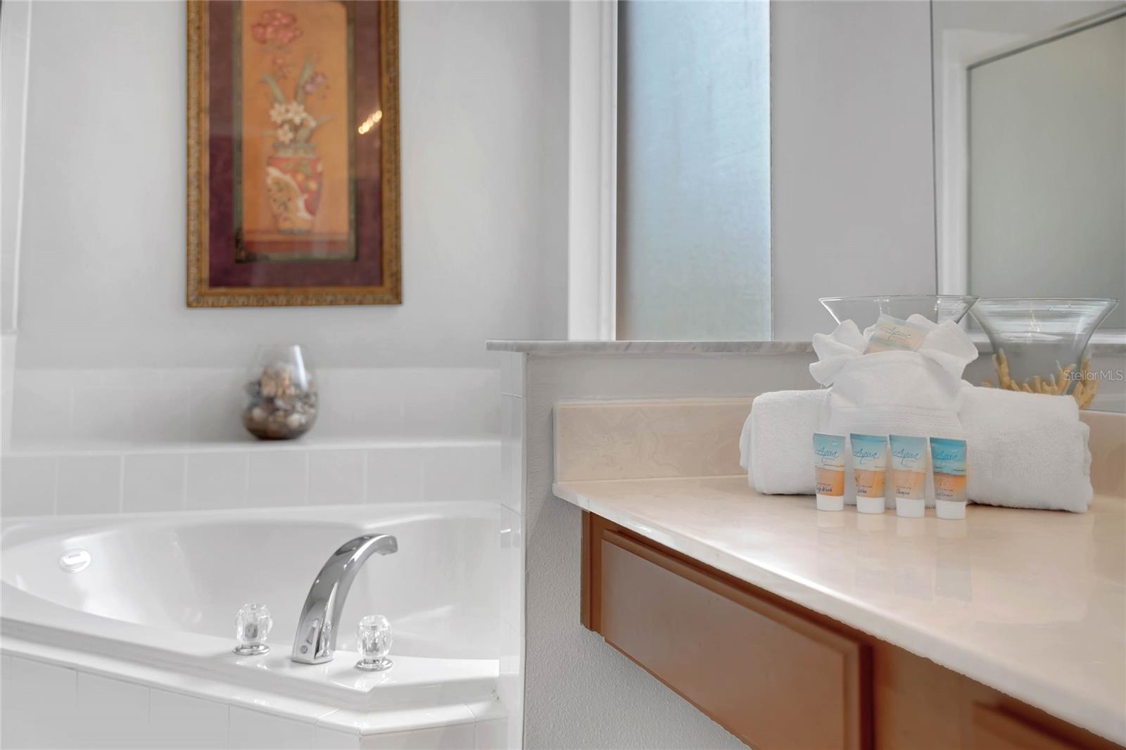 Fully furnished 7 bed 4.5 bath vacation rental home in 24/7 guard gated community--Emerald Island Resort, only 3.5 miles from Disney, with huge covered lanai by south facing heated pool & spa, clubhouse features heated community pool & spa, fitness center, internet cafe, game room. Tons of shops, restaurants, super markets and other convenient stores close by, future bookings are transferable. Please take action asap before it goes.